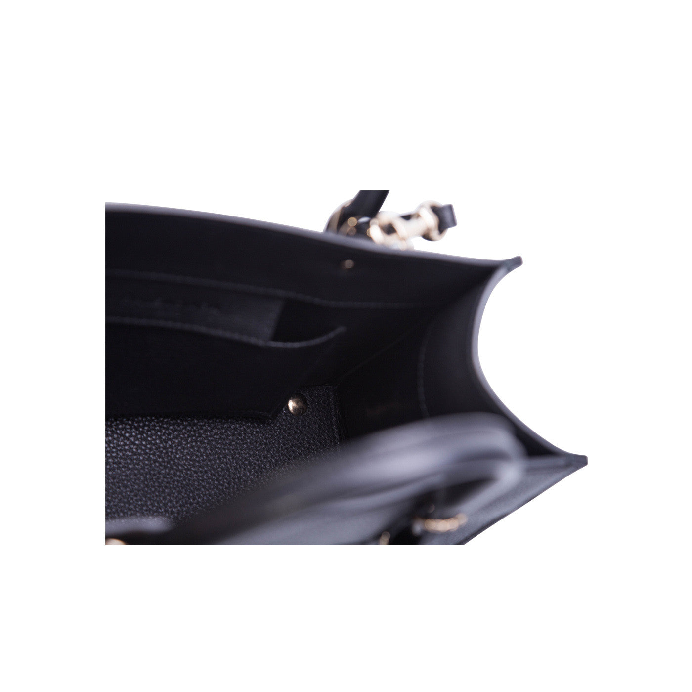 Balenciaga have created a modern classic with this stylish and sophisticated crossbody. The structured shape gives it a formal and polished look and the pale gold tone hardware. This mini tote is from the Metallic Edge collection, which features miniature buckle details and front zip. The shoulder strap is detachable, transforming this refined crossbody into a perfect handheld evening bag.