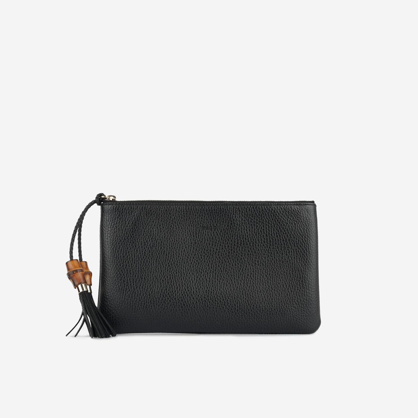 Introducing the Gucci Bamboo Tassel Pouch – a sophisticated accessory crafted from luxurious black taurillon leather adorned with distinctive bamboo tassels. This versatile pouch is designed to elevate your everyday style while offering practicality. Perfect for on-the-go individuals, it seamlessly fits into any larger bag, allowing you to organise essentials effortlessly. Whether it's your makeup, keys, or tech accessories, the Gucci Bamboo Tassel Pouch adds a touch of elegance to your routine. Immerse yourself in the fusion of timeless design and modern functionality with this iconic Gucci accessory.