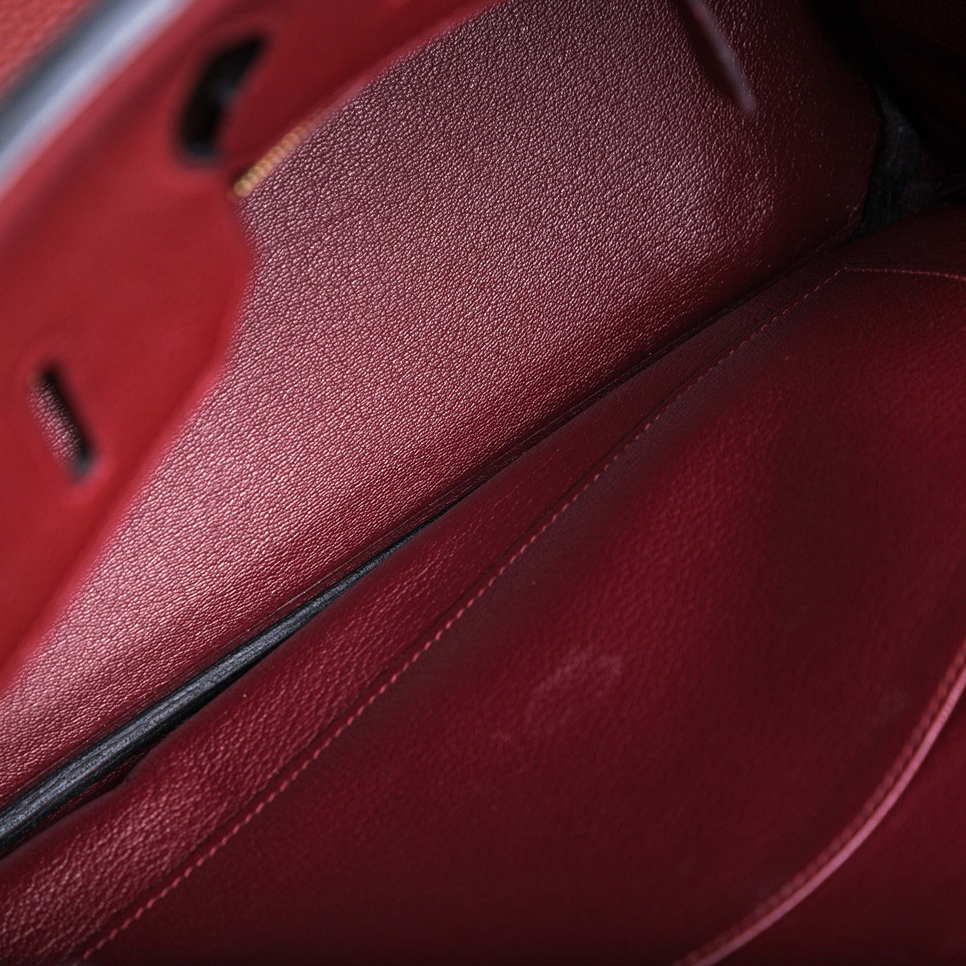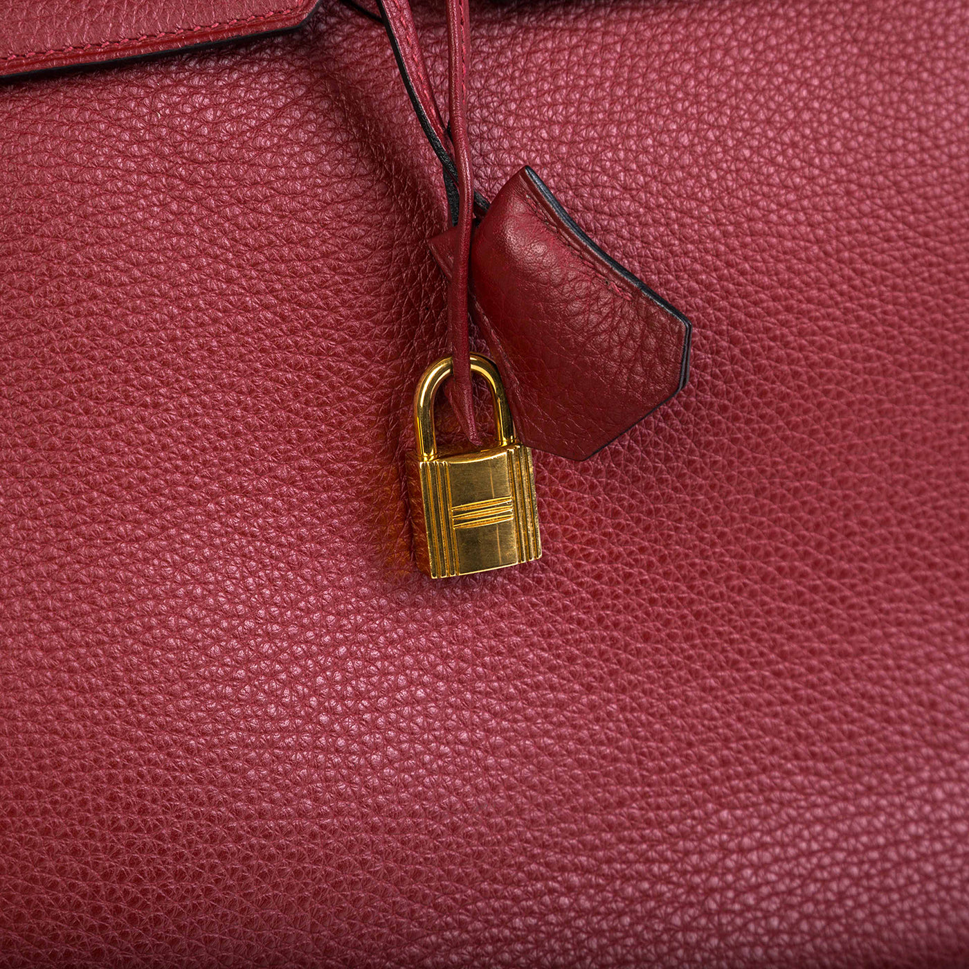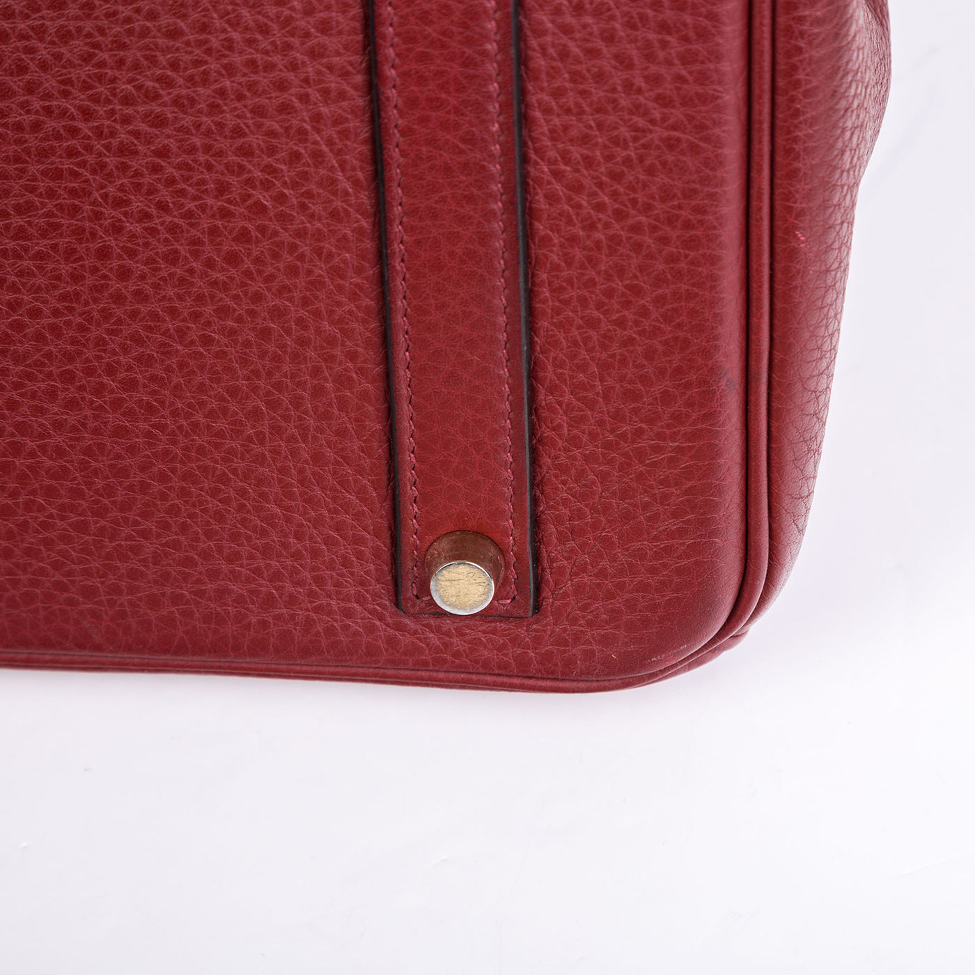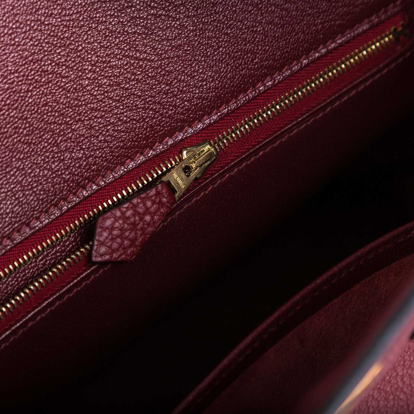 The Hermès Birkin is among the most famous bags in the world. First created in 1983 after Jean-Louis Dumas met Jane Birkin on a flight from Paris to London. In the short flight, Birkin explained that she needed a bag which was spacious enough for everything she needed to carry, with plenty of pockets as well. He sketched the first bag there and then, and the rest is history. Thirty-four years later, this bag has been created in a huge variety of styles and materials. This version of the Birkin is crafted out of stunning, Hermès Rouge Grenat Togo leather and perfectly complimented with gold-tone hardware.