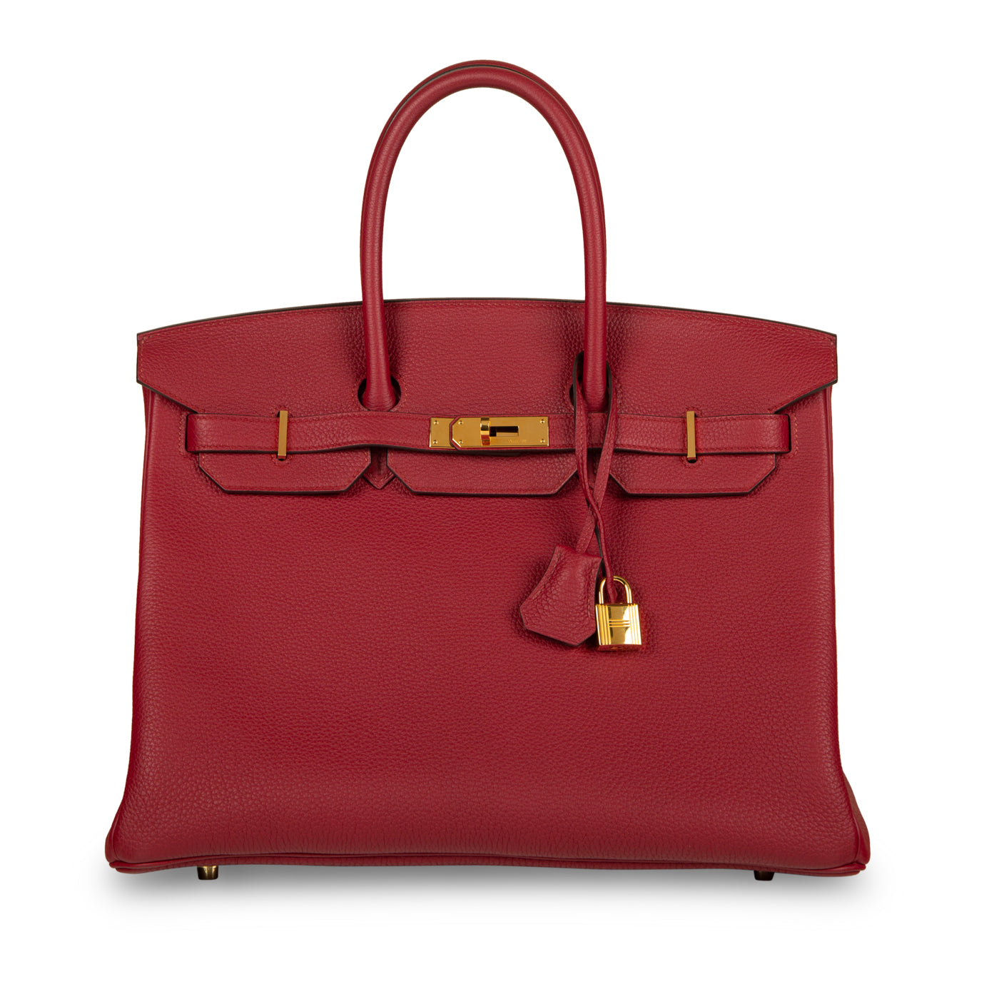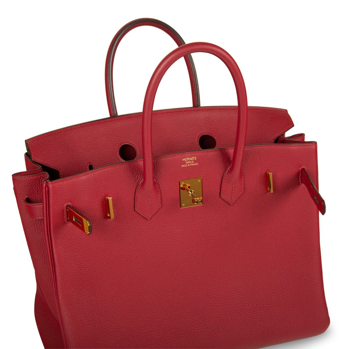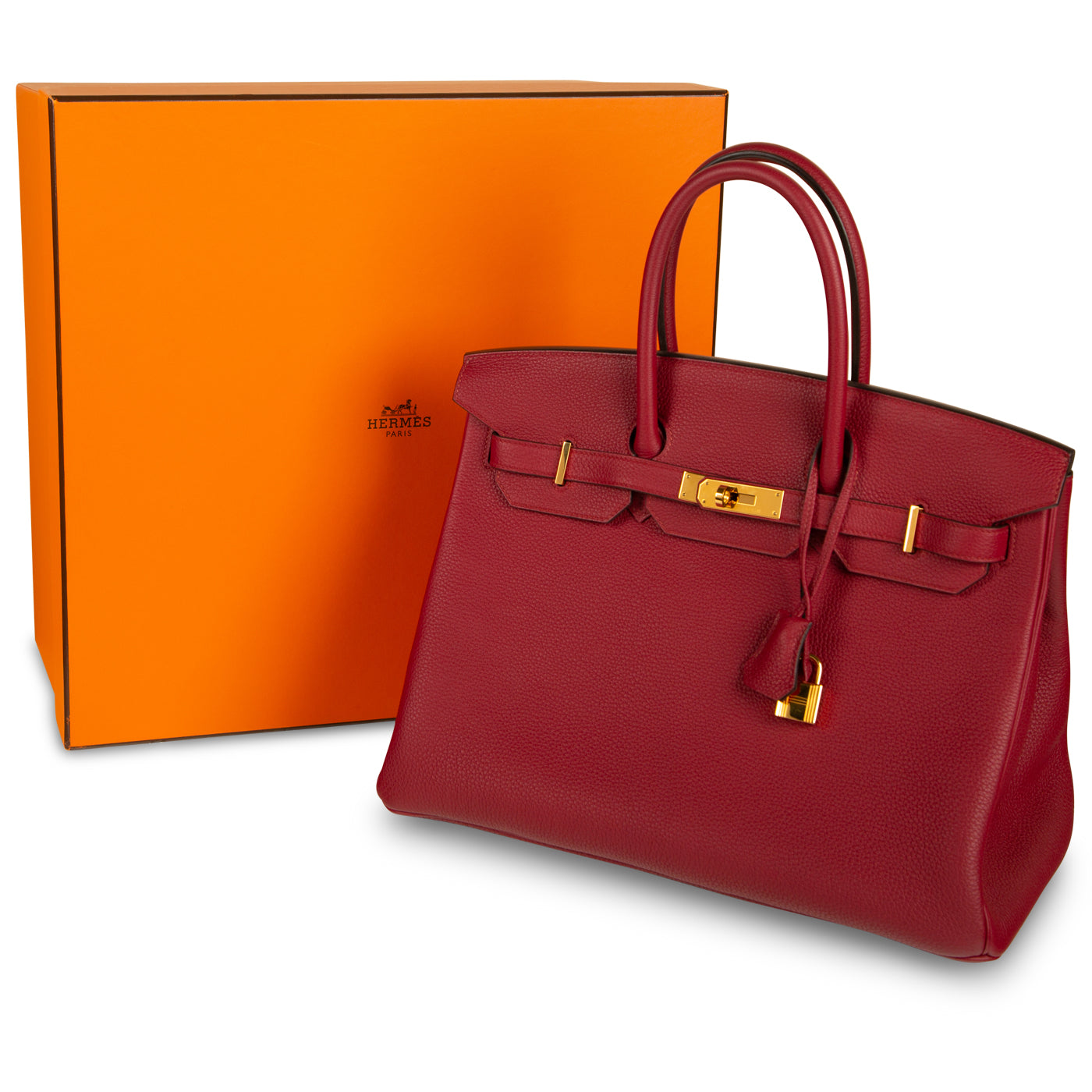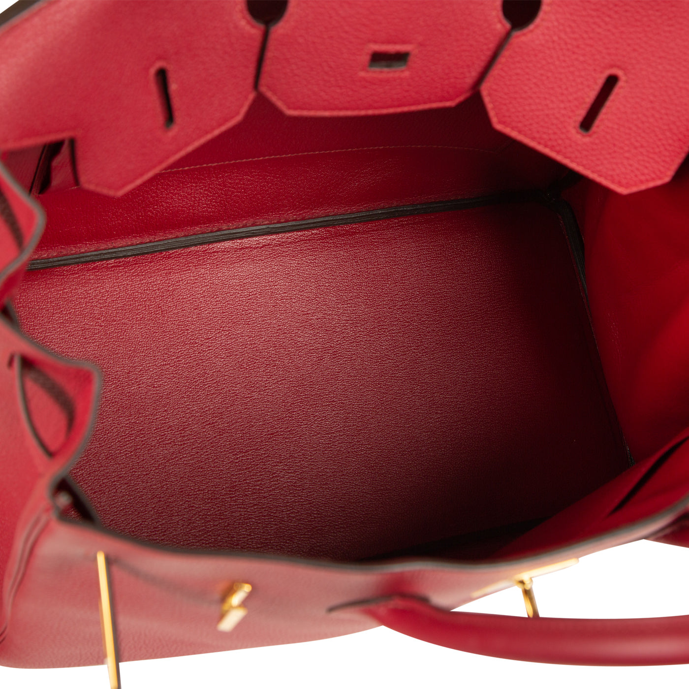The Hermès Birkin is among the most famous bags in the world. First created in 1983 after Jean-Louis Dumas met Jane Birkin on a flight from Paris to London. In the short flight, Birkin explained that she needed a bag which was spacious enough for everything she needed to carry, with plenty of pockets as well. He sketched the first bag there and then, and the rest is history. Thirty-four years later, this bag has been created in a huge variety of styles and materials. This version of the Birkin is crafted out of stunning, Hermès Rouge Grenat Togo leather and perfectly complimented with gold-tone hardware.