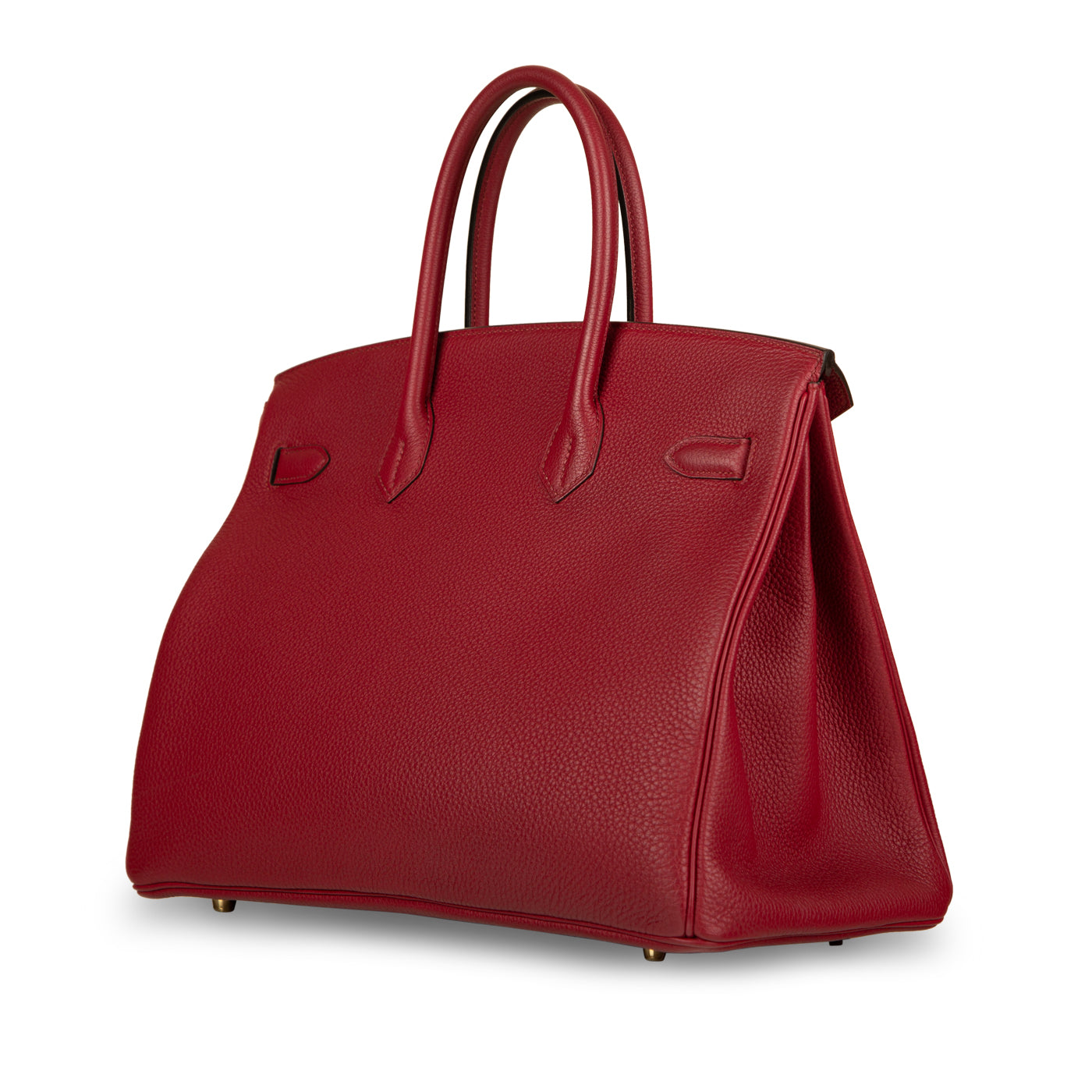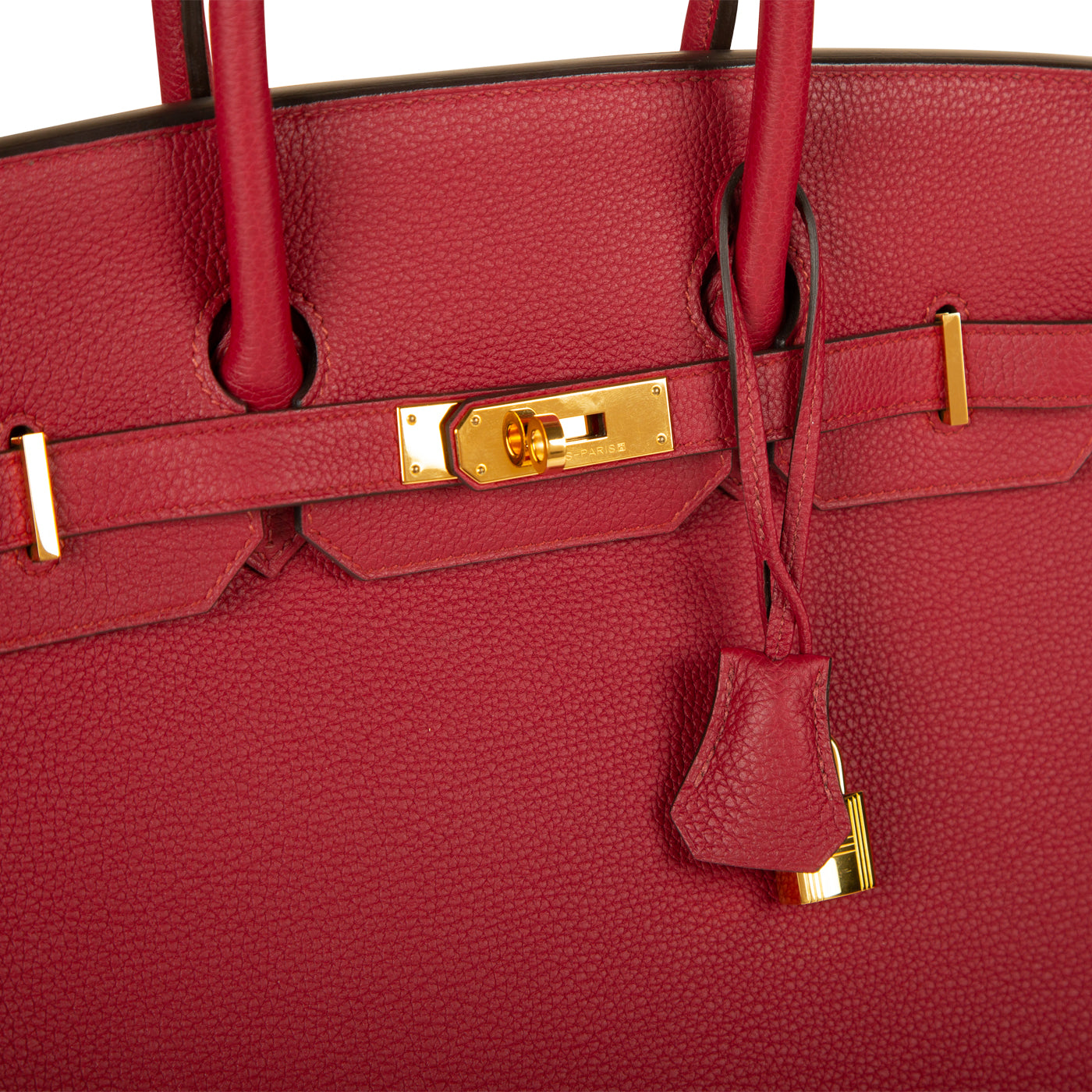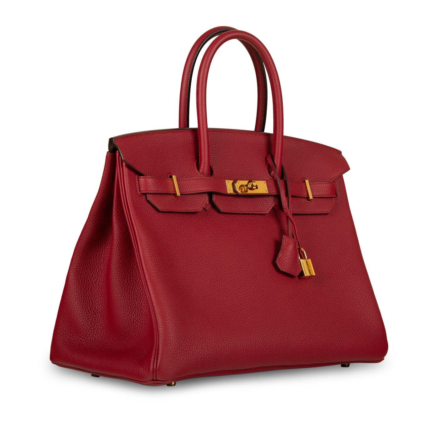 The Hermès Birkin is among the most famous bags in the world. First created in 1983 after Jean-Louis Dumas met Jane Birkin on a flight from Paris to London. In the short flight, Birkin explained that she needed a bag which was spacious enough for everything she needed to carry, with plenty of pockets as well. He sketched the first bag there and then, and the rest is history. Thirty-four years later, this bag has been created in a huge variety of styles and materials. This version of the Birkin is crafted out of stunning, Hermès Rouge Grenat Togo leather and perfectly complimented with gold-tone hardware.