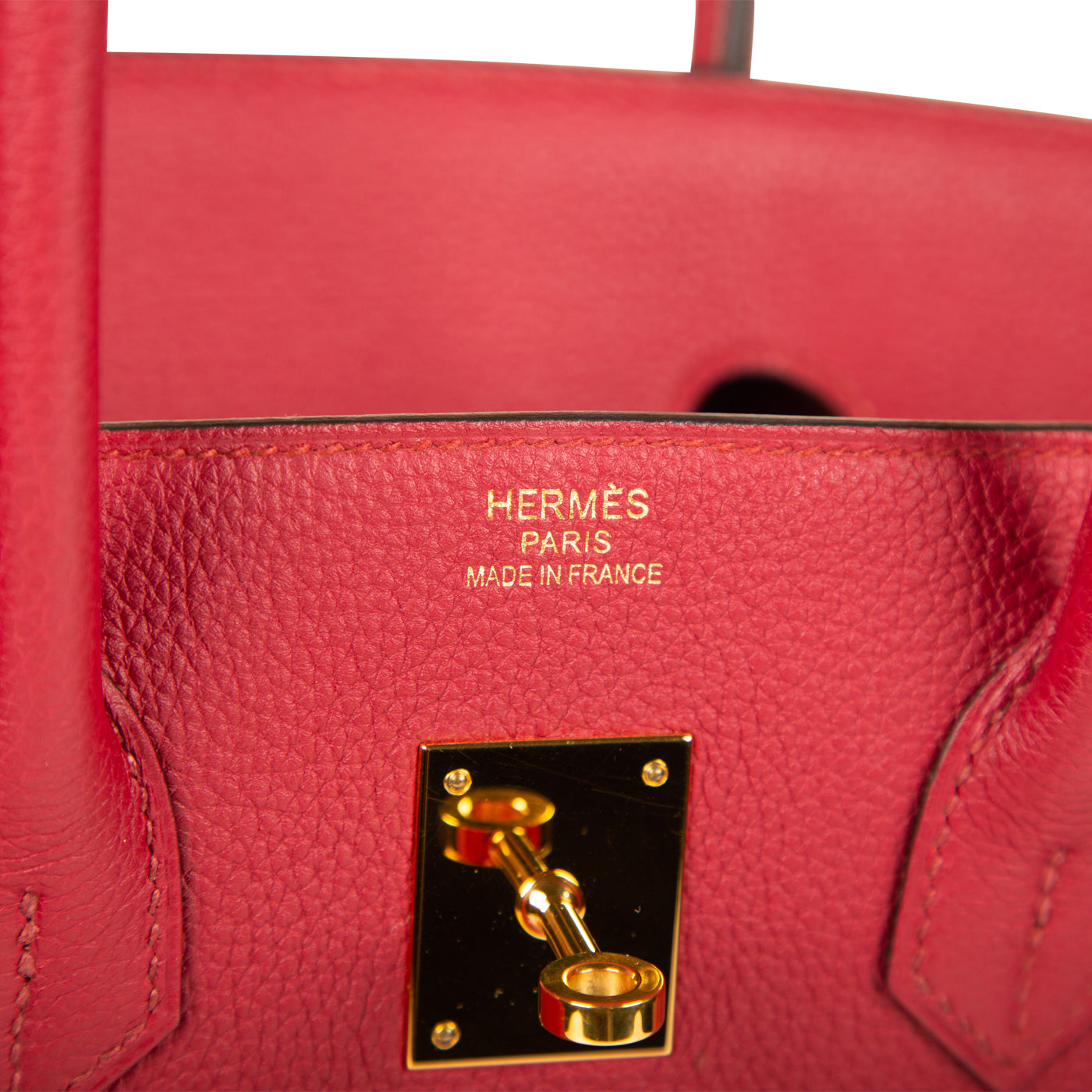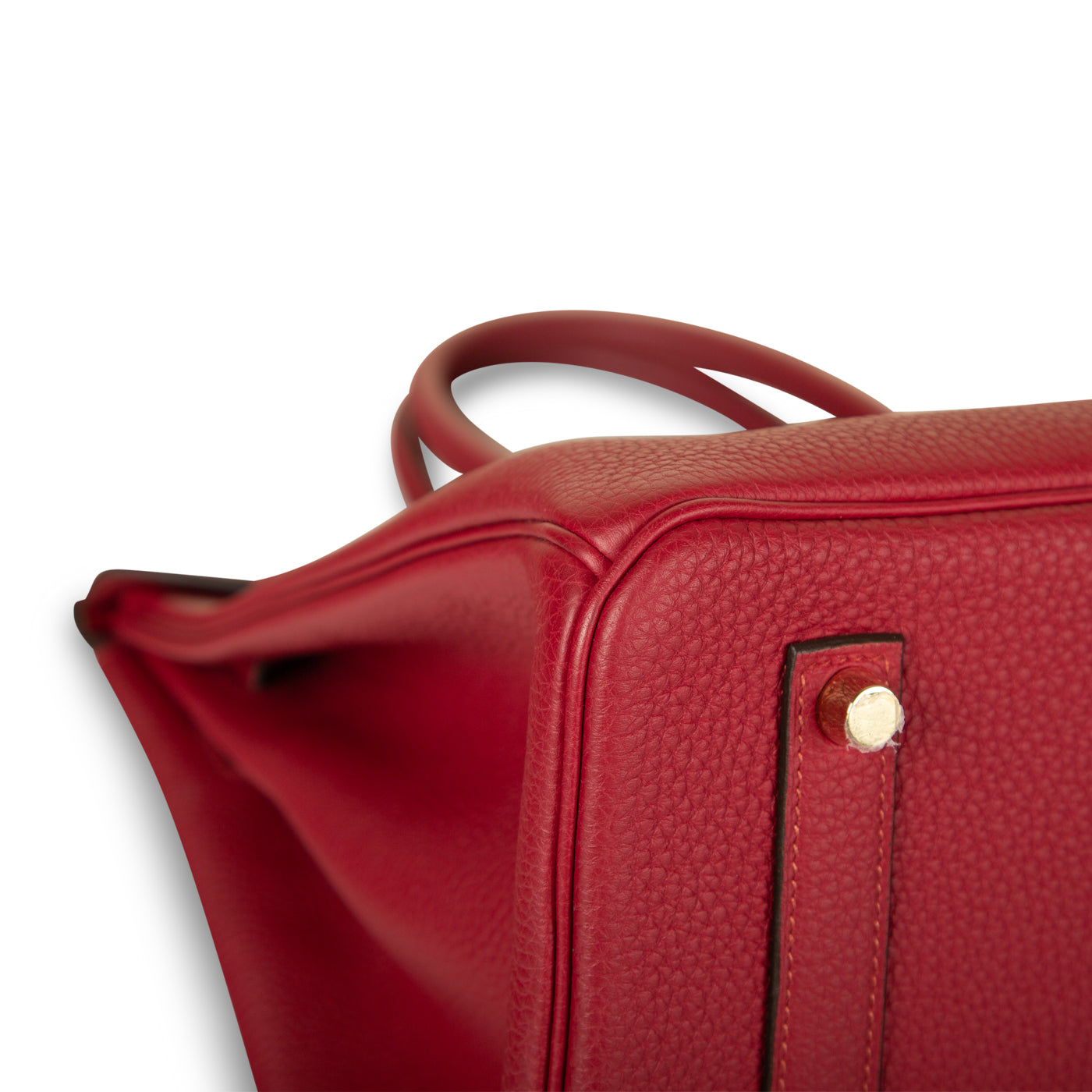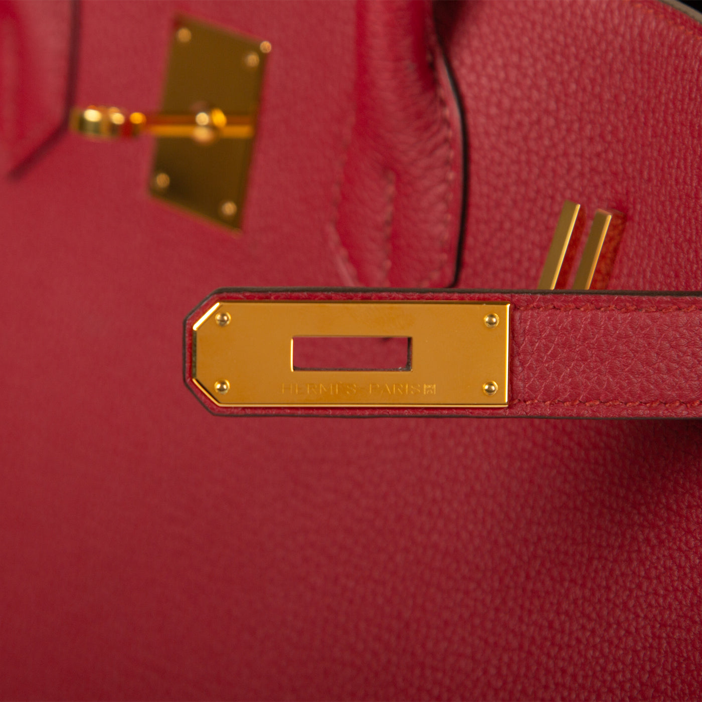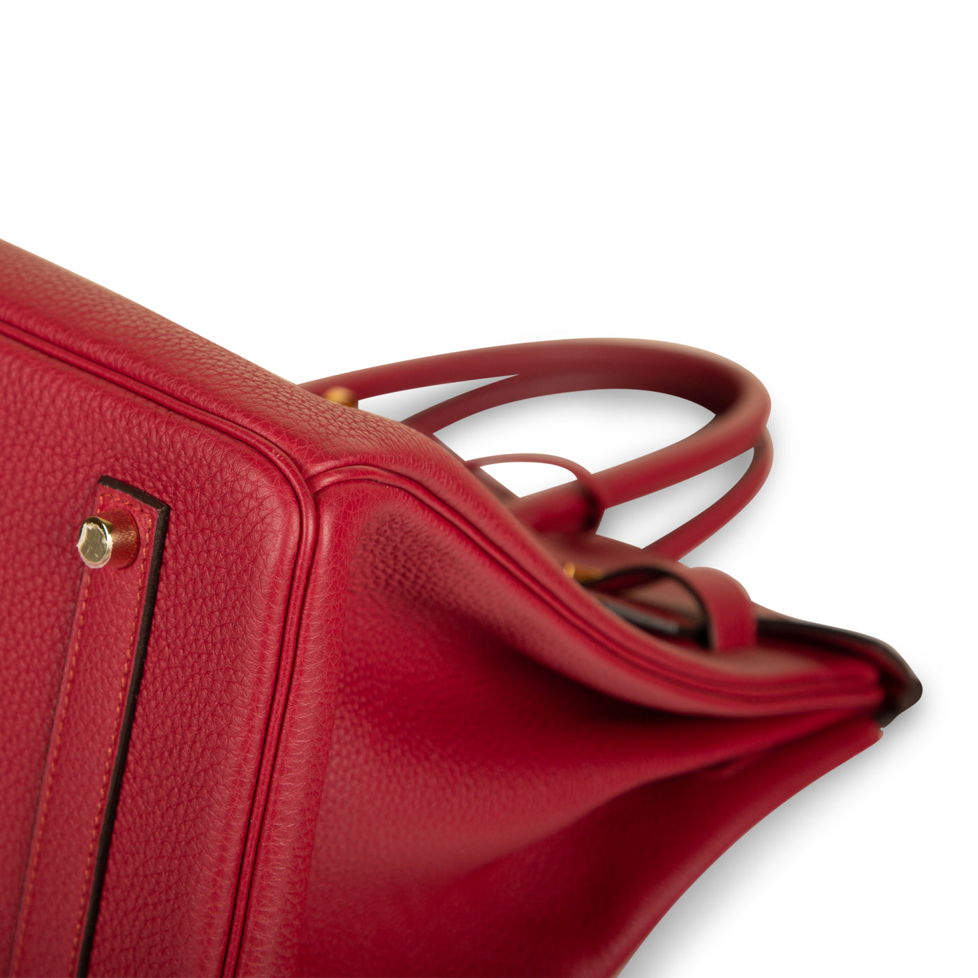 The Hermès Birkin is among the most famous bags in the world. First created in 1983 after Jean-Louis Dumas met Jane Birkin on a flight from Paris to London. In the short flight, Birkin explained that she needed a bag which was spacious enough for everything she needed to carry, with plenty of pockets as well. He sketched the first bag there and then, and the rest is history. Thirty-four years later, this bag has been created in a huge variety of styles and materials. This version of the Birkin is crafted out of stunning, Hermès Rouge Grenat Togo leather and perfectly complimented with gold-tone hardware.