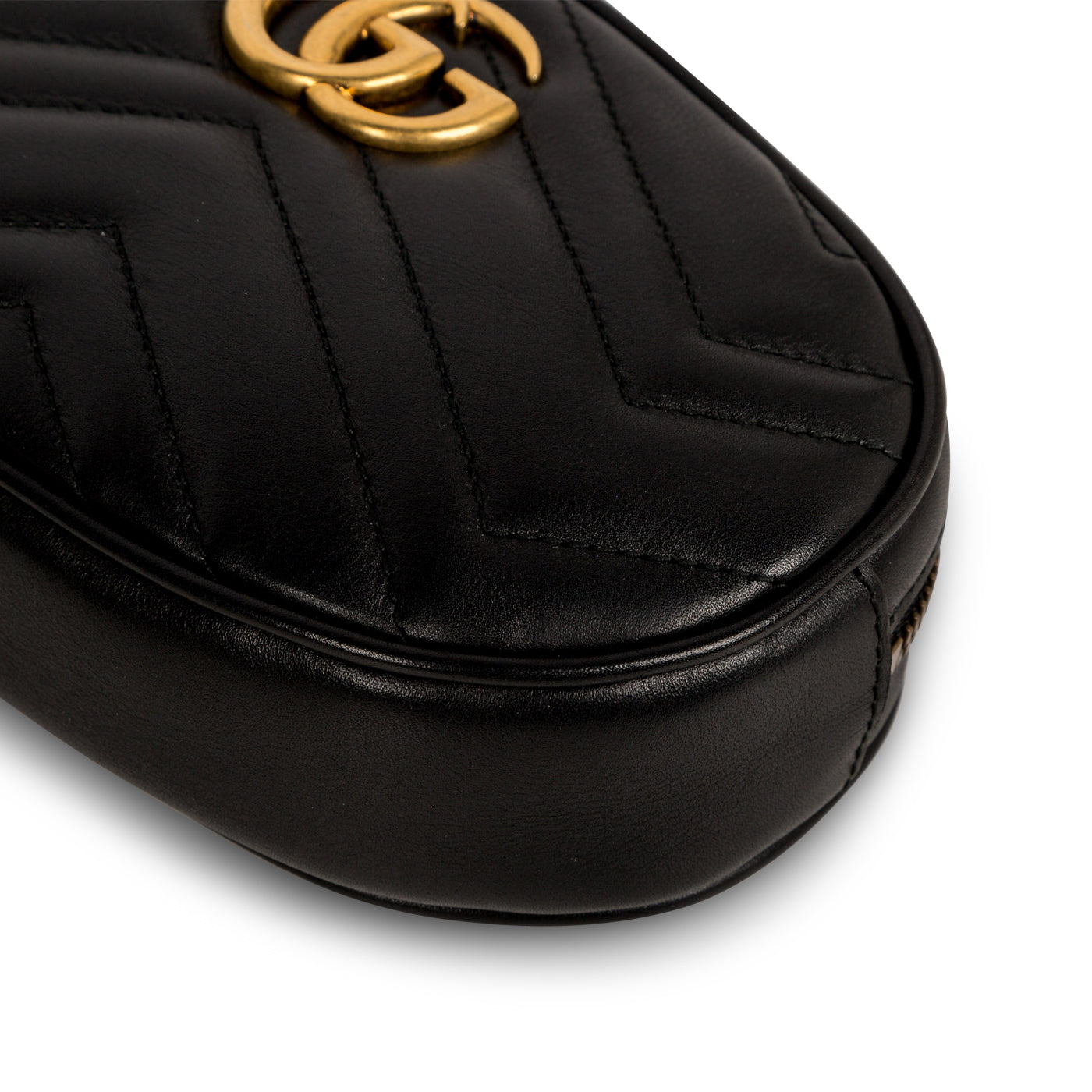If you don't know Gucci's Marmont collection, then you may or may not need to leave the house more often. Under the creative direction of Alessandro Michele, the Marmont line, which features flap bags, camera bags and bumbags like this one, took the world by storm upon its debut. The Marmont bumbag is the ideal accessory for anyone who wants to go handsfree about their day. Carefully crafted in black chevron leather and complimented by a prominent antique gold-tone GG logo, this bumbag allows you to carry all your every day essentials in style and without hassle. With its ability to be worn around your waist or across your body, this bag is the perfect accessory to compliment any casual outfit. Youthful, playful and effortlessly cool, the Gucci Marmont bumbag is an absolute must-have for anyone with a fashion-forward sense of style and a love for luxury.