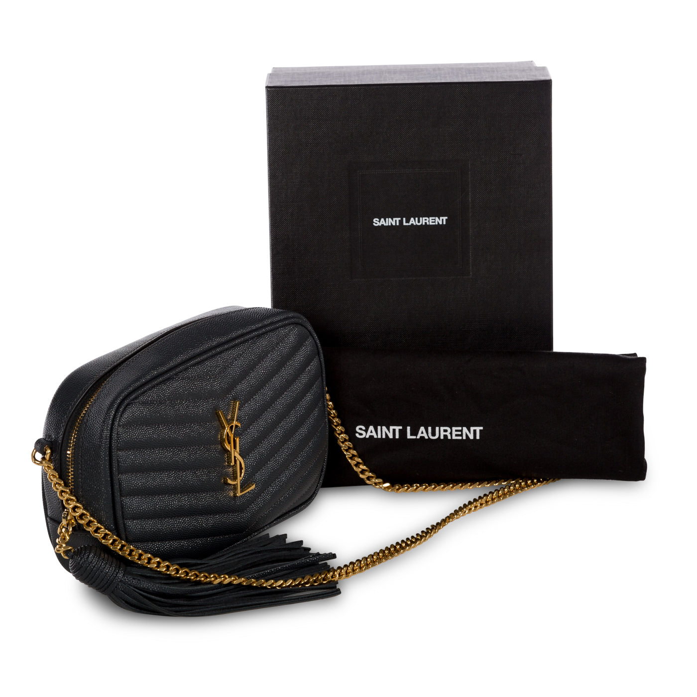 Perfect for any woman with a love for luxury who seems to always be on-the-go, the Saint Laurent Lou Camera Crossbody bag is the one for you. Why catch a break when you look this good with this bag swung across your body? To the least, the Lou is one you'll want to show off to everybody and we can't blame you. She's sleek, stylish, sophisticated and effortlessly cool at the same time - I mean, she really is just that girl. Crafted in grained, matelassé deep blue leather and complimented by gold-tone hardware, the Lou is basically that bag you'll never take off. No but really...she's suitable for any and every occasion. Edgy and chic while also giving us major "off to Whole Foods while looking glamorous" vibes, the Lou is just a bag you need in your life. A well worthy addition to any luxury handbag collection, the Lou Mini Crossbody is a timeless classic from Saint Laurent that you'll never get bored of.