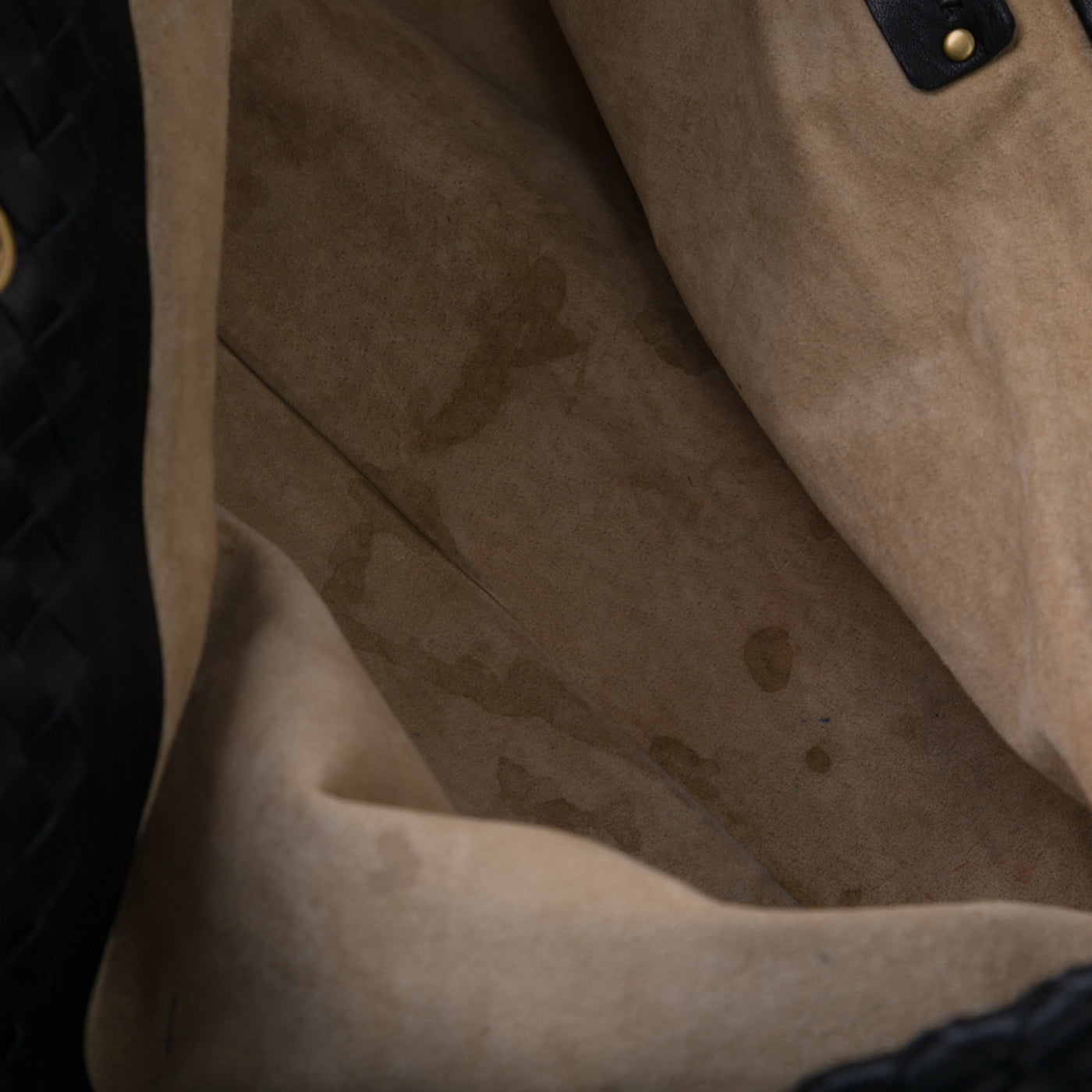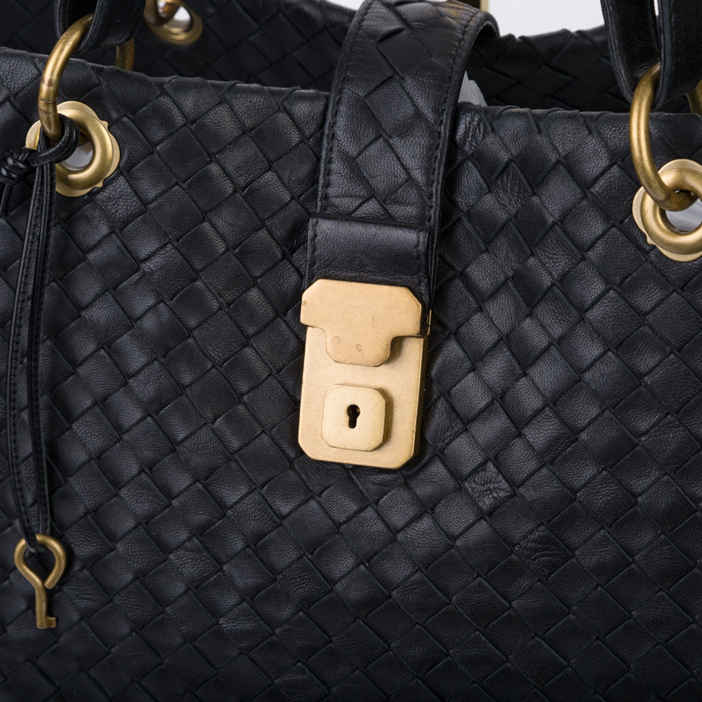 Carefully crafted in black Nappa leather with Bottega Veneta's signature wove, intrecciato design, featuring antique gold tone hardware, the Capri tote is a true balance of luxury and practicality. This bag offers function as well as style, with its understated appearance and spacious interior, you can carry all your every day essentials while remaining fashion forward. The Capri is the ultimate every day bag for a sophisticated woman with a love for luxury and a lot to carry.