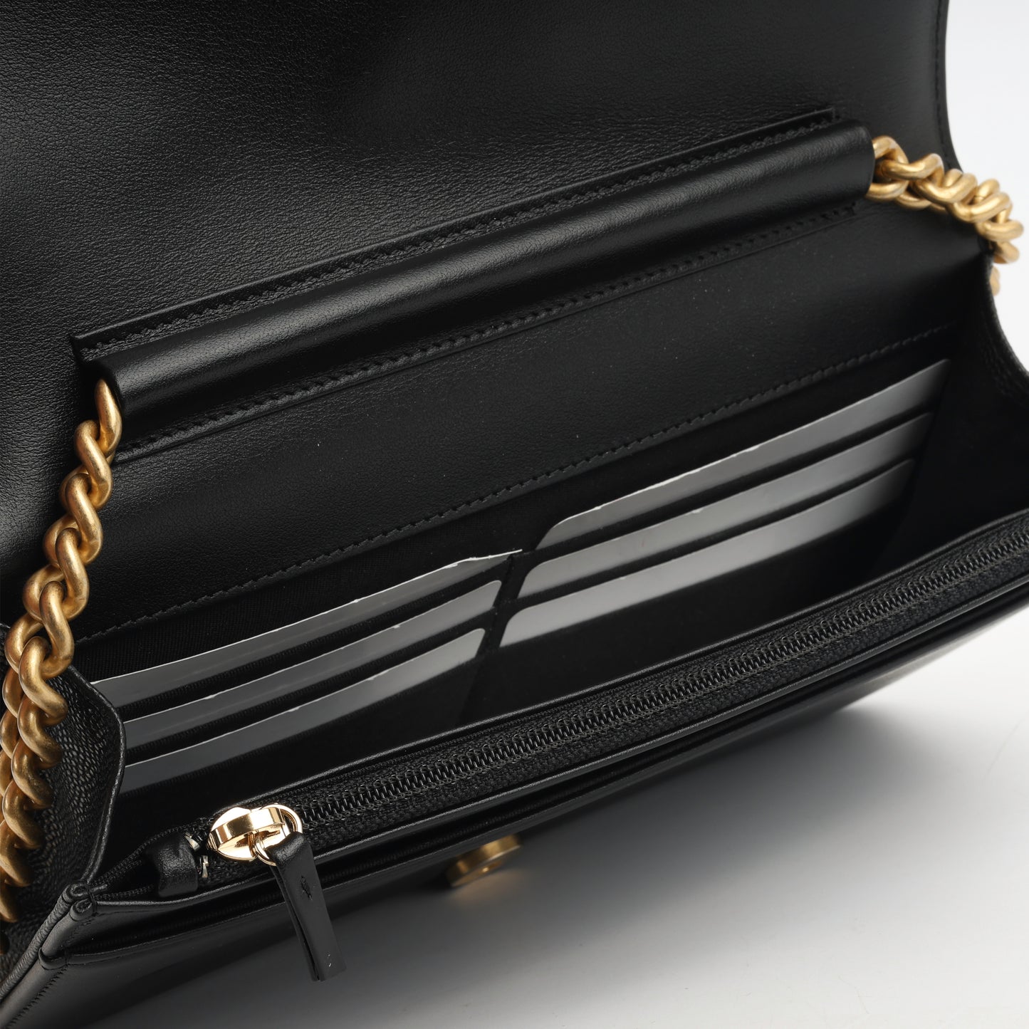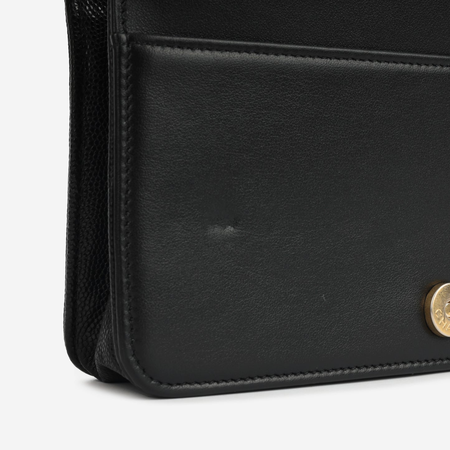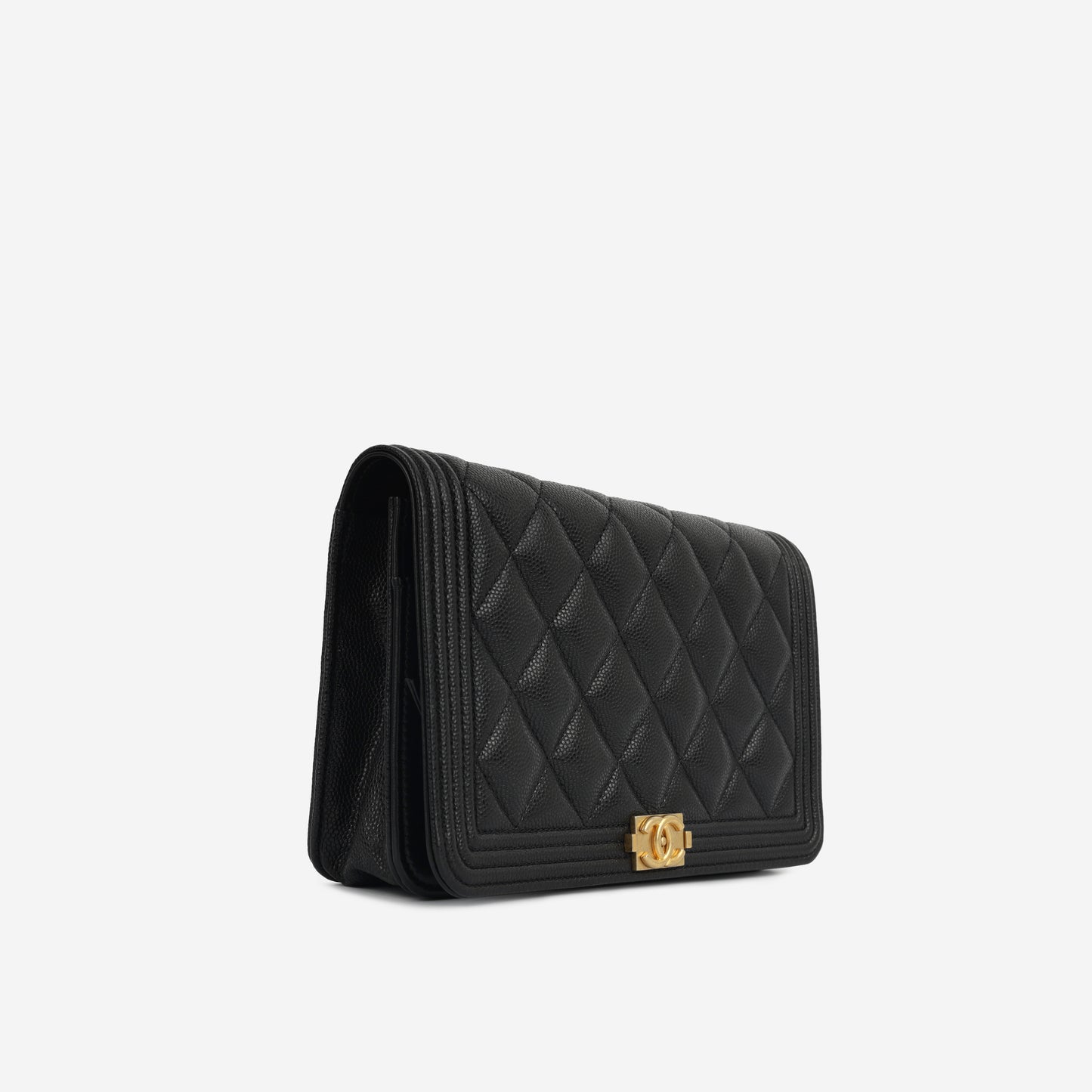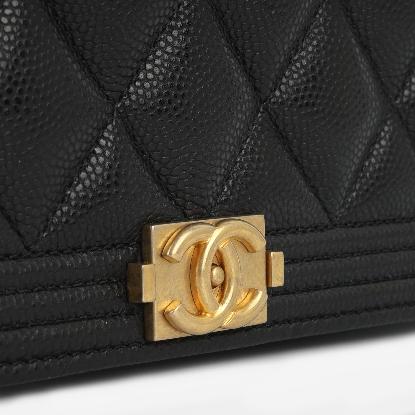 - Black quilted caviar leather