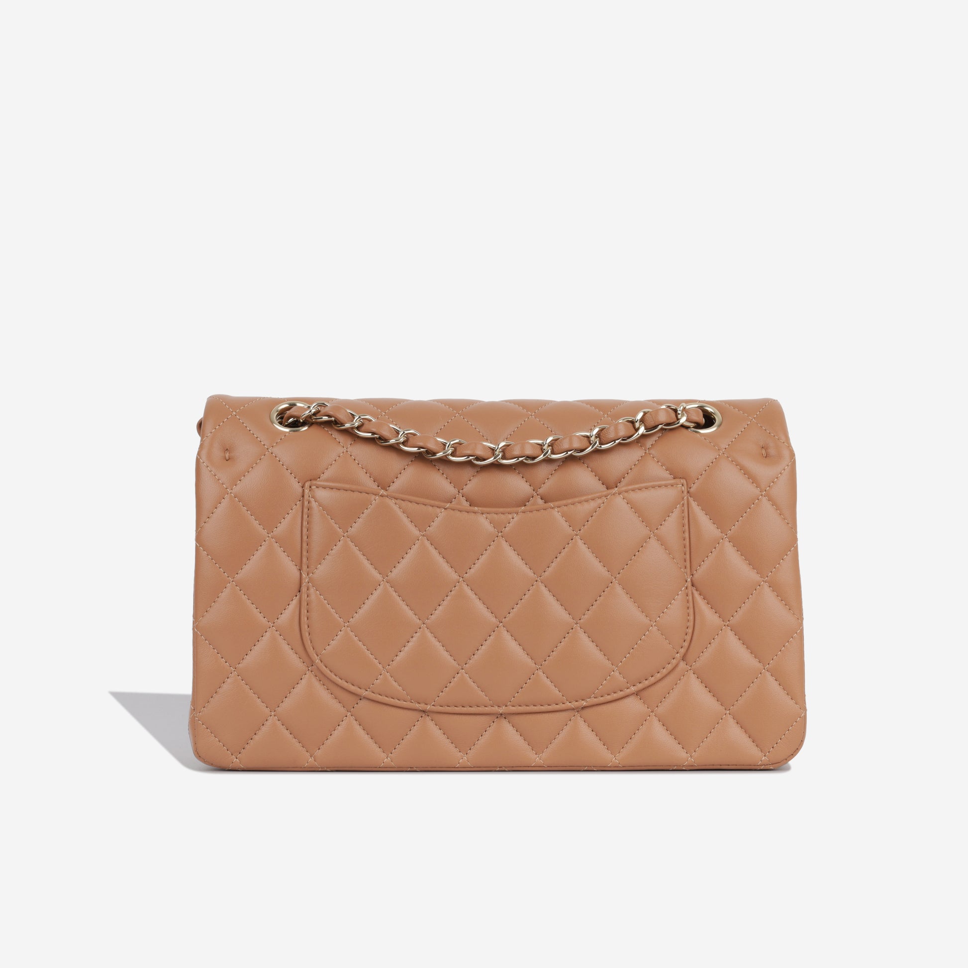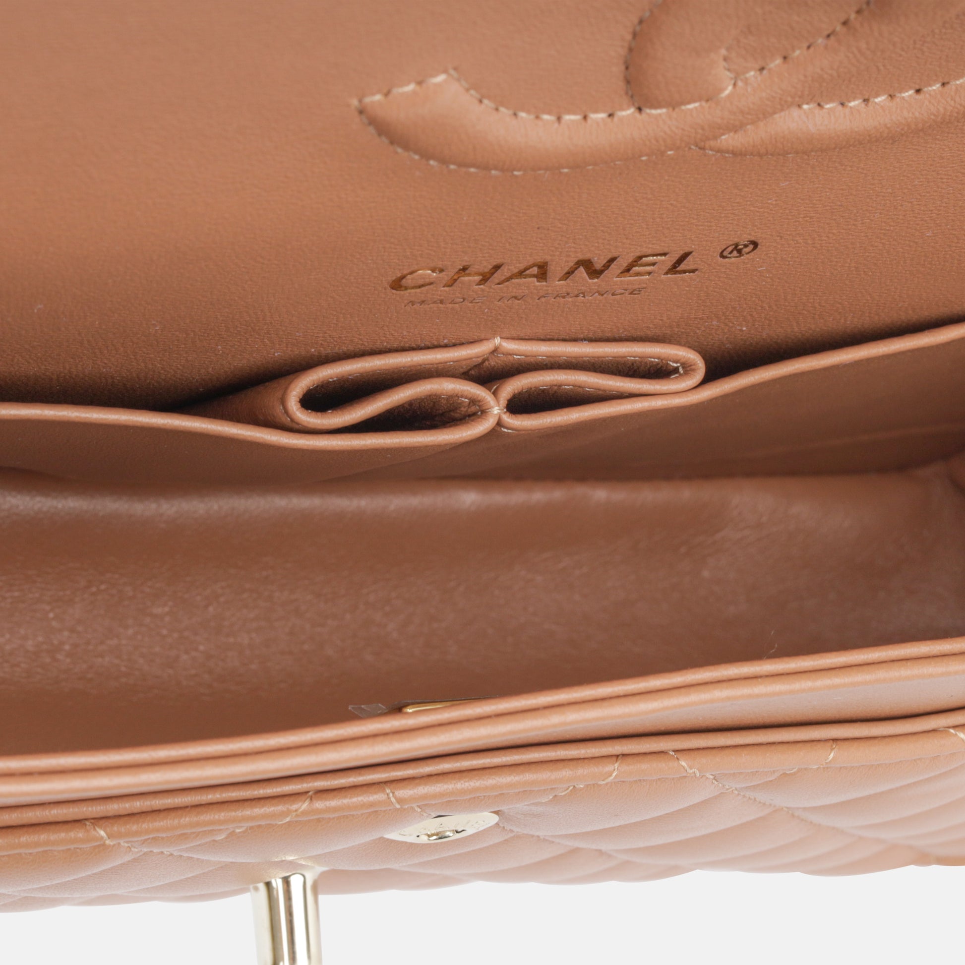 There is no better investment than a Chanel classic flap bag. This Classic Flap in Medium is one of the most sought after pieces. It is impeccably crafted in the sought after caramel lambskin leather and champagne gold hardware. The chain is interwoven with leather and can be worn on either a single shoulder strap or doubled up.