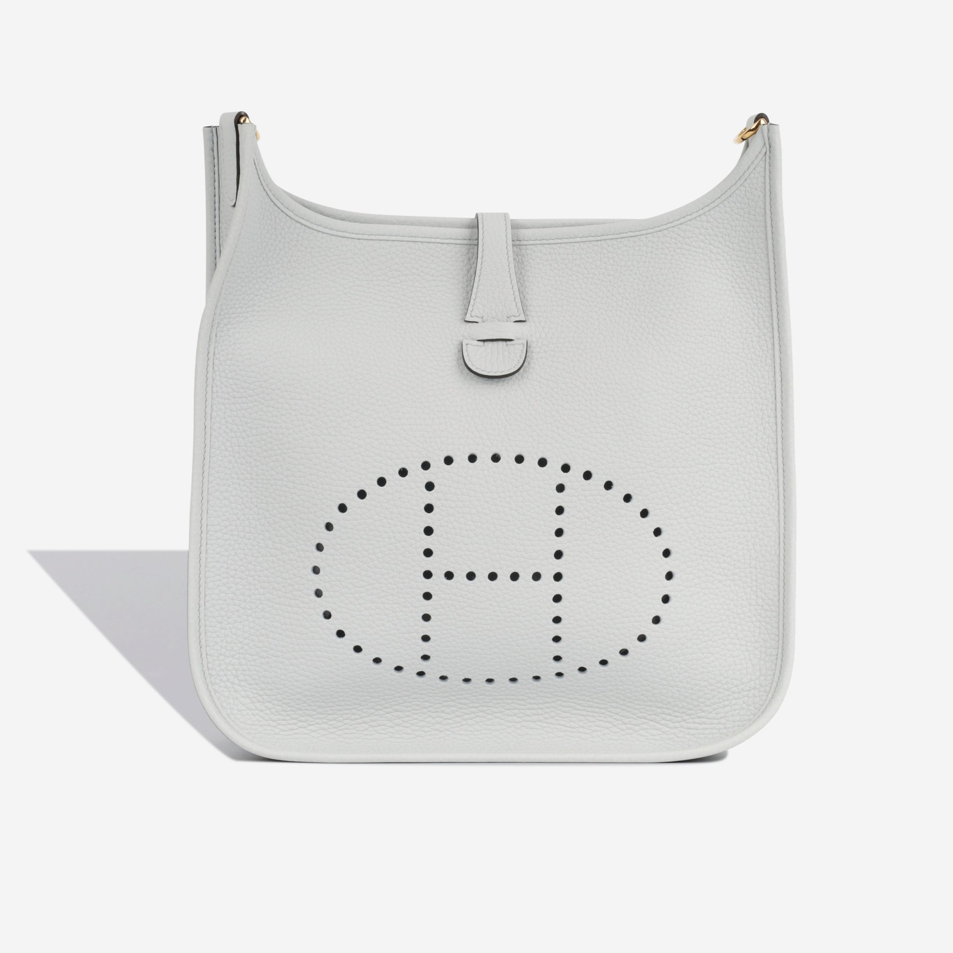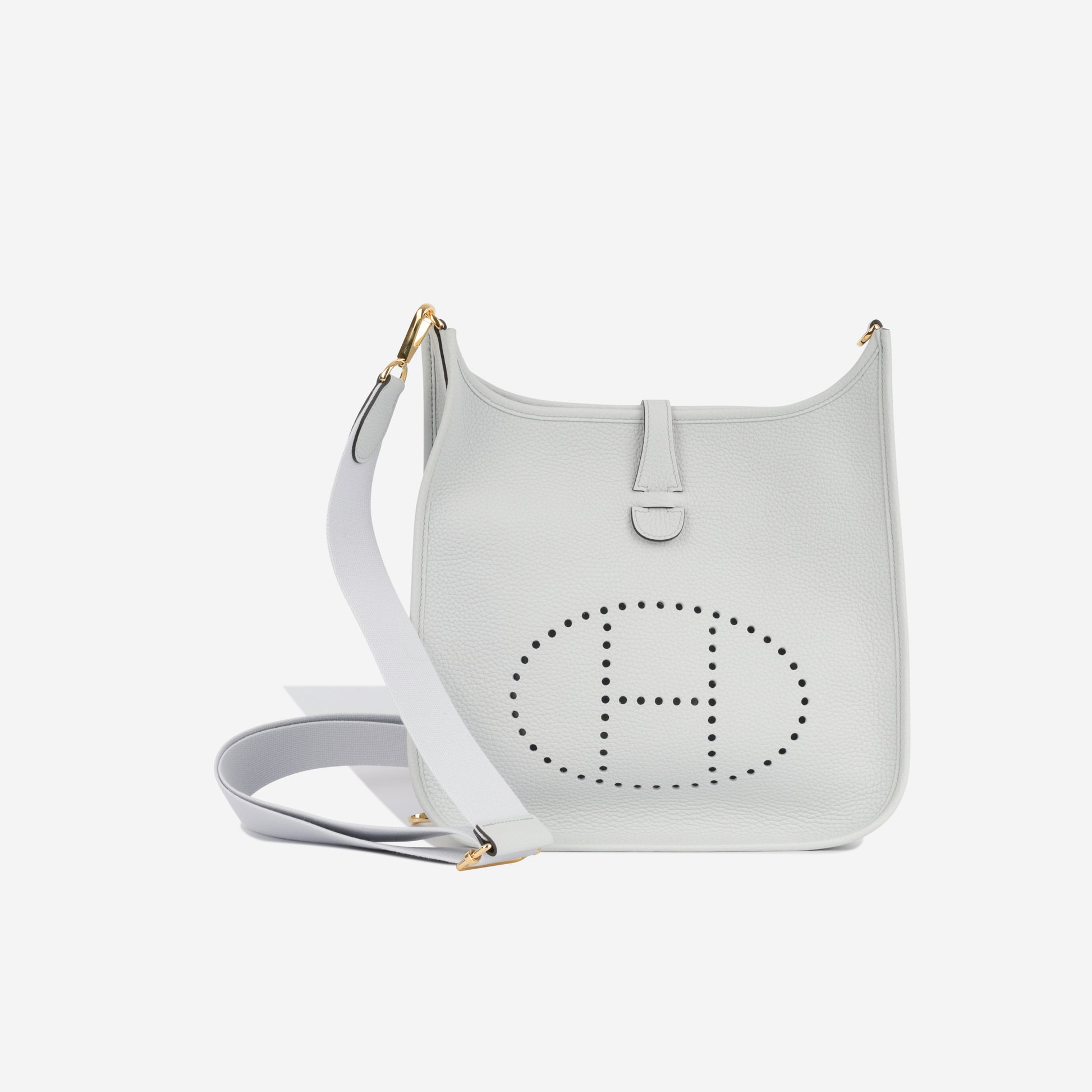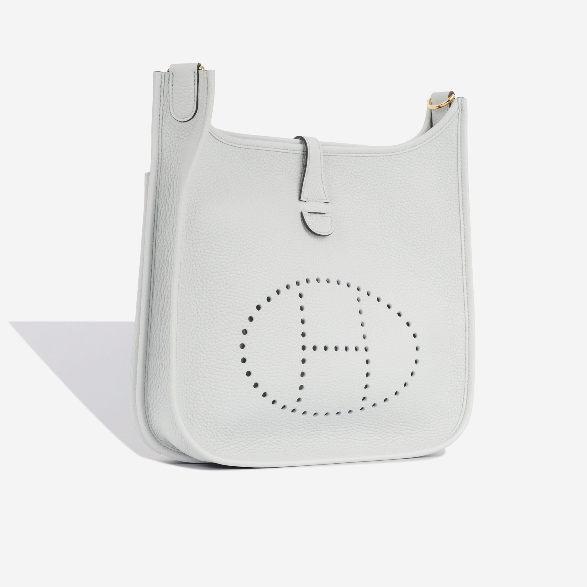 First introduced in the 1970’s, the bag is named after the brands former head of riding department, Evelyne Bertrand. Crafted out of supple Clemence leather in Bleu Pale and complete with a matching detachable strap, the Evelyne PM size is ideal for every day use while remaining sleek and sophisticated.