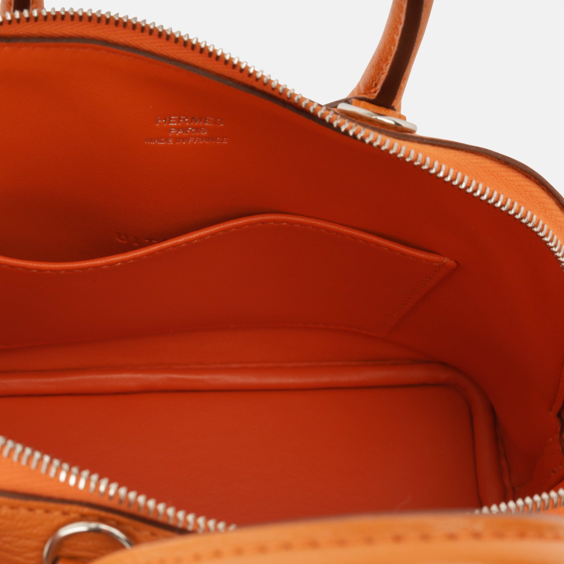 The Mini Bolide is the smallest edition of the Bolide collection. This piece is structured, compact as well as stylish. Hermes pieces exude a true 'if you know, you know" aesthetic by depicting no logos or any kind of brand indication. The ideal bag for any and every occasion, this particular Bolide 19 is crafted in Orange Chèvre leather and can easily take you from day to night given its understated and simplistic appearance.
