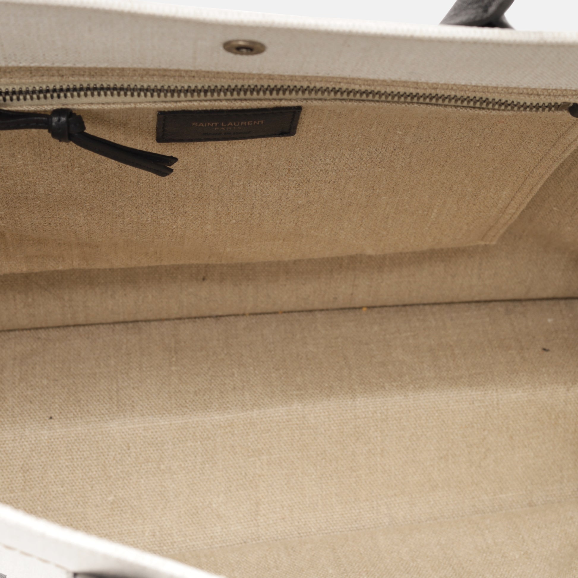 Acclaimed for its minimalist silhouettes, the Rive Gauche tote from Saint Laurent is the ideal accessory for any woman with a chic, simple sense of style and a love for luxury. Crafted from beige canvas and contrasting black lettering, the bag is large enough to carry around everything with you for a day of errands or shopping.