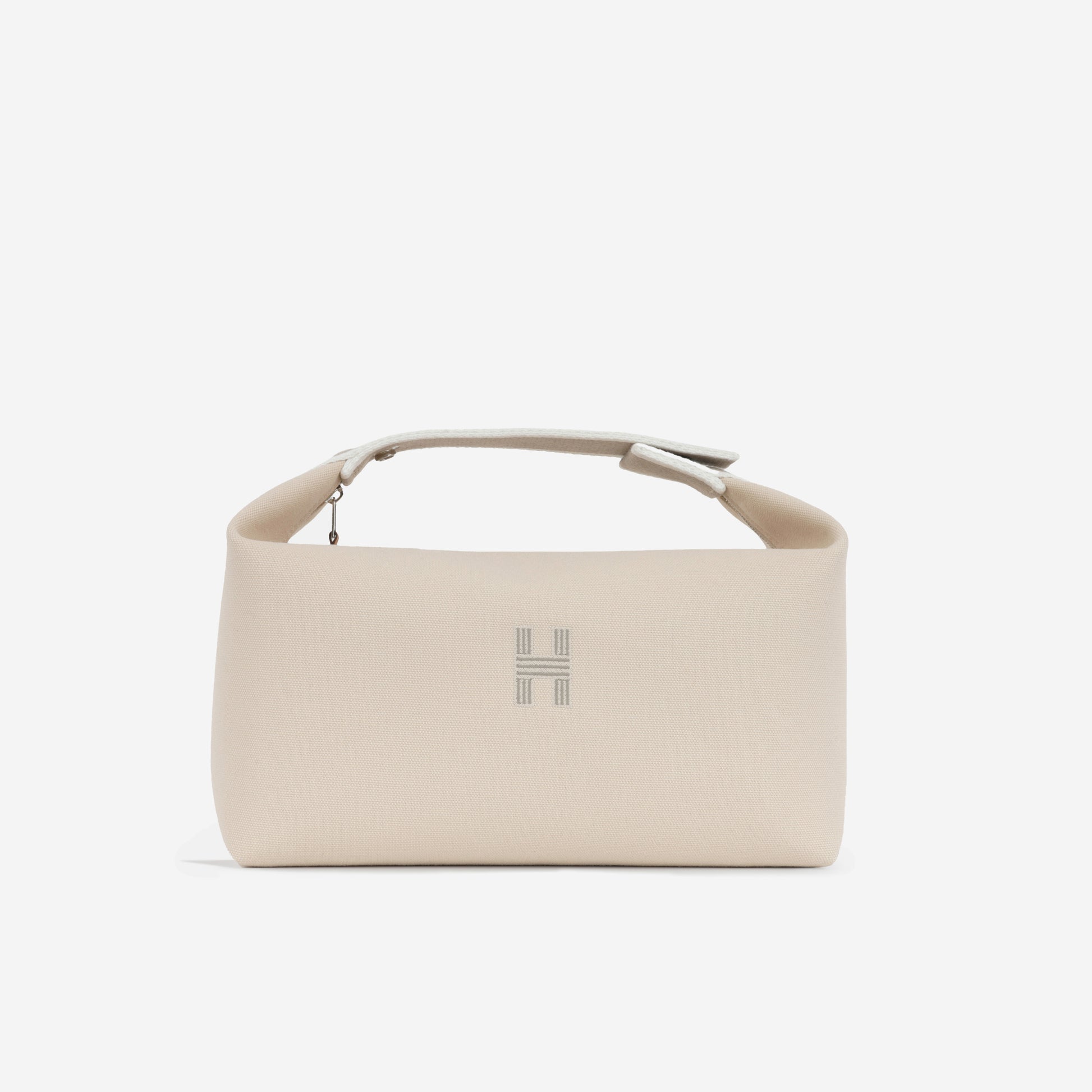 The must-have travel case from Hermès, constructed from lightweight canvas with functional hanging handle that can be closed in several ways. Available in two sizes: small and large.