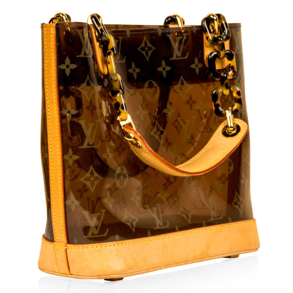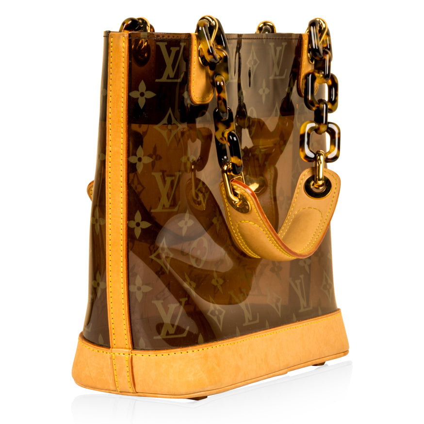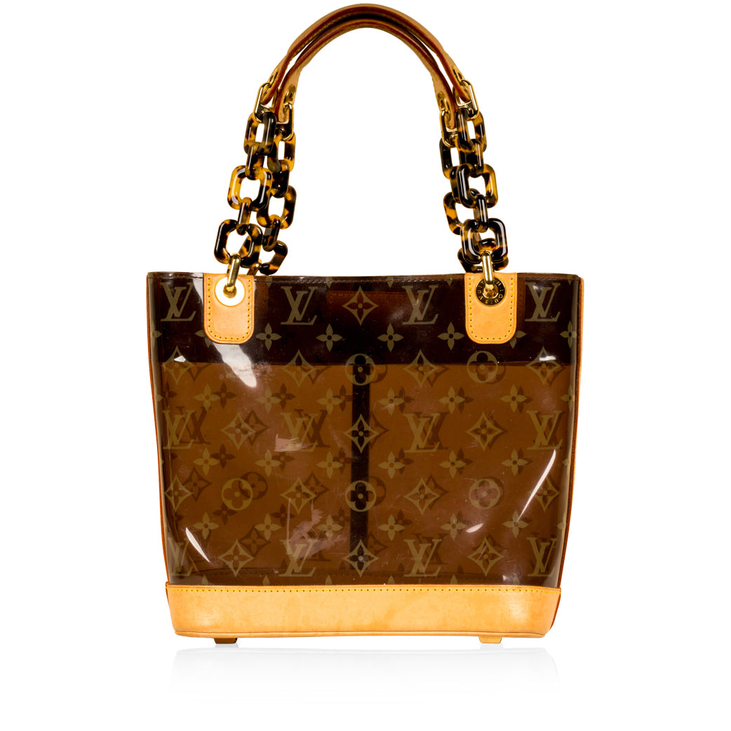 Louis Vuitton presents the Cabas Ambre PM Tote in Vinyl and Leather. Presented in a sheer iconic monogram LV print. The bag is also accented with marvellous gold toned hardware, which cleverly compliments the leather and patterned chains. The ultimate go-to that balances fashion and function, the Cabas Ambre PM Tote can easily hold all your daily essentials in style. Chic and sophisticated, this is the ideal bag for the modern woman with a love for luxury and timelessness. It's a bag that will never go out of style and will remain in your wardrobe forever.