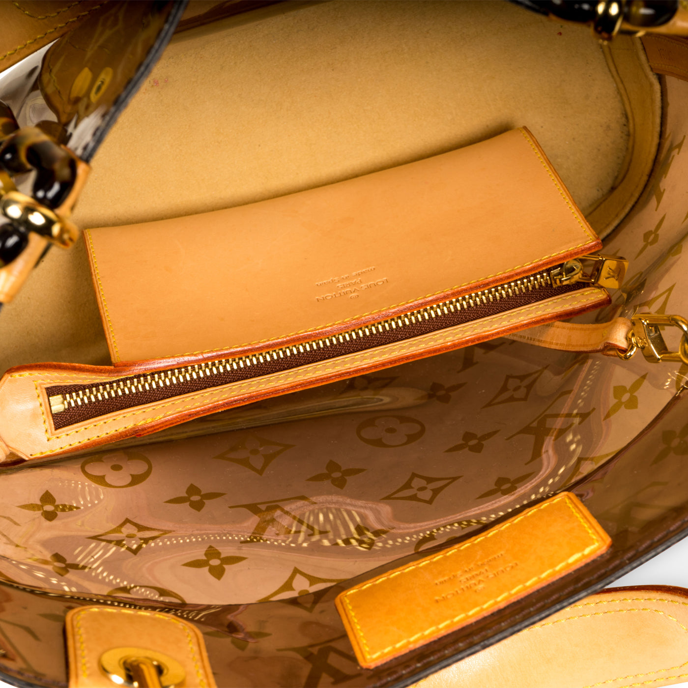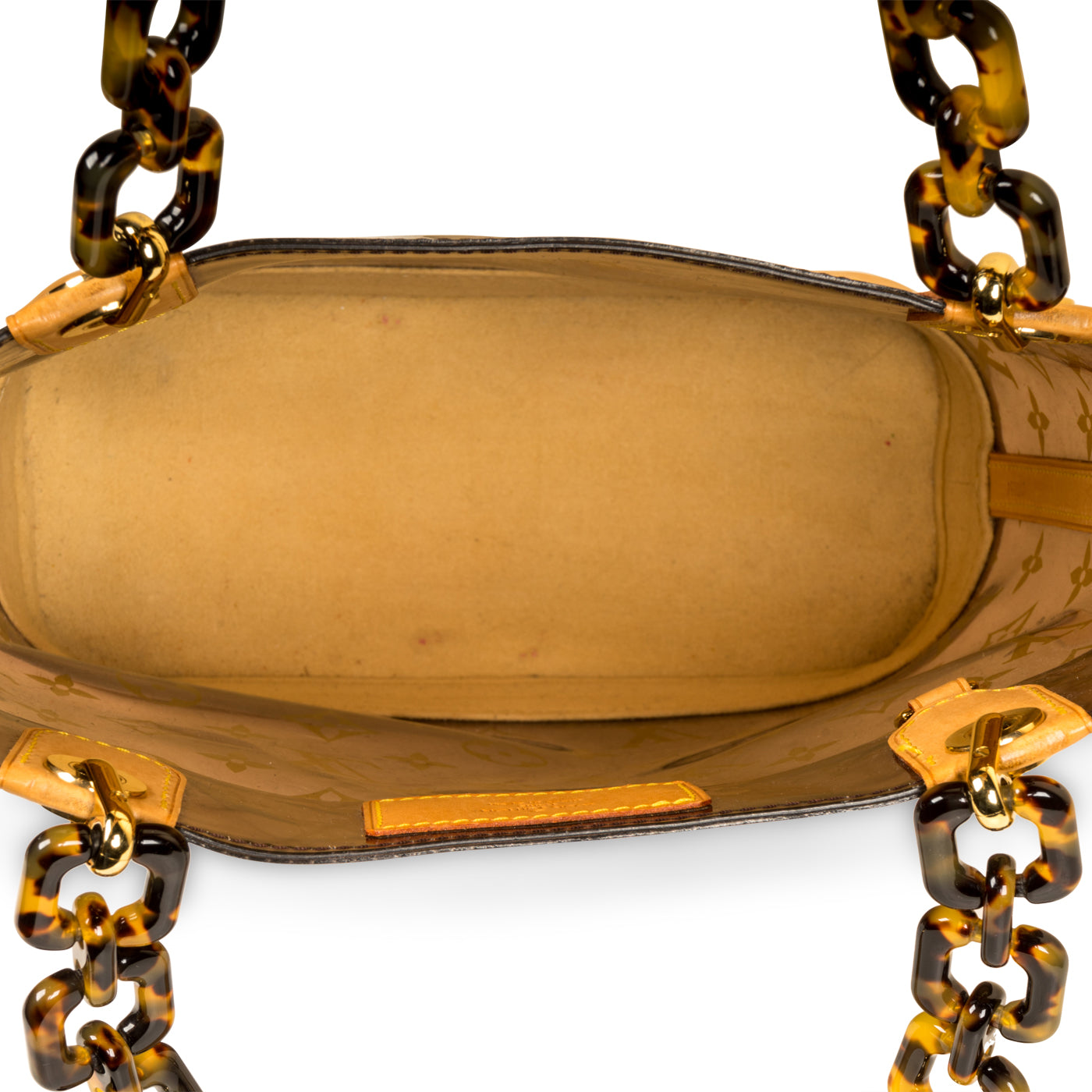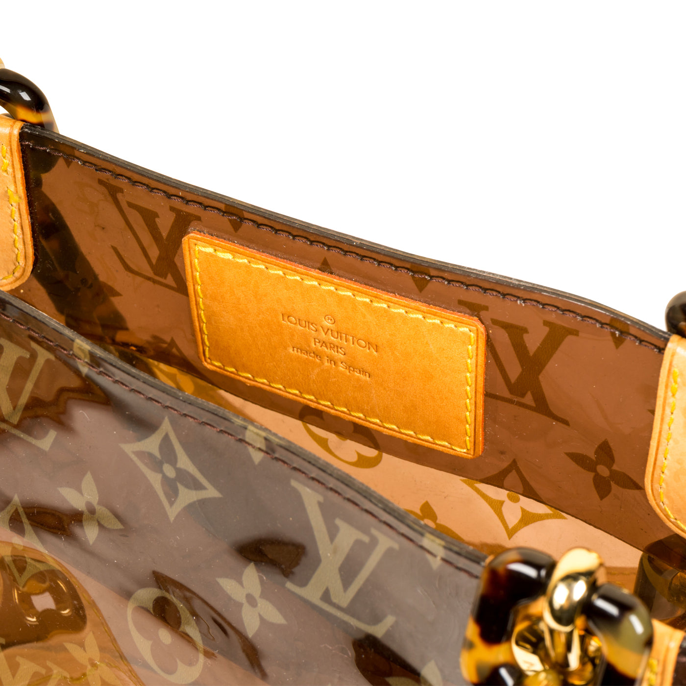 Louis Vuitton presents the Cabas Ambre PM Tote in Vinyl and Leather. Presented in a sheer iconic monogram LV print. The bag is also accented with marvellous gold toned hardware, which cleverly compliments the leather and patterned chains. The ultimate go-to that balances fashion and function, the Cabas Ambre PM Tote can easily hold all your daily essentials in style. Chic and sophisticated, this is the ideal bag for the modern woman with a love for luxury and timelessness. It's a bag that will never go out of style and will remain in your wardrobe forever.