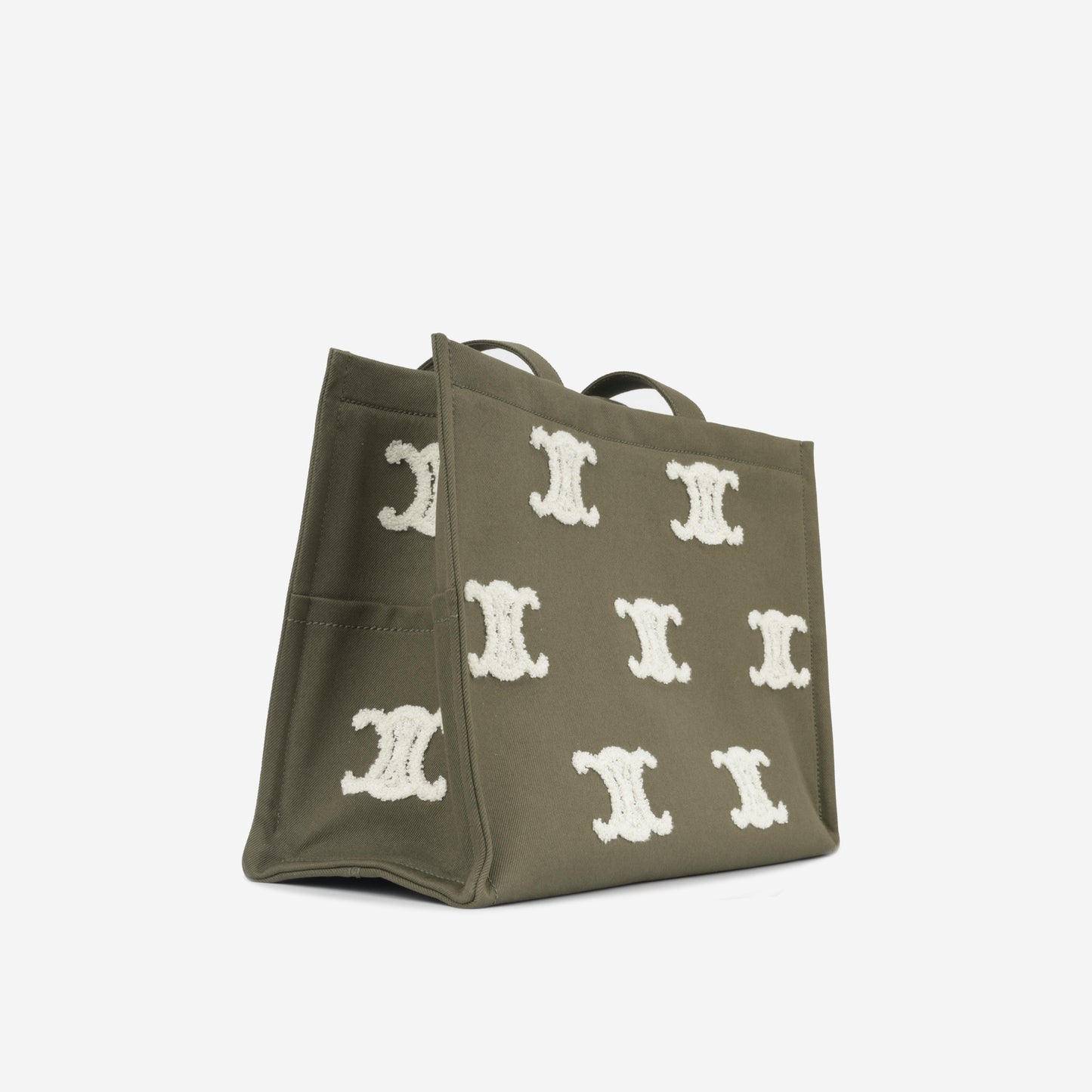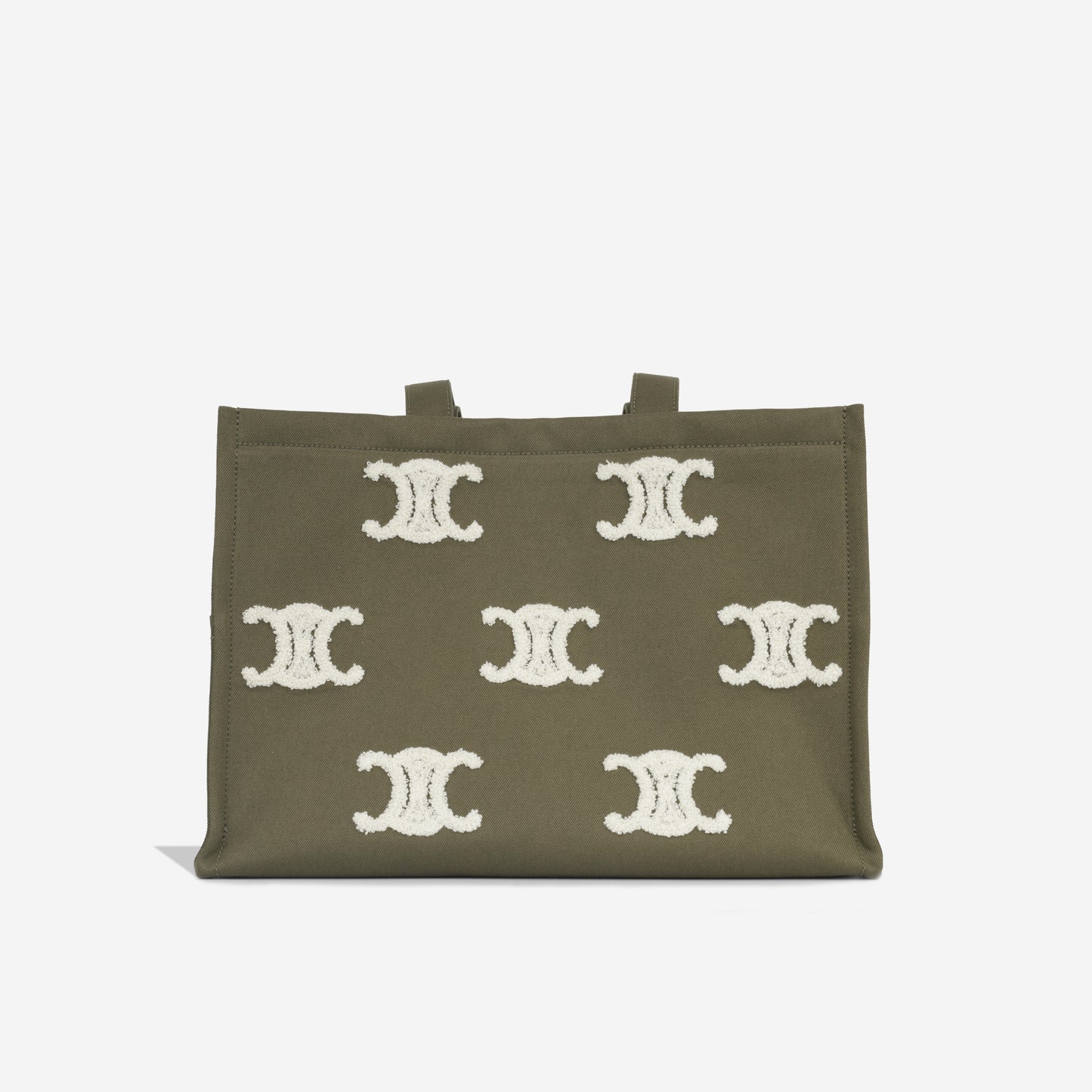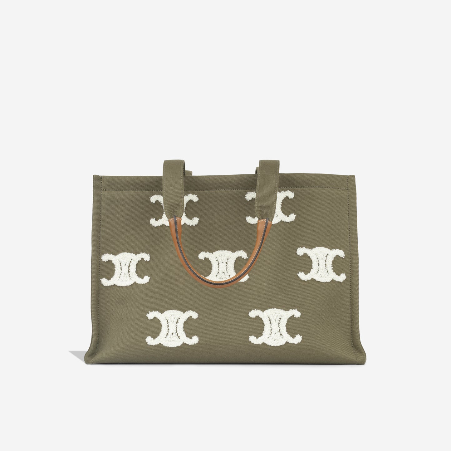 Crafted for a durable material, canvas exterior this bag is perfect work, travel, and everyday adventures, it combines practicality with timeless sophistication. The spacious interior accommodates all your essentials, making it a trusted companion for your busiest days. Step out in confidence, knowing that the Celine Triomphe Cabas Tote complements your look with a touch of refined luxury.