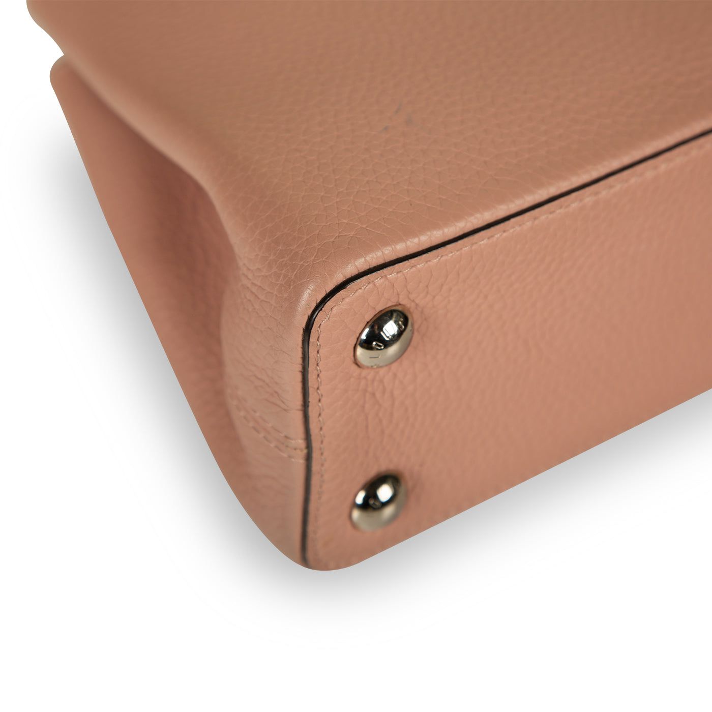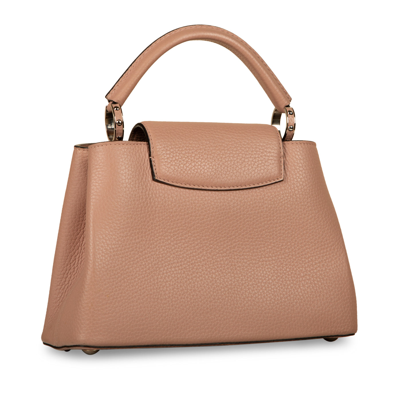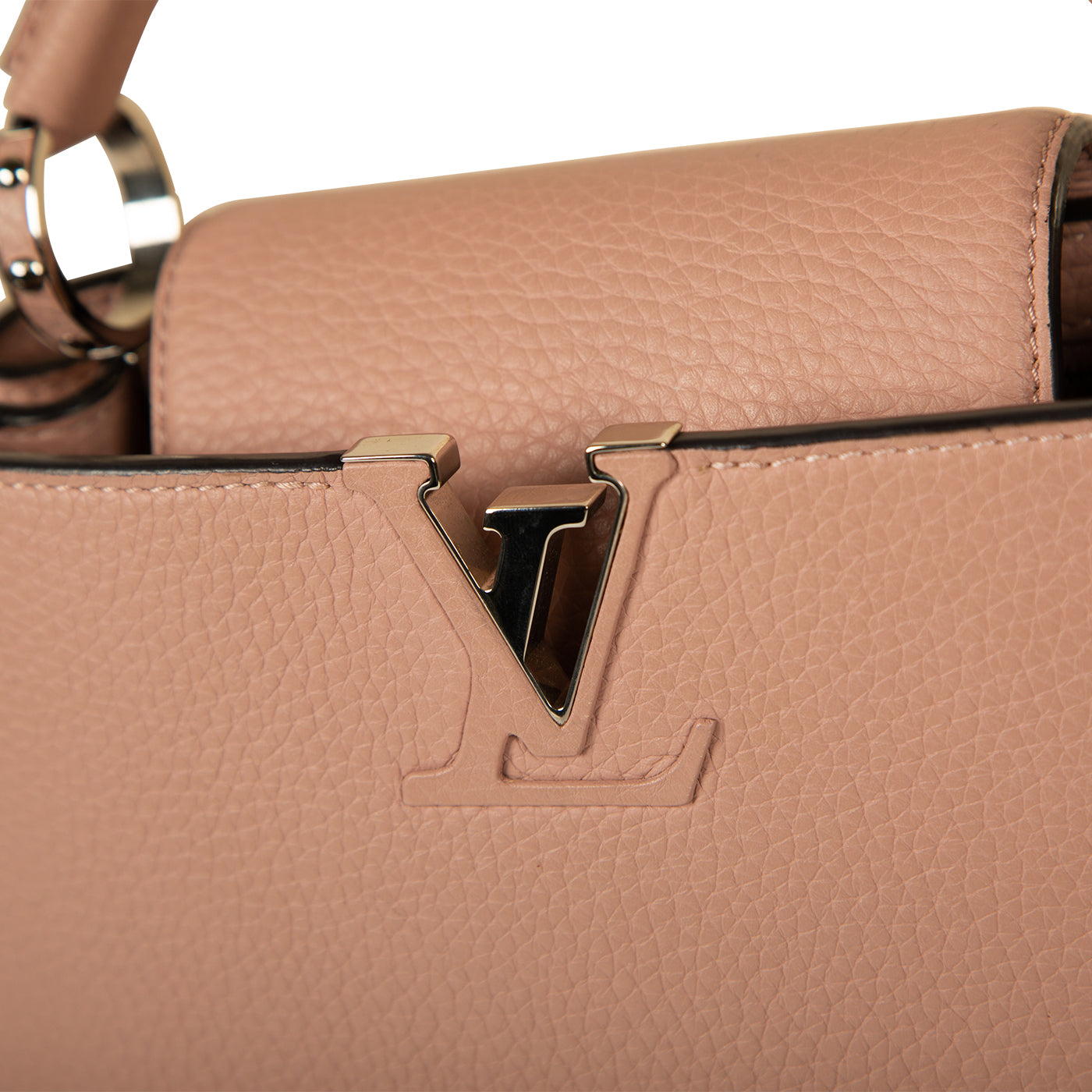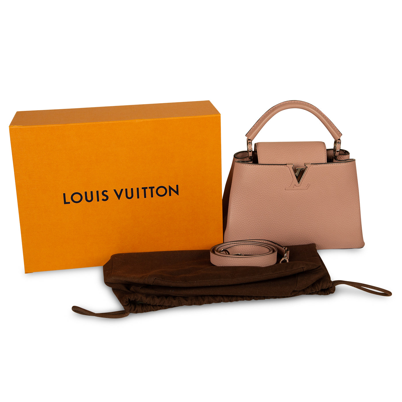 The Capucines BB by Louis Vuitton is the perfect city chic bag. With modern lines and bold hardware, this will stand out from the crowd. The BB is compact and easy to wear as it adds a glamourous touch to any outfit. The Capucines line takes its name from the Rue des Capucines in Paris, where Louis Vuitton opened his first store in 1854. Wear the flap on the outside to show the monogram flower, or tuck the flap into the top compartment to reveal the LV initials in stunning silver hardware.