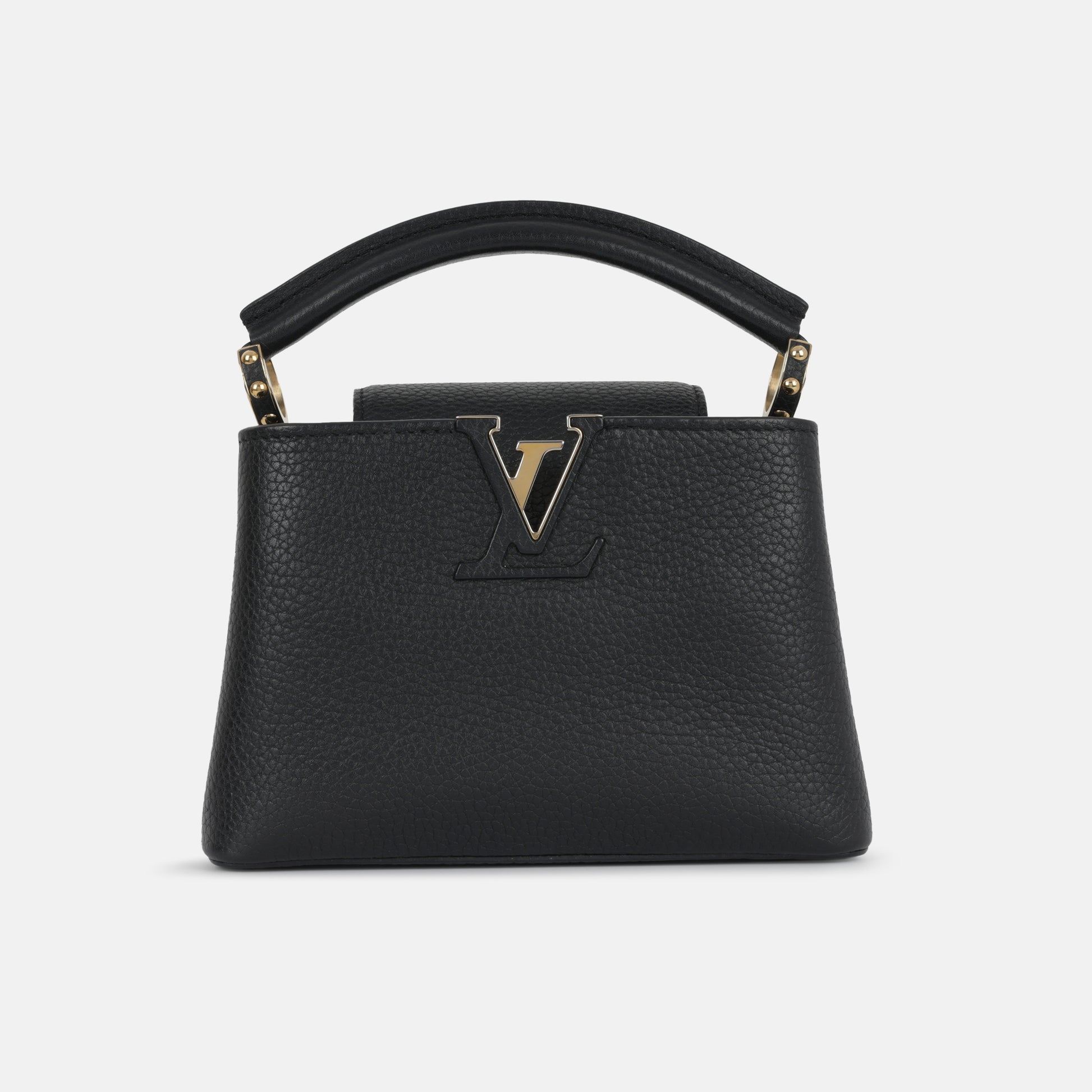 Introducing the Capucines Mini bag, a true work of art that embodies luxury and elegance. This exquisite piece features a body and LV Initials adorned entirely with Swarovski crystals, reminiscent of a twinkling night sky.