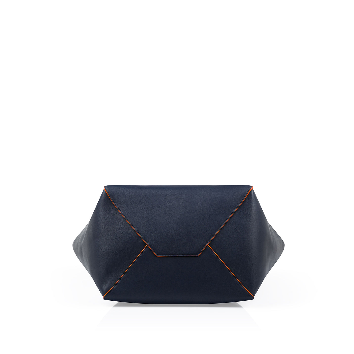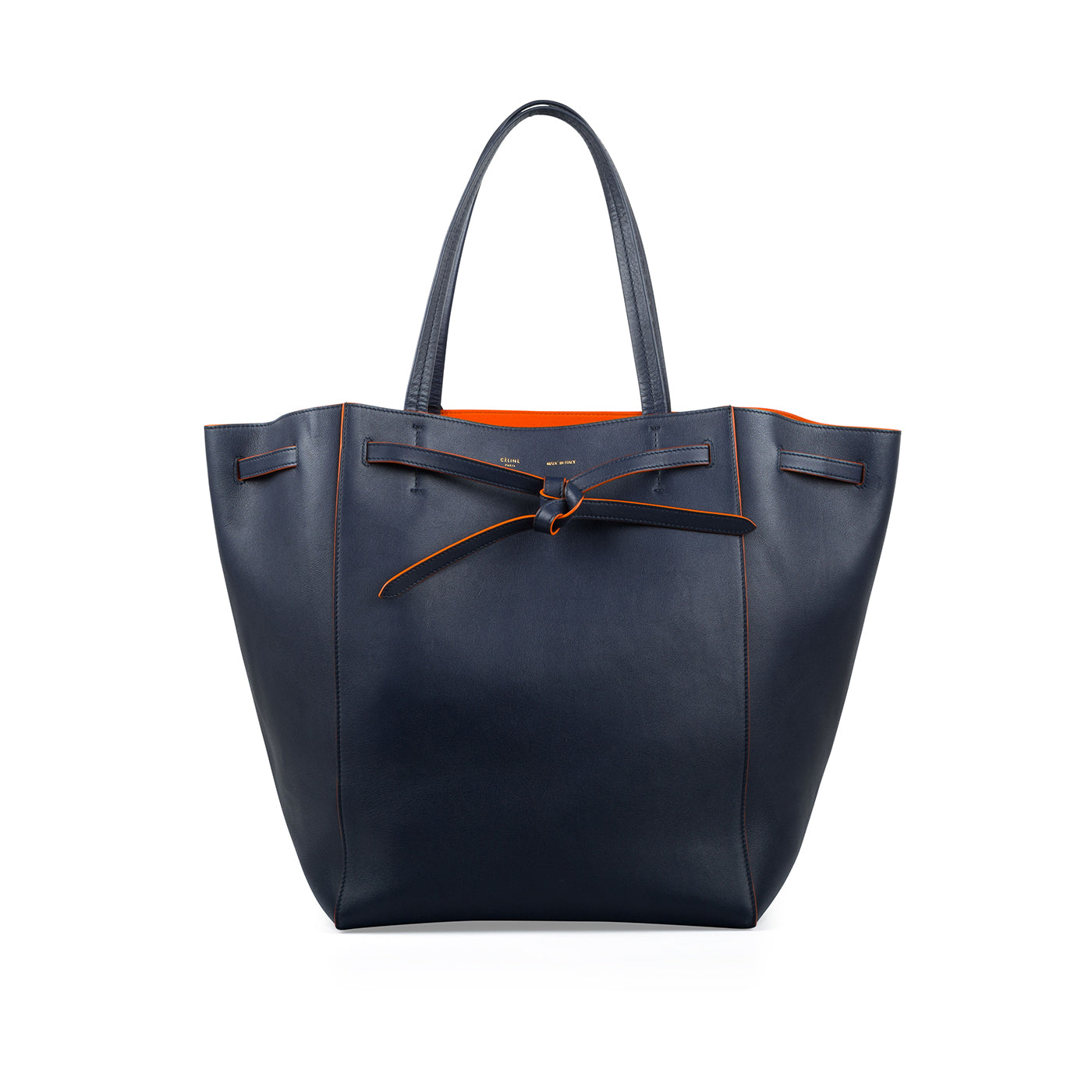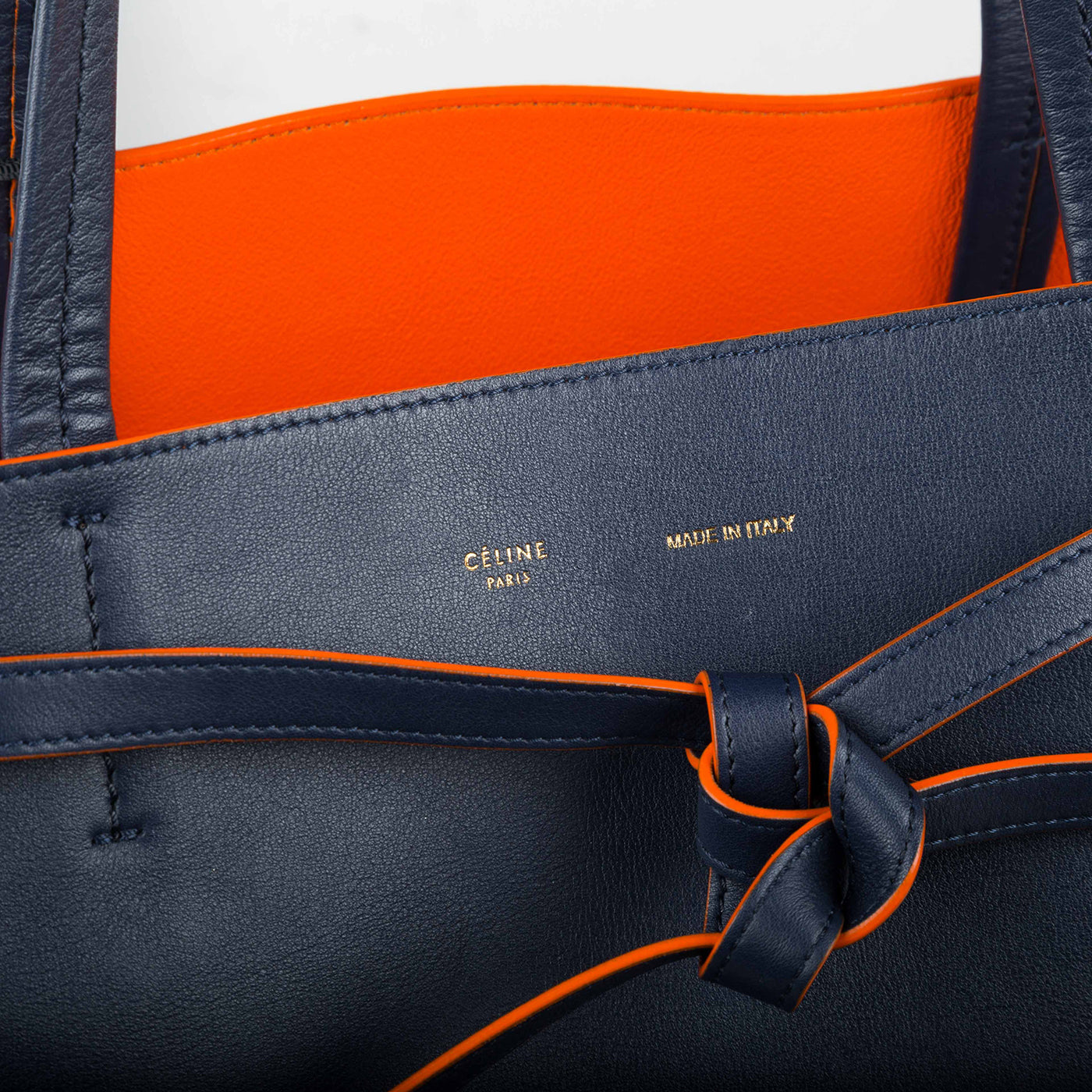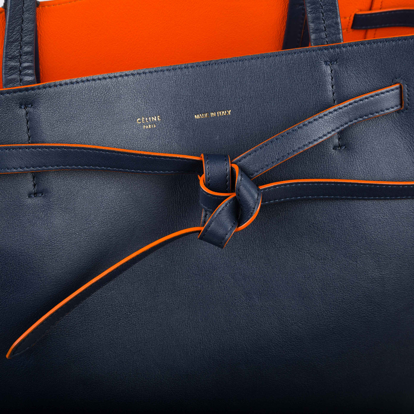 From the brand's Spring 2015 collection, Céline presents their stunning Phantom Cabas tote. Carefully crafted in smooth navy calfskin with orange trimming, this bag is the ultimate accessory for any woman with a love for luxury and a lot to carry. Céline is acclaimed for their low-key vibes while balancing their reputation for creating the most luxurious pieces - and this bag is no exception. Exuding a true "if you know, you know" aesthetic, this understated handbag is for a chic woman with a simple sense of style. Though it might not be the definition of glamorous, it is the definition of luxurious with its quality craftsmanship and durable leather that can easily hold your entire world inside. Elegant and timeless, the Phantom cabs is a well-worthy addition to any luxury handbag collection.