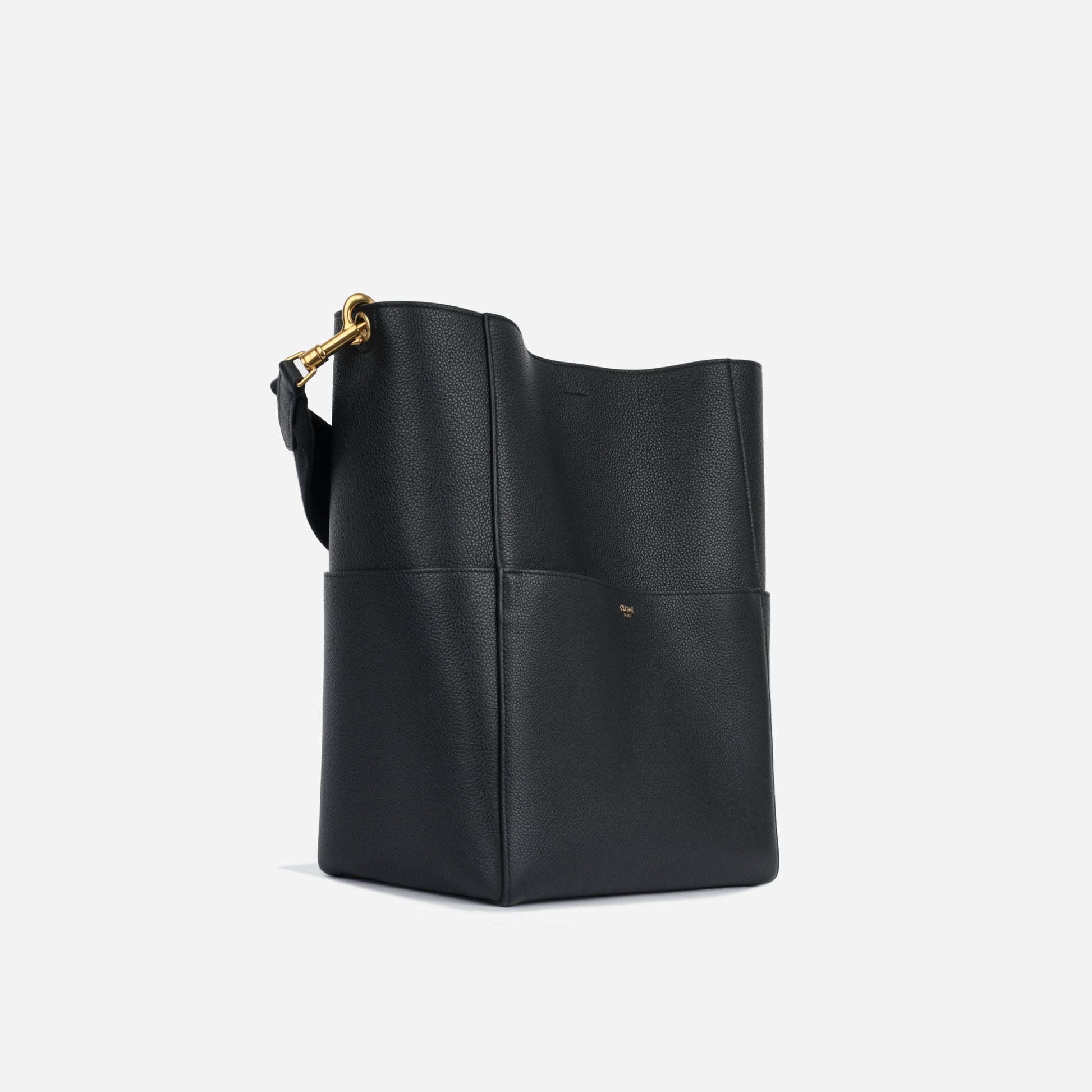 The Celine Sangle Bucket bag is an essential, constructed from calfskin and showcasing clean lines and functionality. The wool fabric strap allows for shoulder carry.