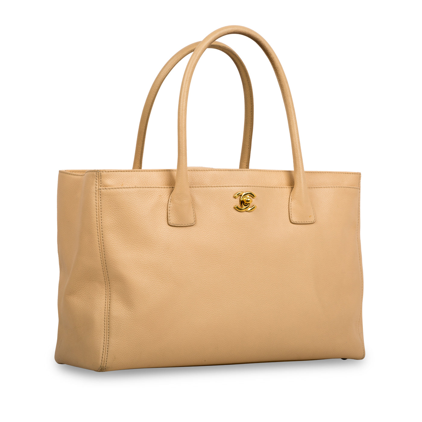 The Cerf Executive Tote in XL is the ideal handbag for the elegant and ambitious woman. Crafted in durable beige pebbled leather, this timeless Chanel classic is an absolute must-have for anyone with a love for luxury and a lot to carry. This spacious bag with multiple compartments allows you to carry all your daily essentials comfortably inside while remaining sleek, stylish and sophisticated. The Cerf tote is a piece you'll have in your wardrobe forever and one you'll never tire of. It's the go-to bag you'll use every day, whether you're running errands or going to work, the Cerf is a suitable companion to accompany you wherever you go. Effortlessly elegant, this investment bag is one you won't regret purchasing.