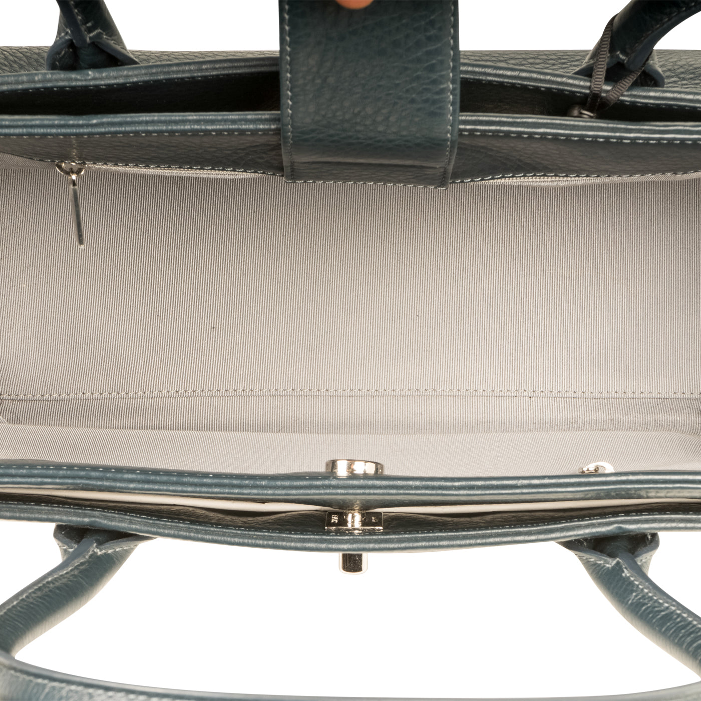 Chanel presents their infamous and beloved Cerf tote, the ideal handbag for the elegant and ambitious woman. Crafted in durable navy pebbled leather, this timeless Chanel classic is an absolute must-have for anyone with a love for luxury. The smallest of the Cerf tote line, this small but spacious bag allows you to carry all your essentials comfortably inside while remaining sleek, stylish and sophisticated. The Cerf tote is a piece you'll have in your wardrobe forever and one you'll never tire of. It's the go-to bag you'll use every day, whether you're running errands or going to work, the Cerf is a suitable companion to accompany you wherever you go. Effortlessly elegant, this investment bag is one you won't regret purchasing.