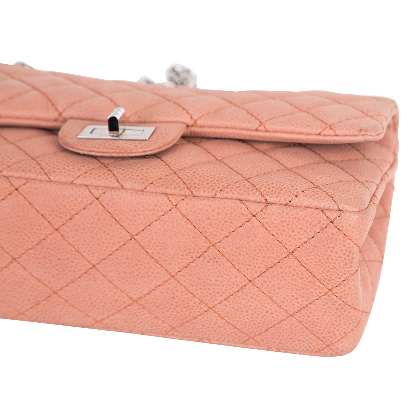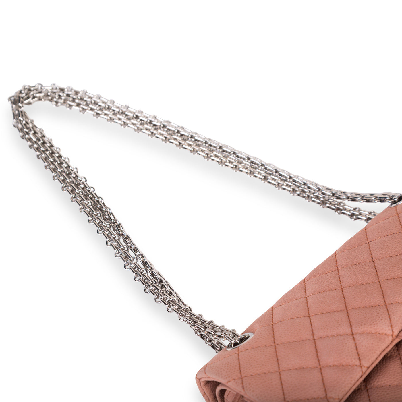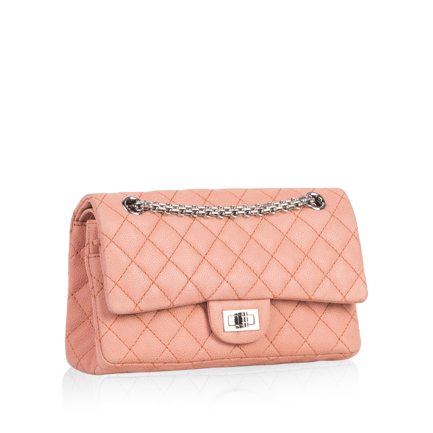For timeless Parisian-chic there is no better investment than a Chanel classic flap bag, and this 2.55 re-issue is a rare and stunning find. Under the creative direction of Karl Lagerfeld, Chanel have continued to create these flawlessly crafted handbags which last a lifetime. This particular piece has been crafted out of rigid dusty-pink leather, with silver hardware and finished with the classic re-issue twist lock. The re-issue will be the perfect investment piece to take you into SS18!