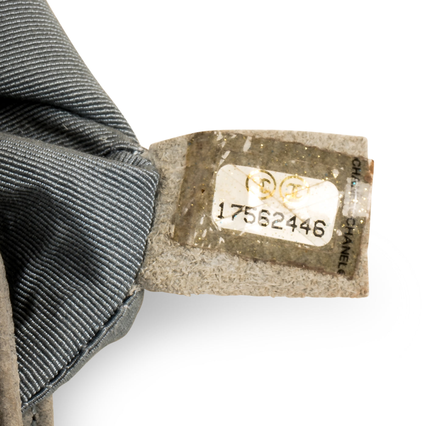 - Chanel embossed leather logo tag