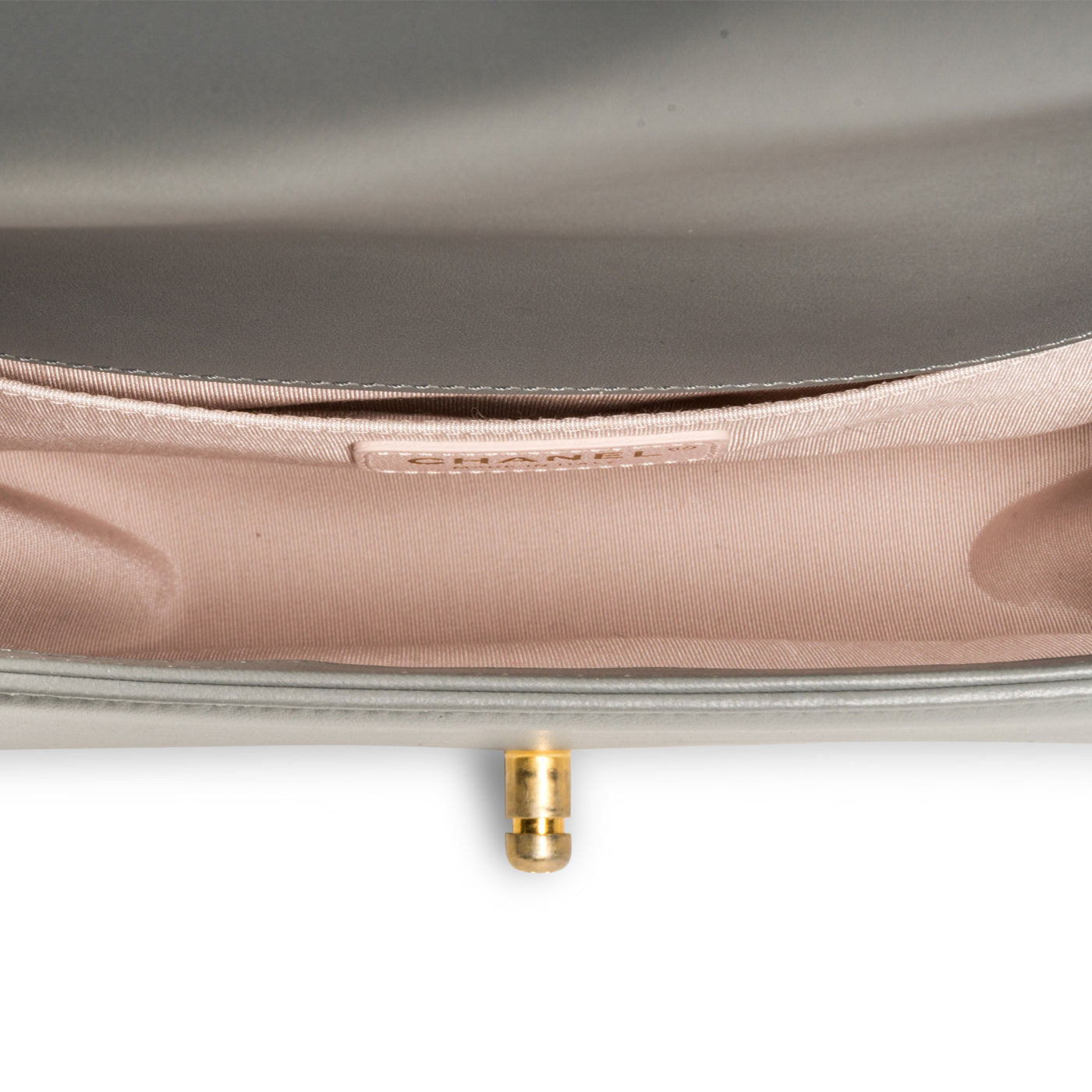 - Chanel embossed leather logo tag