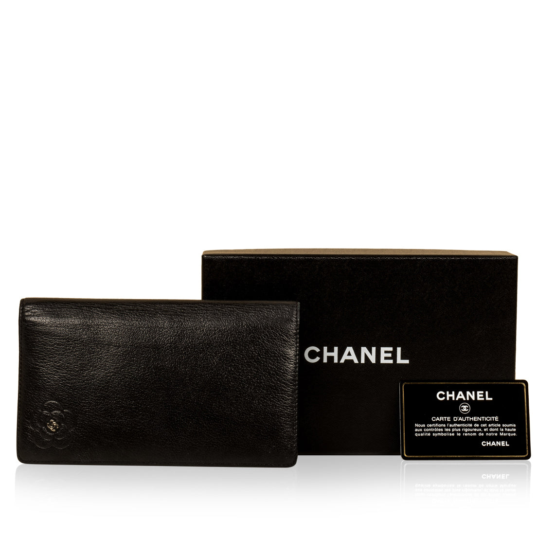 - Chanel embossed leather logo