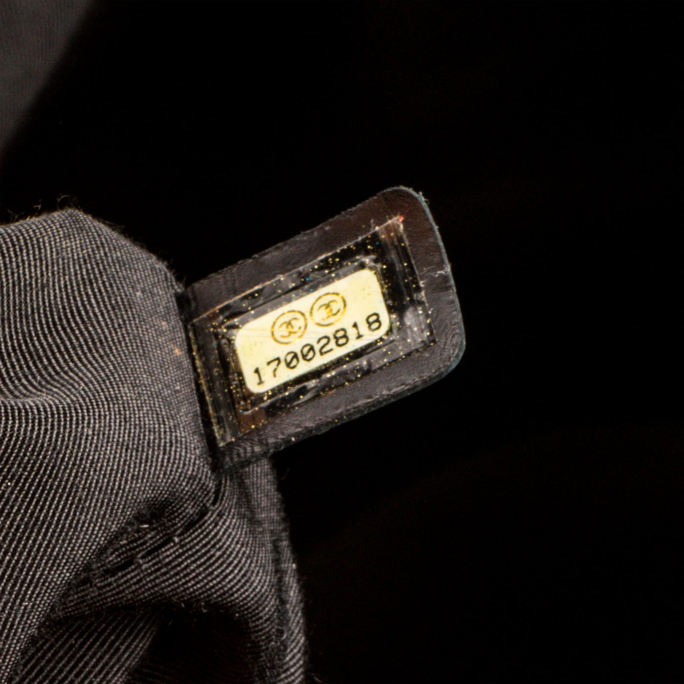 - Chanel embossed leather logo tag