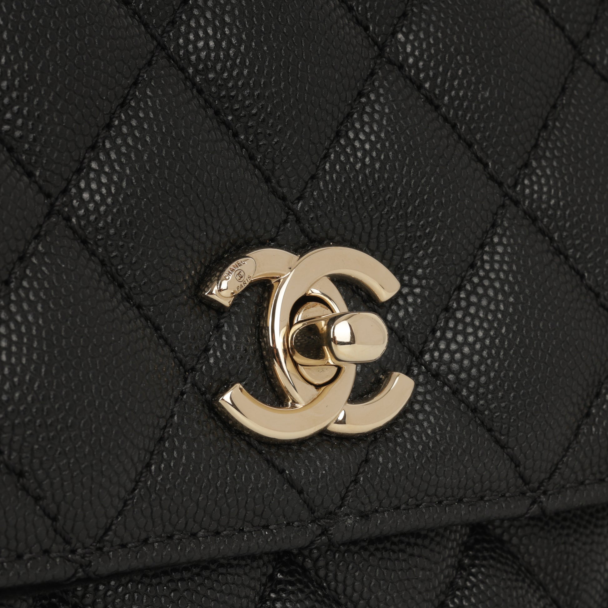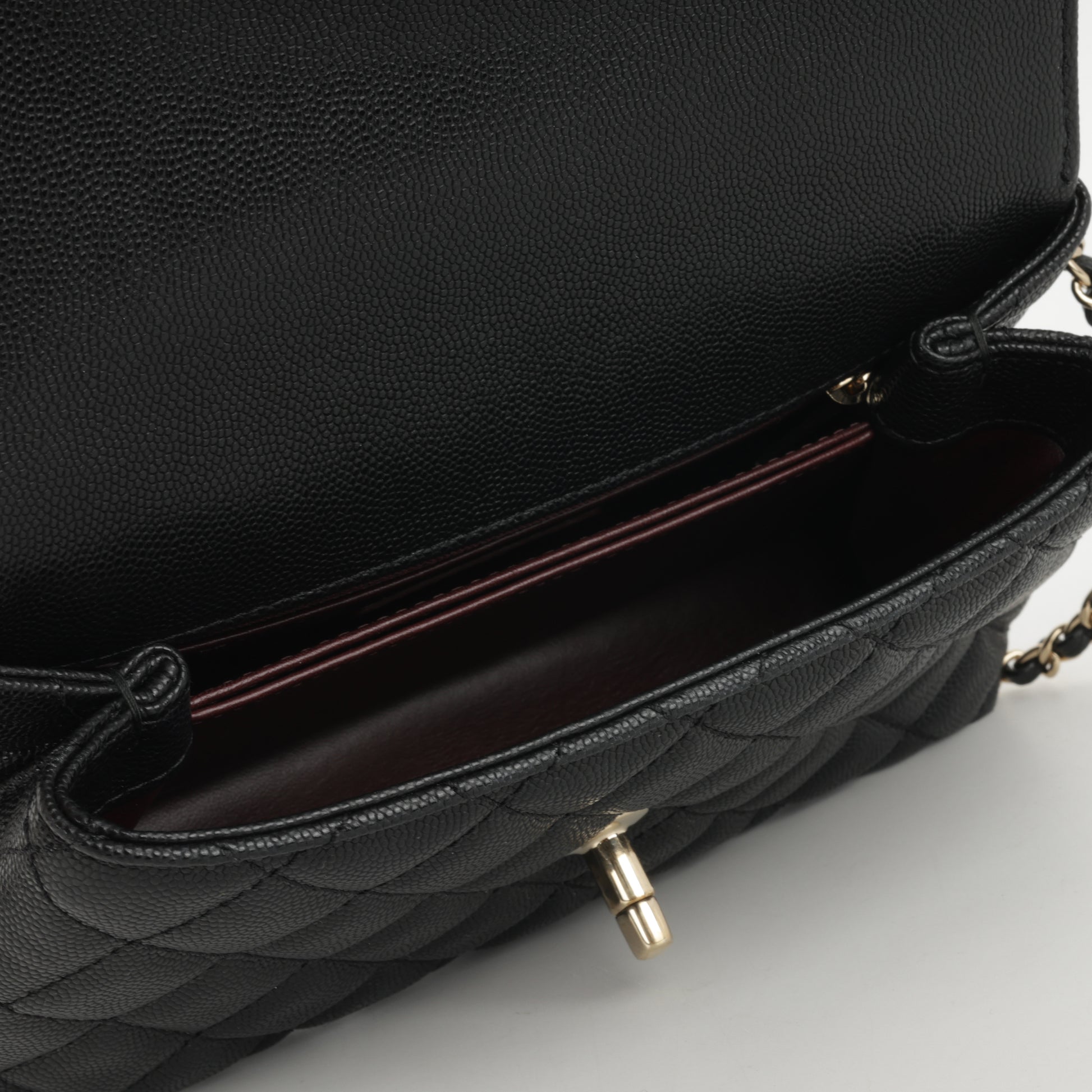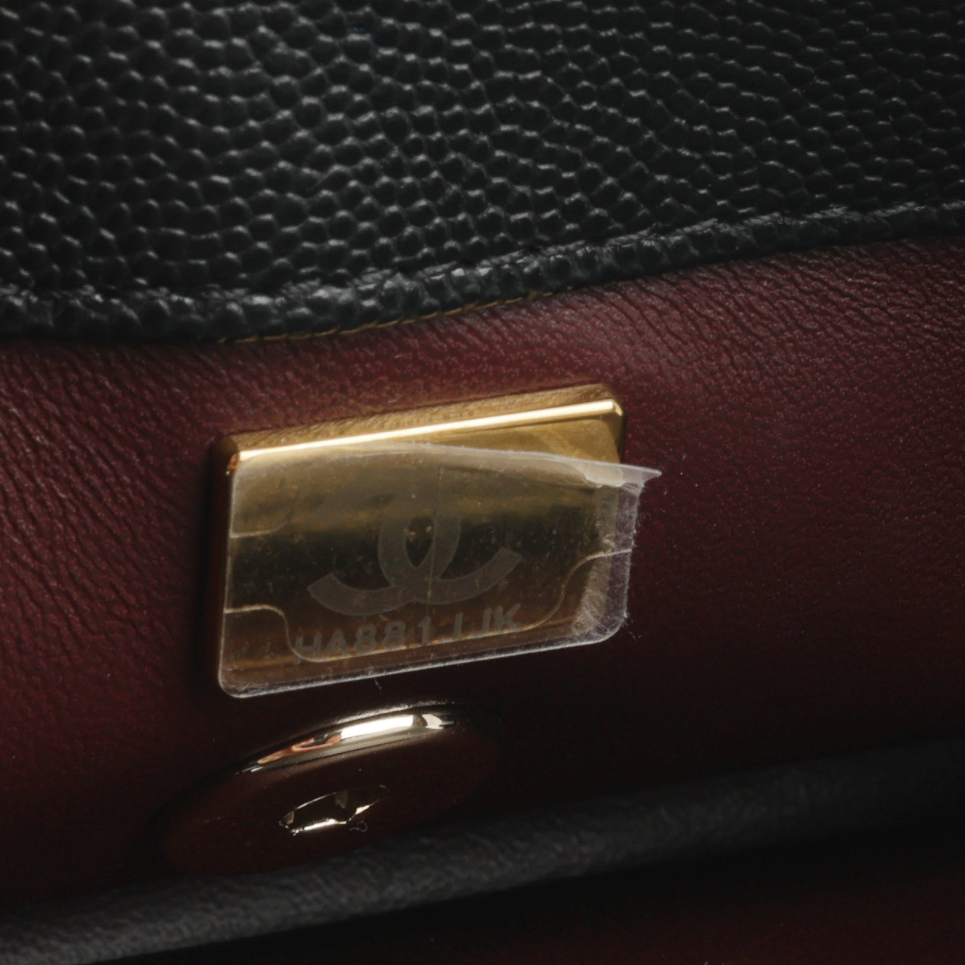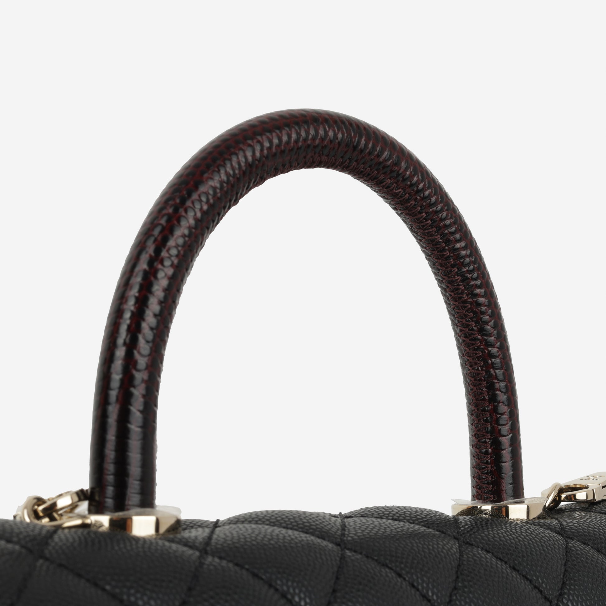 Chanel Small Coco Handle - Black Caviar / Burgundy Lizard Handle | Champagne Gold Hardware
