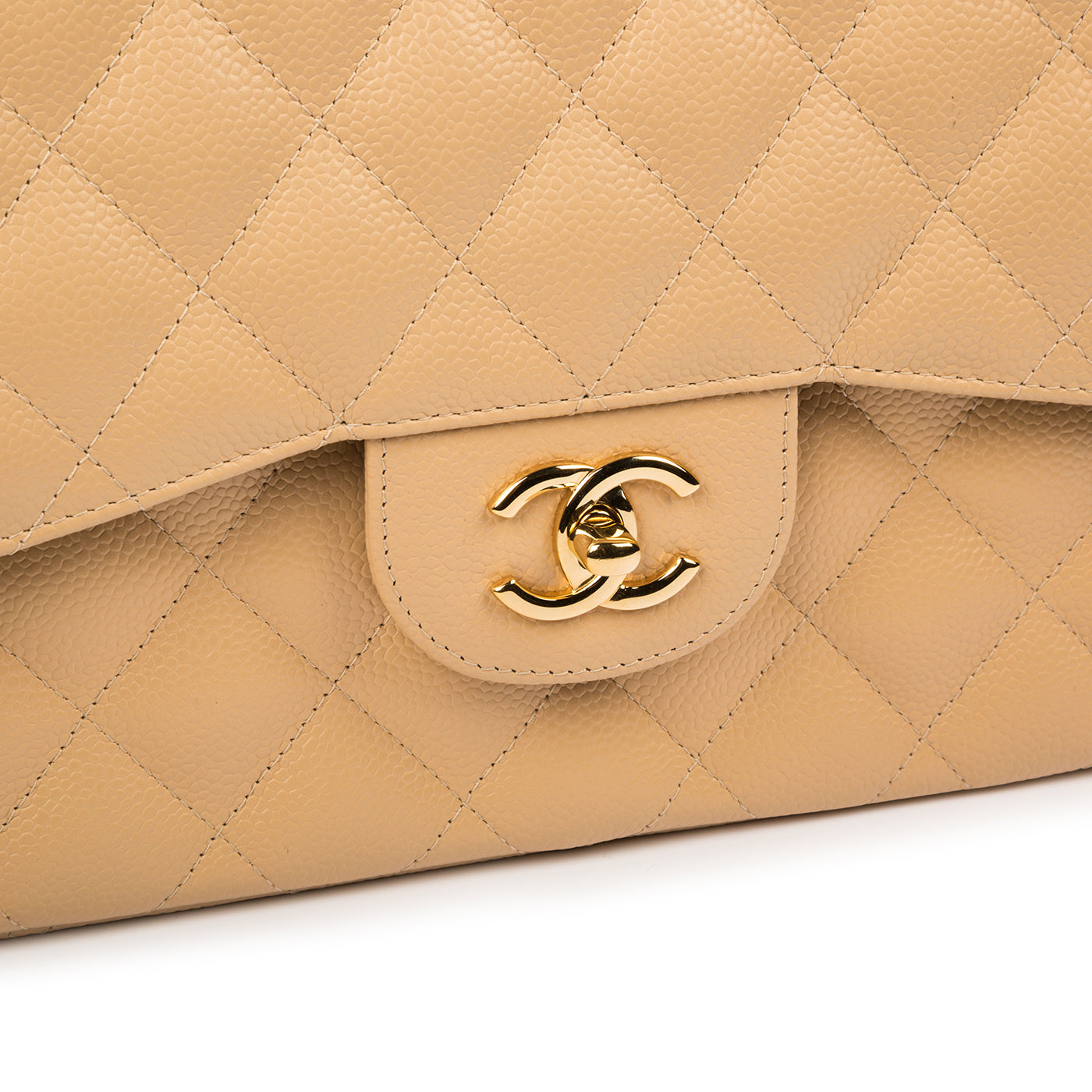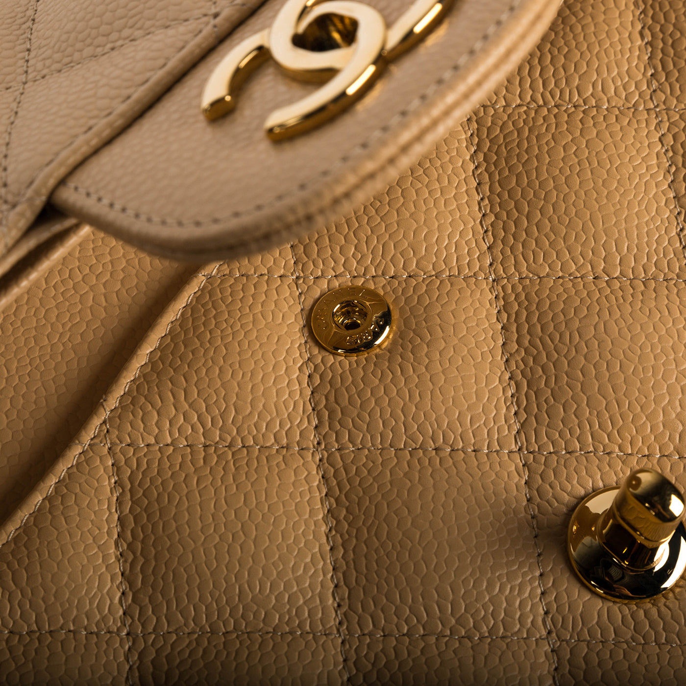 - Beige Caviar Quilted Leather