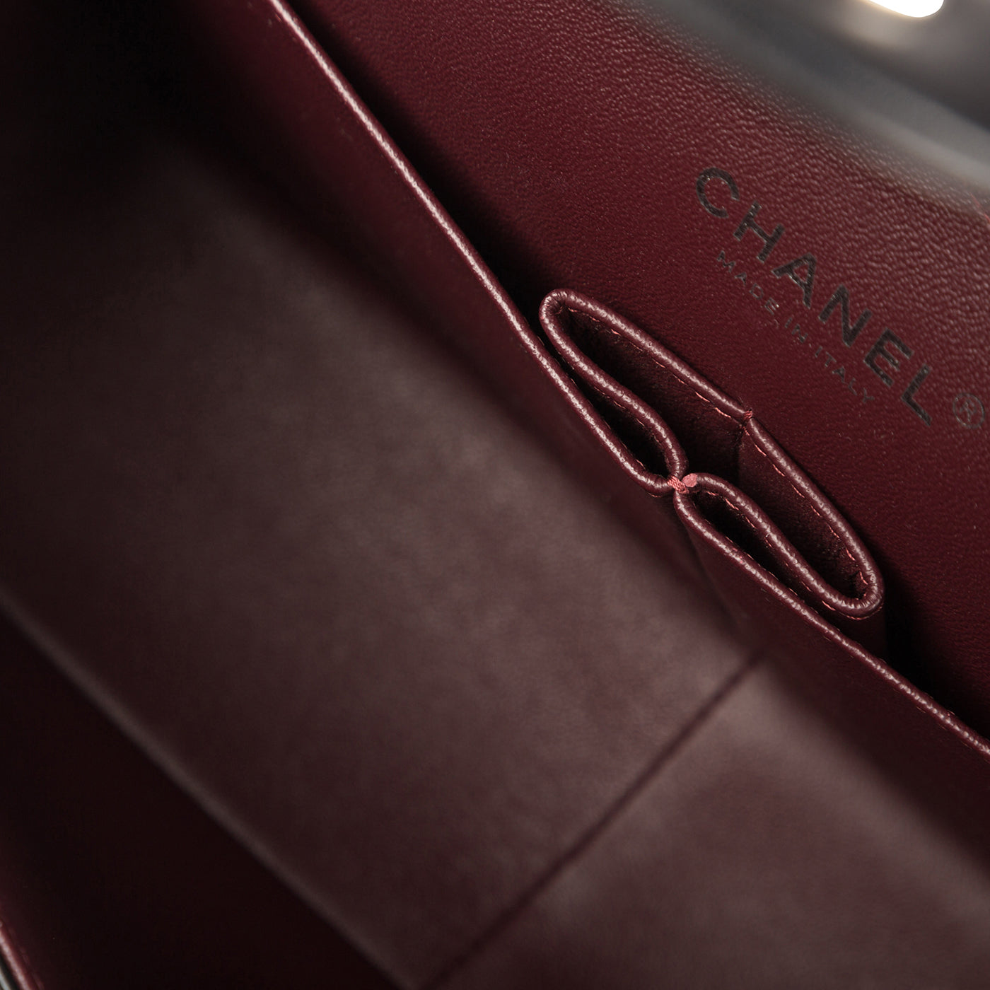 - ‘Chanel’ and ‘Made in Italy’ stamps embossed in leather