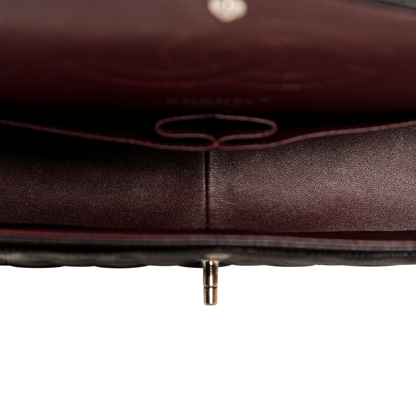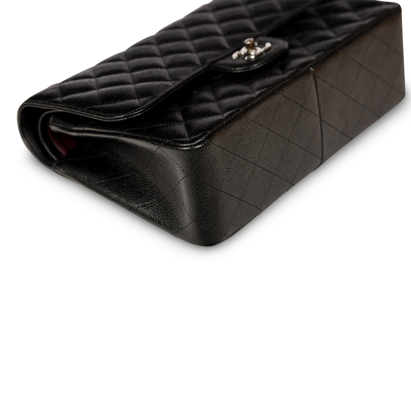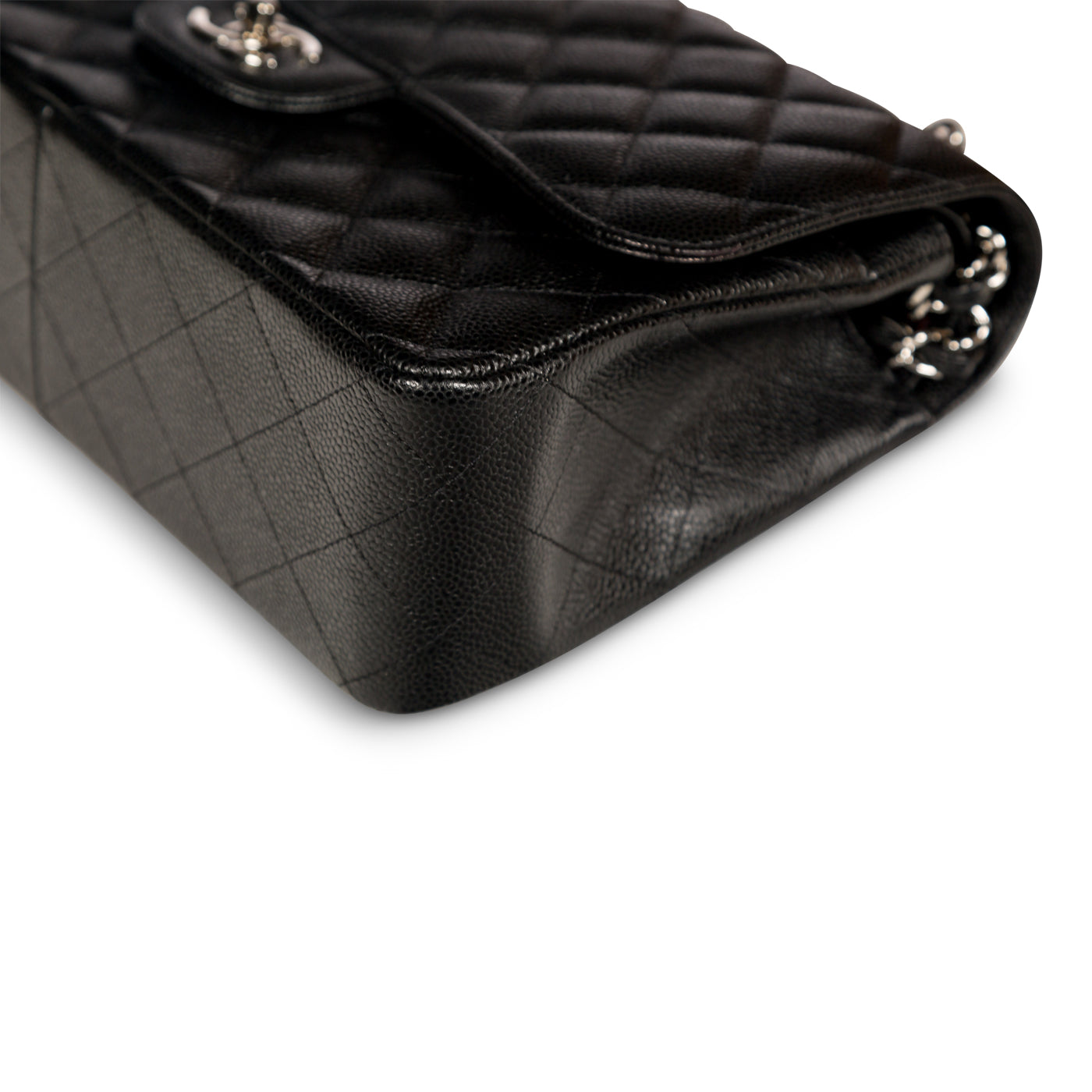 Chanel continues to present its signature line of Classic Flap bags. Under the creative direction of Karl Lagerfeld, the Classic Flap is perhaps the most acclaimed bag in all of fashion history. Timeless, elegant and sophisticated, it's no wonder the Classic Flap is, well, a classic. Featuring its infamous quilted caviar leather and interwoven chain / leather strap, the Jumbo is an absolute must-have in any luxury handbag collection. Not only is this highly coveted, stunning black bag the perfect compliment to pretty much anything you have in your wardrobe, but it's also an investment piece that will never lose its value. Embodying elegance and traditional femininity to a T, a Chanel bag is a purchase you won't ever regret.