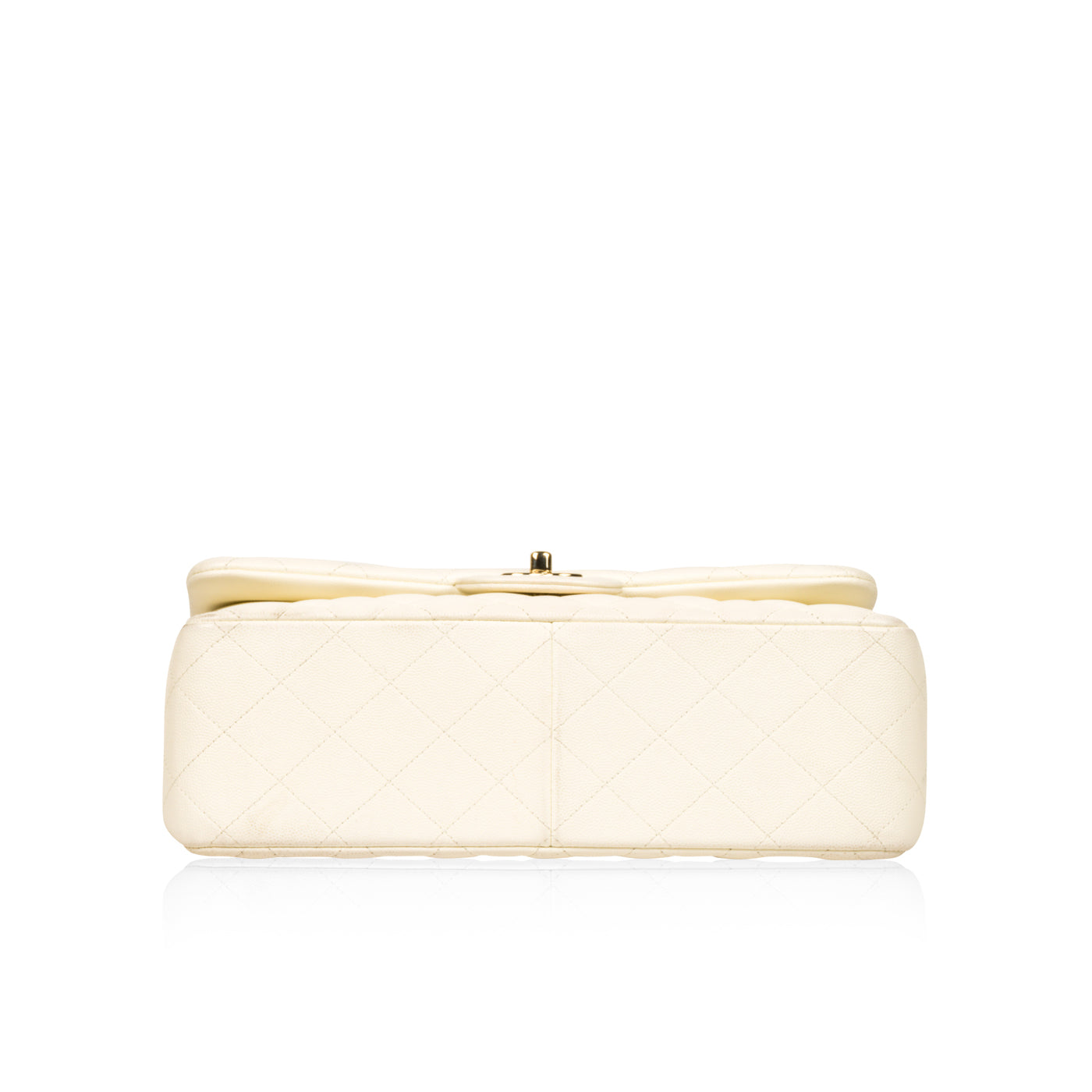 Under the creative direction of Karl Lagerfeld, Chanel continues with its line of classic quilted bags. This enviable Double Flap bag is crafted in caviar leather, and detailed with fine stitching and newly introduced Champagne-Gold hardware. The chain is interwoven with leather and can be worn on either a single shoulder strap or doubled up. The neutral colour means this bag fits seamlessly into any wardrobe, and it can stay in there forever! The Classic Flap from Chanel is a true investment piece.