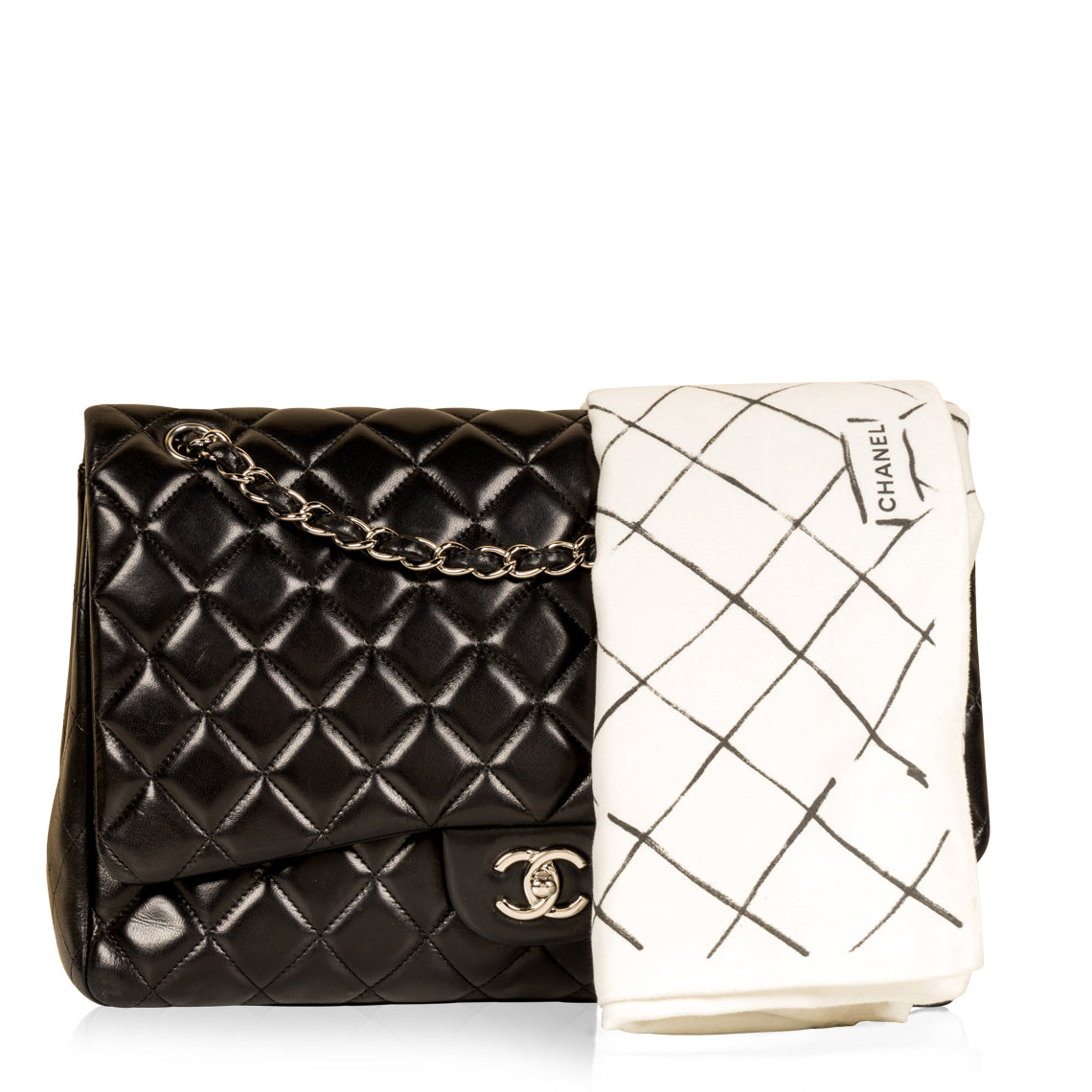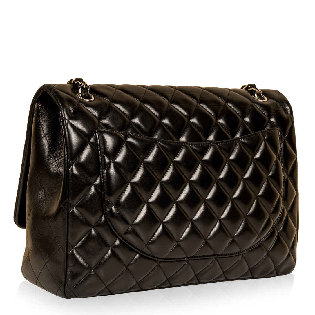 Chanel continues to present its signature line of Classic Flap bags. Under the creative direction of Karl Lagerfeld, the Classic Flap is perhaps the most acclaimed bag in all of fashion history. Timeless, elegant and sophisticated, it's no wonder the Classic Flap is, well, a classic. Featuring its infamous quilted lambskin leather and interwoven chain / leather strap, the Maxi is an absolute must-have in any luxury handbag collection. Not only is this highly coveted, this stunning black bag the perfect accessory to compliment anything in your wardrobe, but it's also an investment piece that will never lose its value. Embodying elegance and traditional femininity to a T, a Chanel bag is a purchase you won't ever regret.