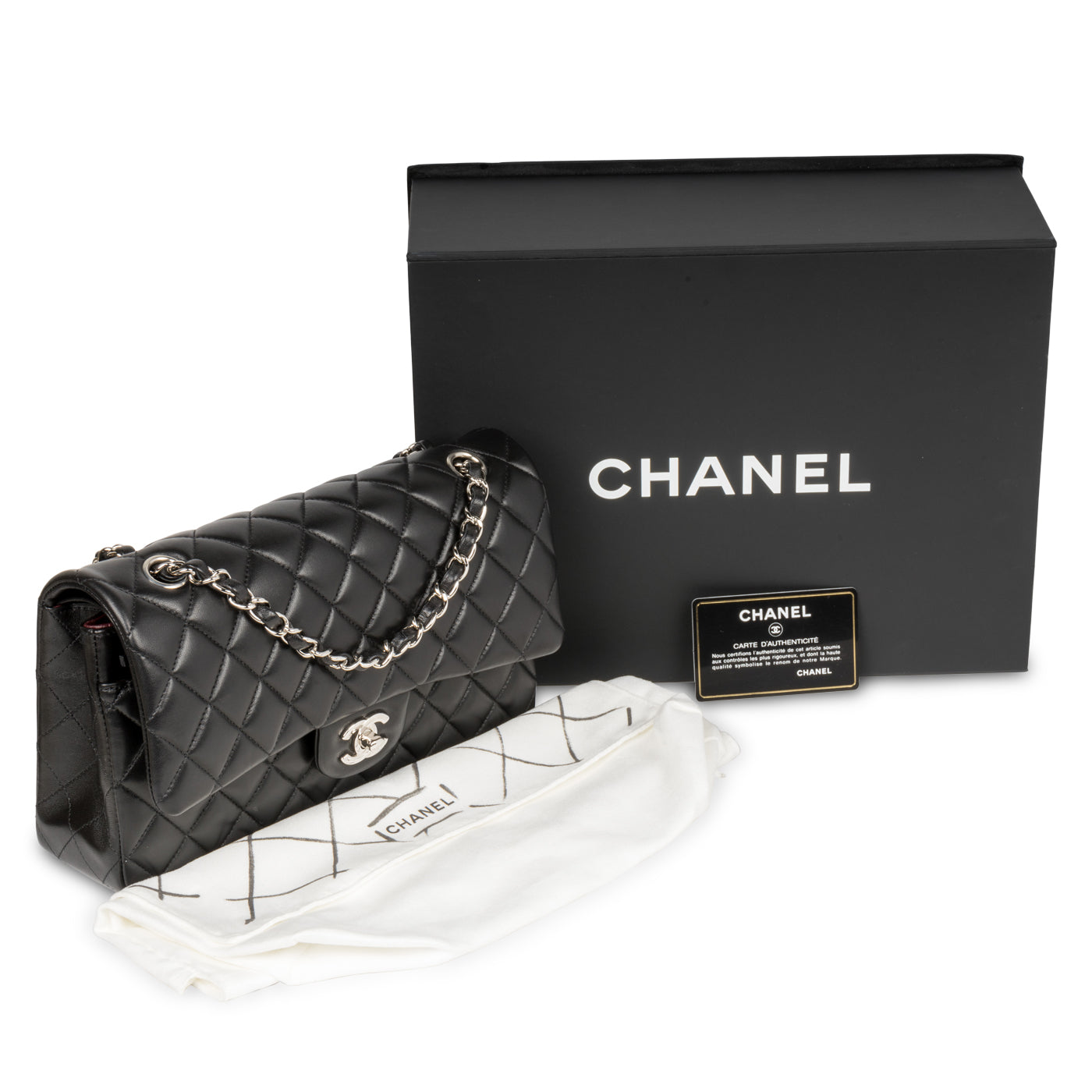 Chanel continues to present its signature line of Classic Flap bags. Under the creative direction of Karl Lagerfeld, the Classic Flap is perhaps the most acclaimed bag in all of fashion history. Timeless, elegant and sophisticated, it's no wonder the Classic Flap is, well, a classic. Featuring its infamous lambskin leather and interwoven chain / leather strap, the Classic Flap is an absolute must-have in any luxury handbag collection. Not only is this highly coveted, stunning black bag the perfect compliment to pretty much anything you have in your wardrobe, but it's also an investment piece that will never lose its value. Embodying elegance and traditional femininity to a T, a Chanel bag is a purchase you won't ever regret.