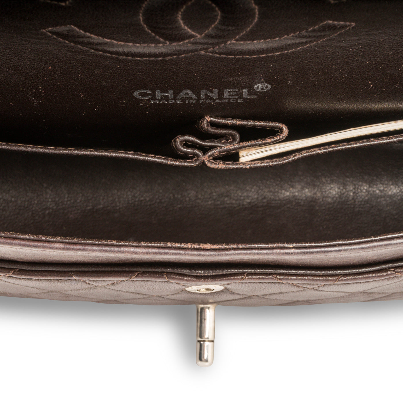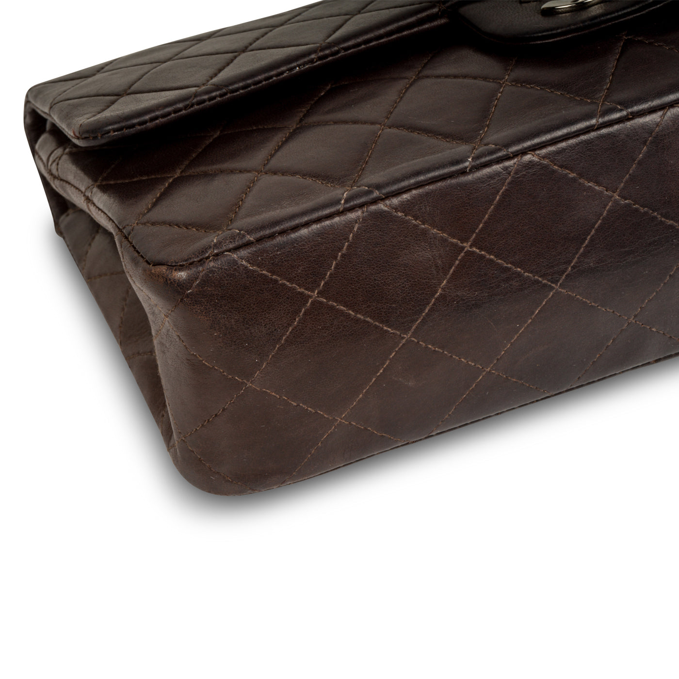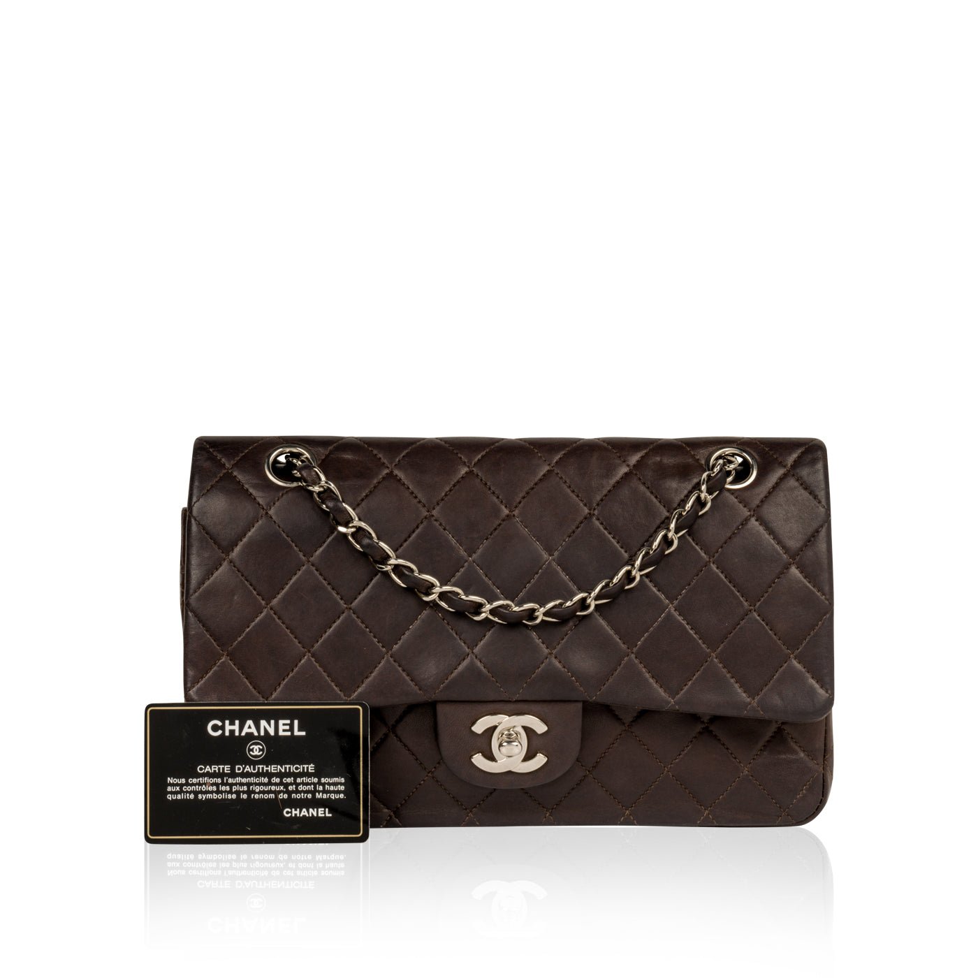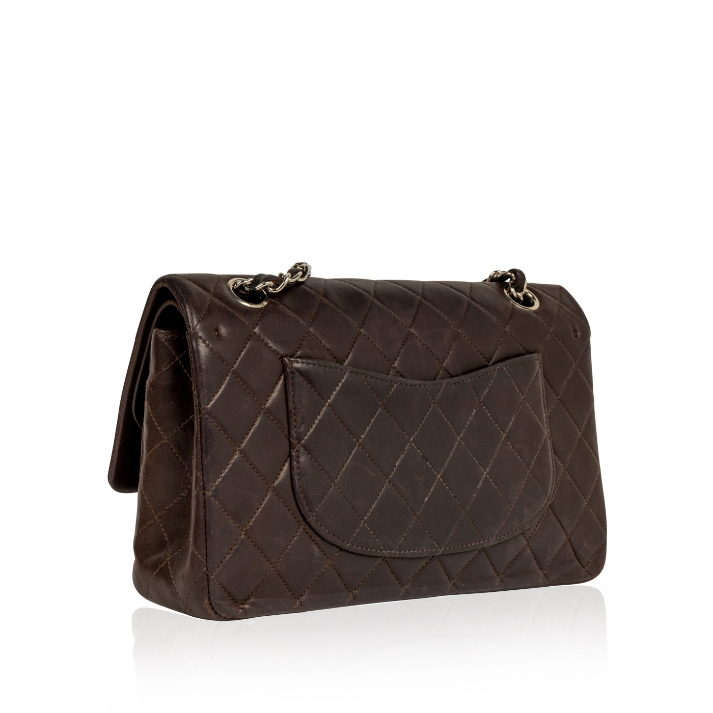 Crafted from smooth, chocolate brown lambskin leather, Chanel presents this vintage beauty - an absolute must-have for any woman with a love for luxury. Featuring the brand's infamous interwoven chain / leather shoulder strap, double flap, and silver tone hardware, this classic bag is the perfect balance between fashion and function. Practical as well as stylish, a Chanel Classic Flap is a timeless piece that will remain in your wardrobe forever. The ideal accessory to take you from day to night, there's not much this bag won't go with. The perfect compliment to absolutely anything in your wardrobe, this Chanel vintage flap bag is one you'll never fall out of love with. A well-worthy addition to any luxury handbag collection, this gorgeous investment piece is a necessity for anyone with heart eyes for Chanel and even bigger heart eyes for all things vintage. Sleek, stylish and sophisticated, this gem of a bag is one you need in your life.