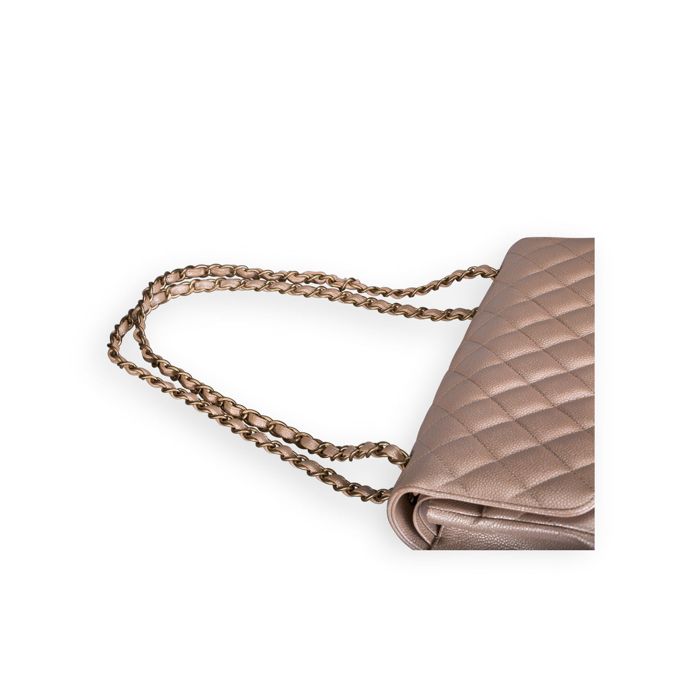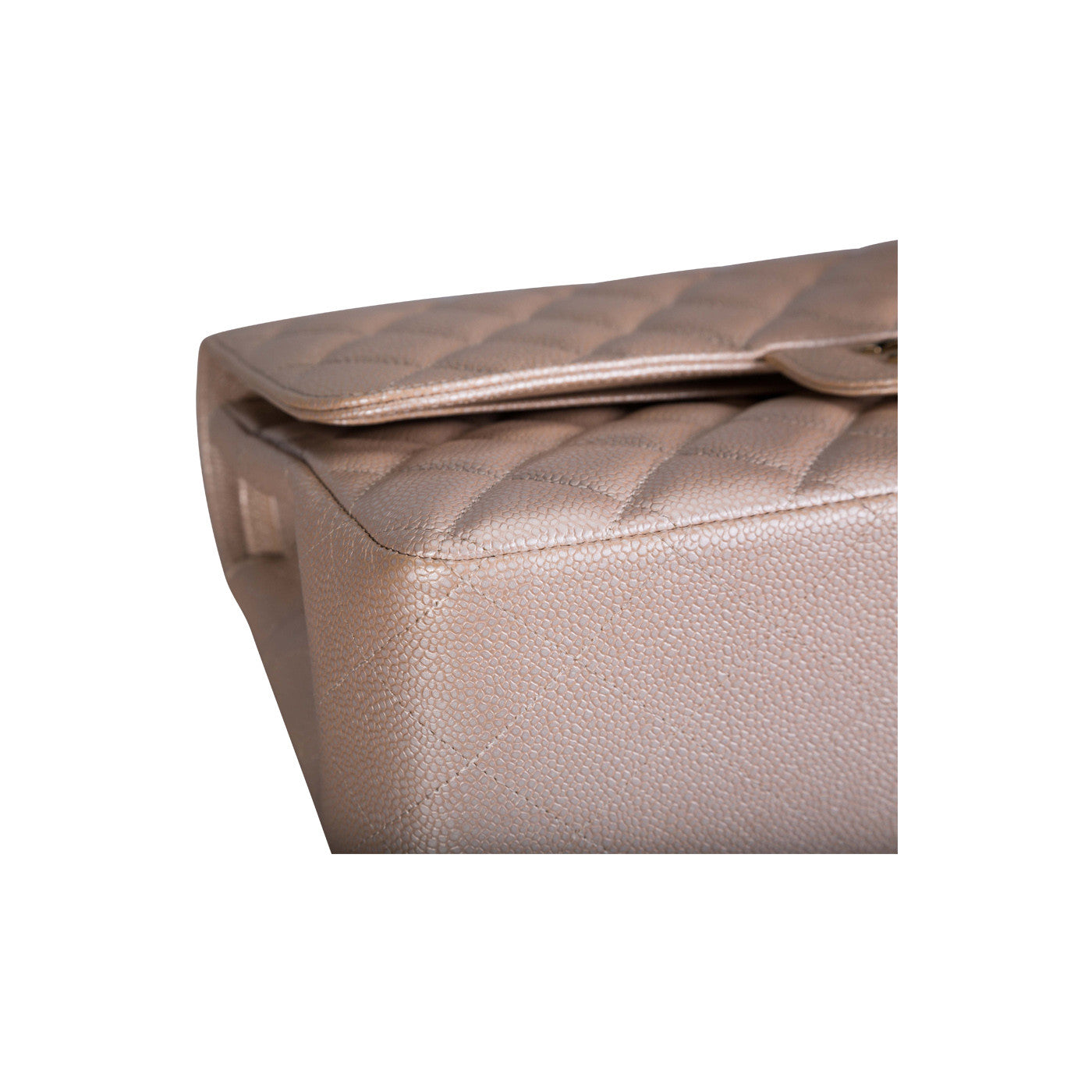 This pearlescent beige Chanel Jumbo is a rare find, and it is perfectly paired with matte gold hardware. This enviable Double Flap bag is crafted in caviar leather, and detailed with fine stitching and the signature CC twist lock clasp. The chain is interwoven with leather and can be worn on either a single shoulder strap or doubled up. The Jumbo is the perfect size for daytime, and is a true investment piece for your wardrobe.