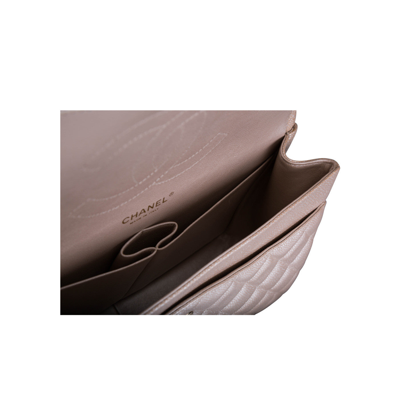 - Chanel and ‘Made in Italy’ stamps embossed in leather