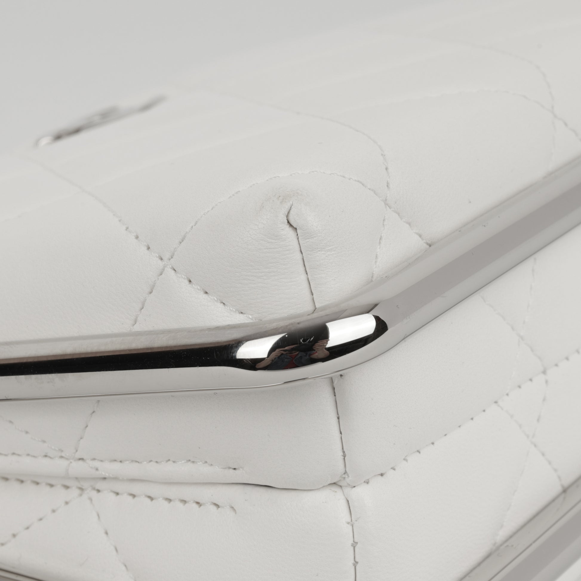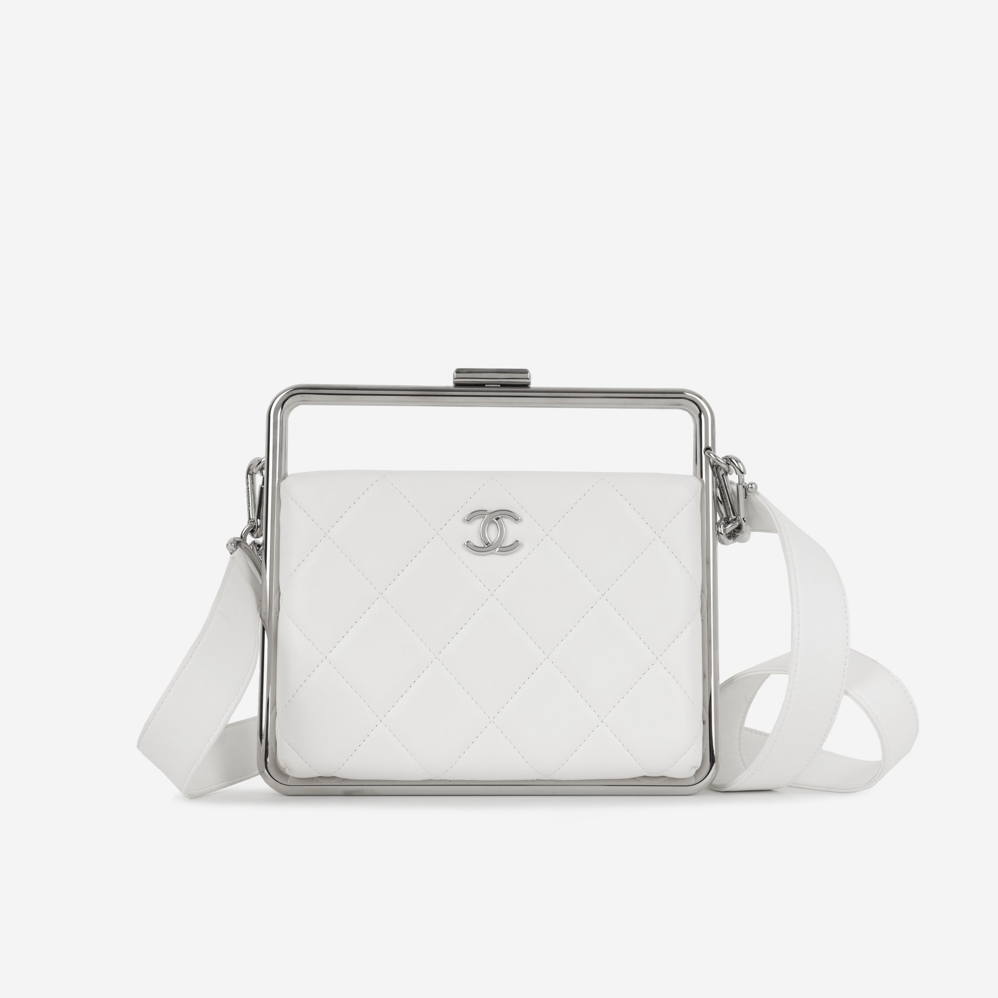 Chanel Convertible Clutch Satchel - White Lambskin | Silver Hardware