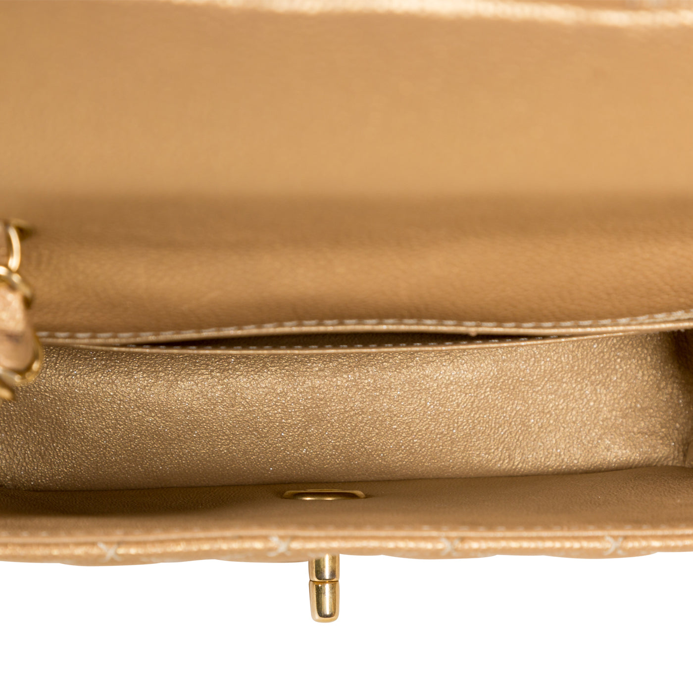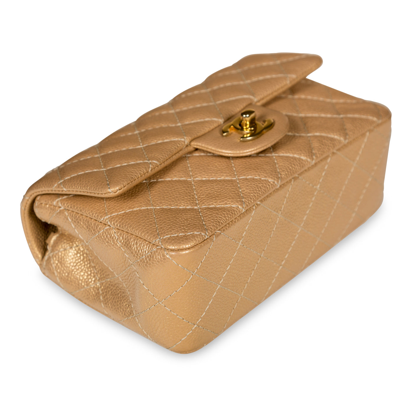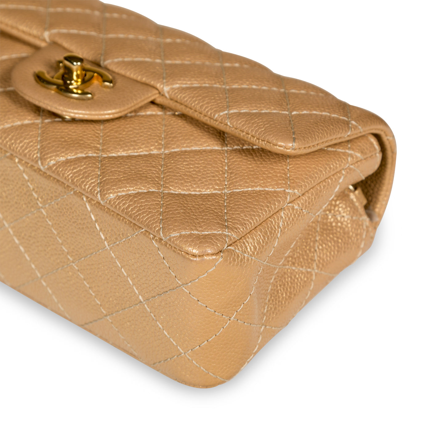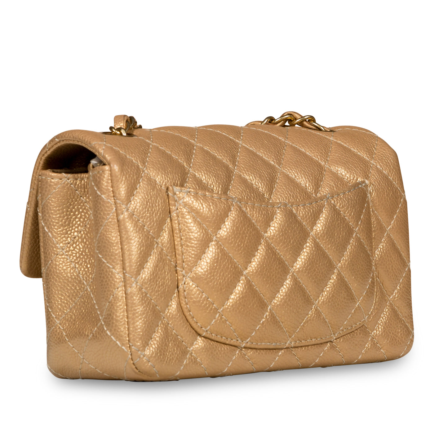Hello gorgeous...uh...we mean flawless. The mini rectangle flap bag is...an absolute vision. We love her, to say the very least. Crafted from shiny gold caviar leather with antique gold-tone hardware, this perfect little baby is definitely hard to get your hands on. The perfect accessory for basically anything, this mini Chanel is the ideal compliment to any outfit for any occasion. Wear her with a cocktail dress and a pair of heels, or with black trousers with a silk blouse, or even with a pair of jeans and a basic tee - no matter what, this gorgeous bag is a suitable compliment. I mean, you can basically wear a plastic bag and you'll still look bomb with the mini rectangle by your side. A bag you'll wear and love forever, investing in a Classic Flap is always a good idea given that they rarely cease to lose their value.