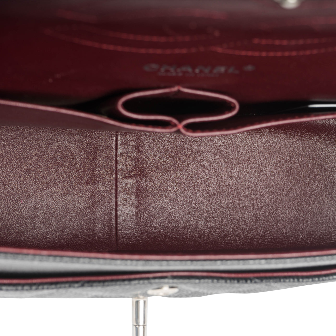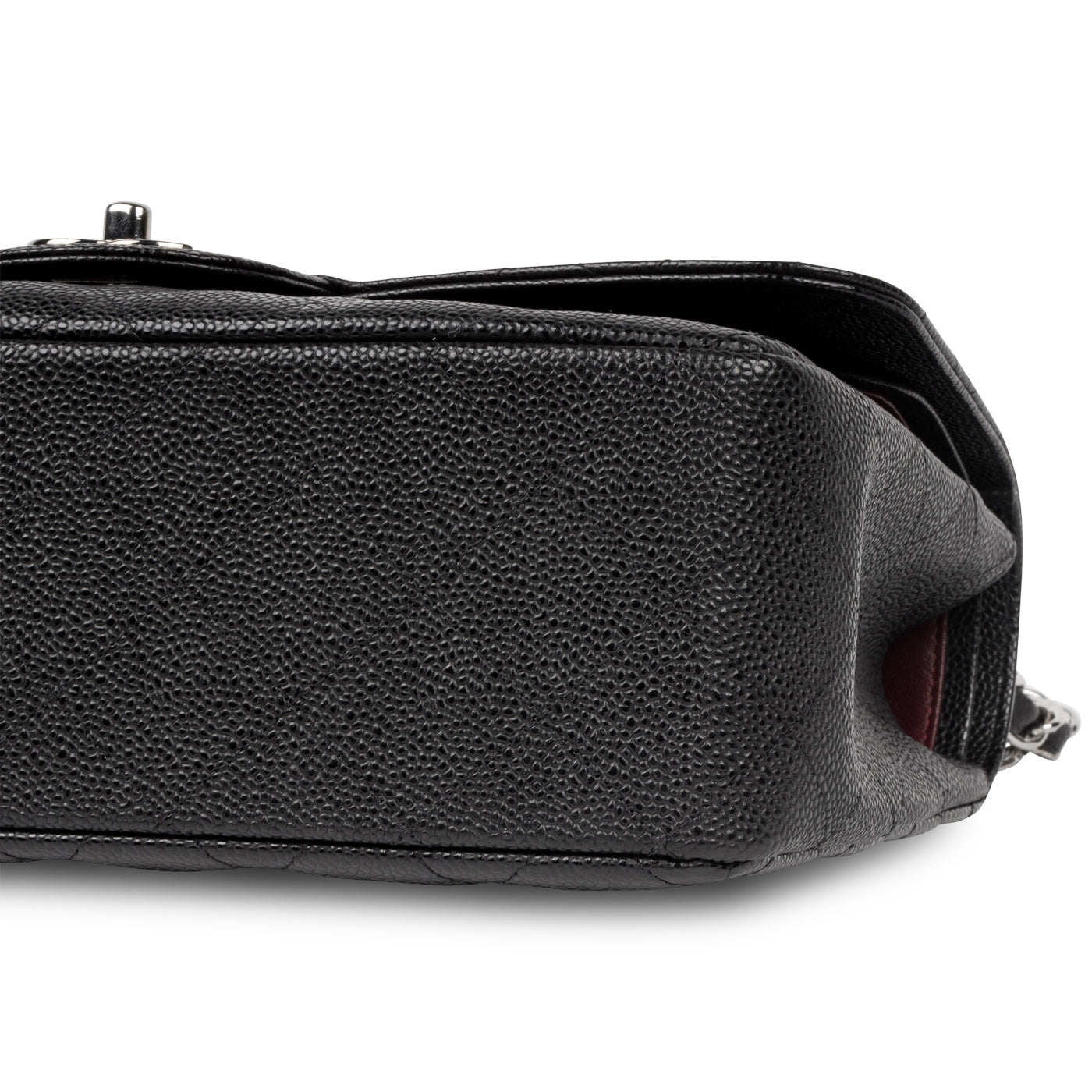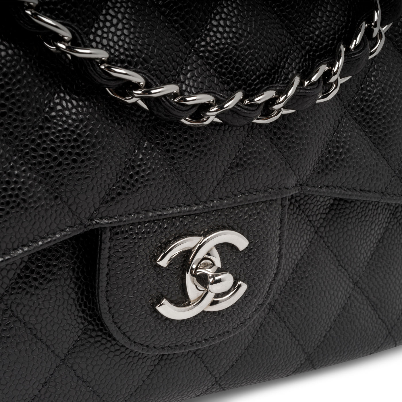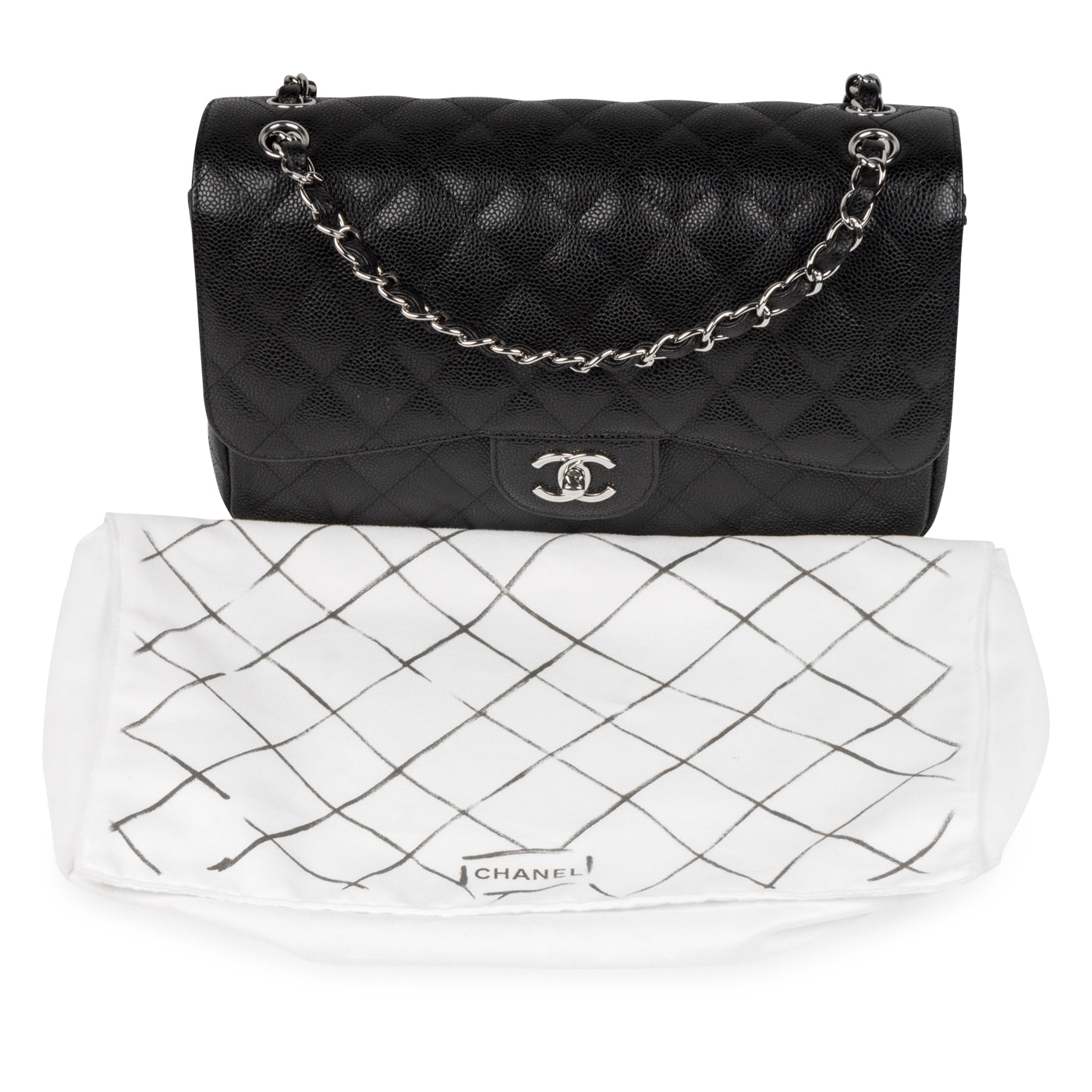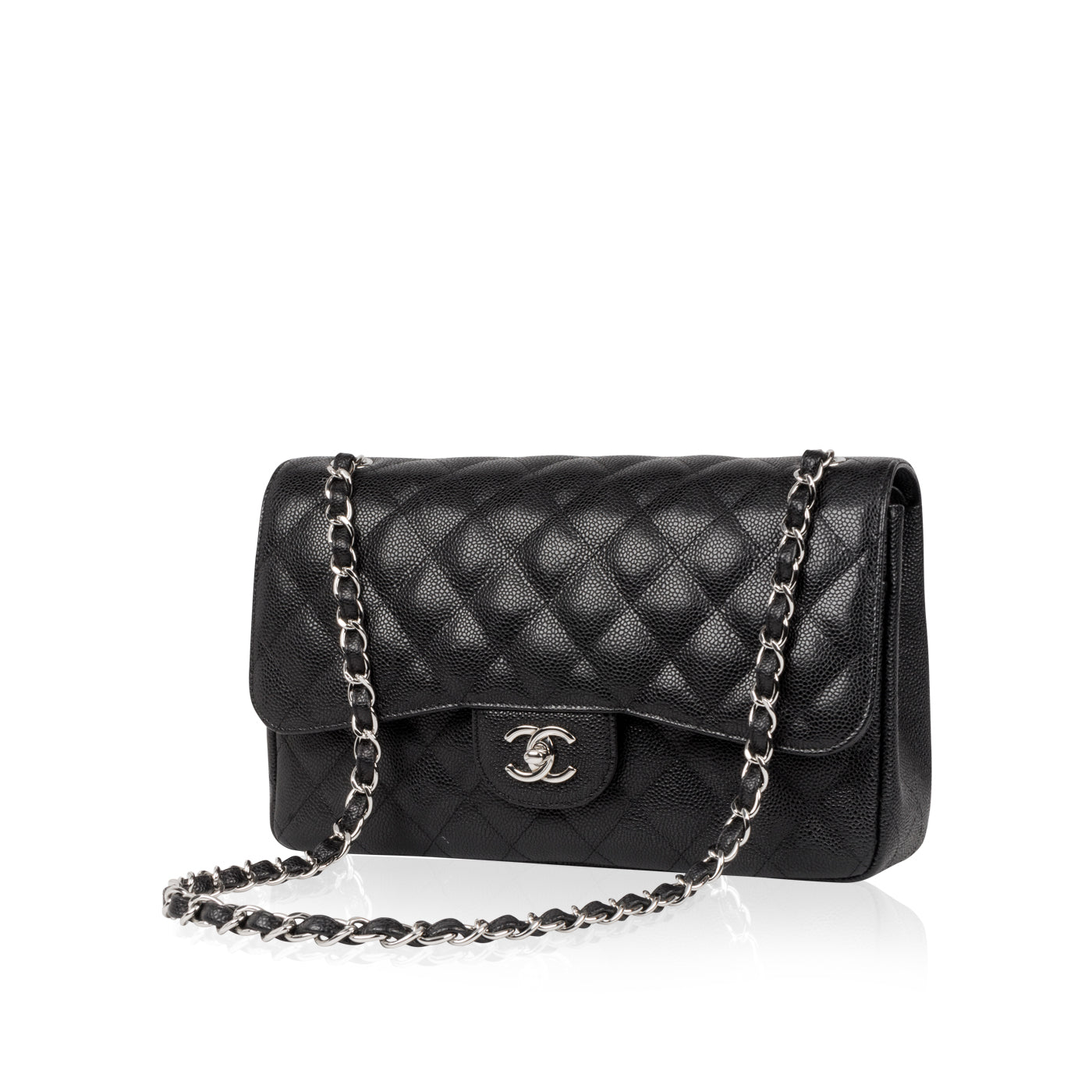 Chanel continues to present its signature line of Classic Flap bags. Under the creative direction of Karl Lagerfeld, the Classic Flap is perhaps the most acclaimed bag in all of fashion history. Timeless, elegant and sophisticated, it's no wonder the Classic Flap is, well, a classic. Featuring its infamous quilted caviar leather and interwoven chain / leather strap, the Jumbo is an absolute must-have in any luxury handbag collection. Not only is this highly coveted, stunning black bag the perfect compliment to pretty much anything you have in your wardrobe, but it's also an investment piece that will never lose its value. Embodying elegance and traditional femininity to a T, a Chanel bag is a purchase you won't ever regret.