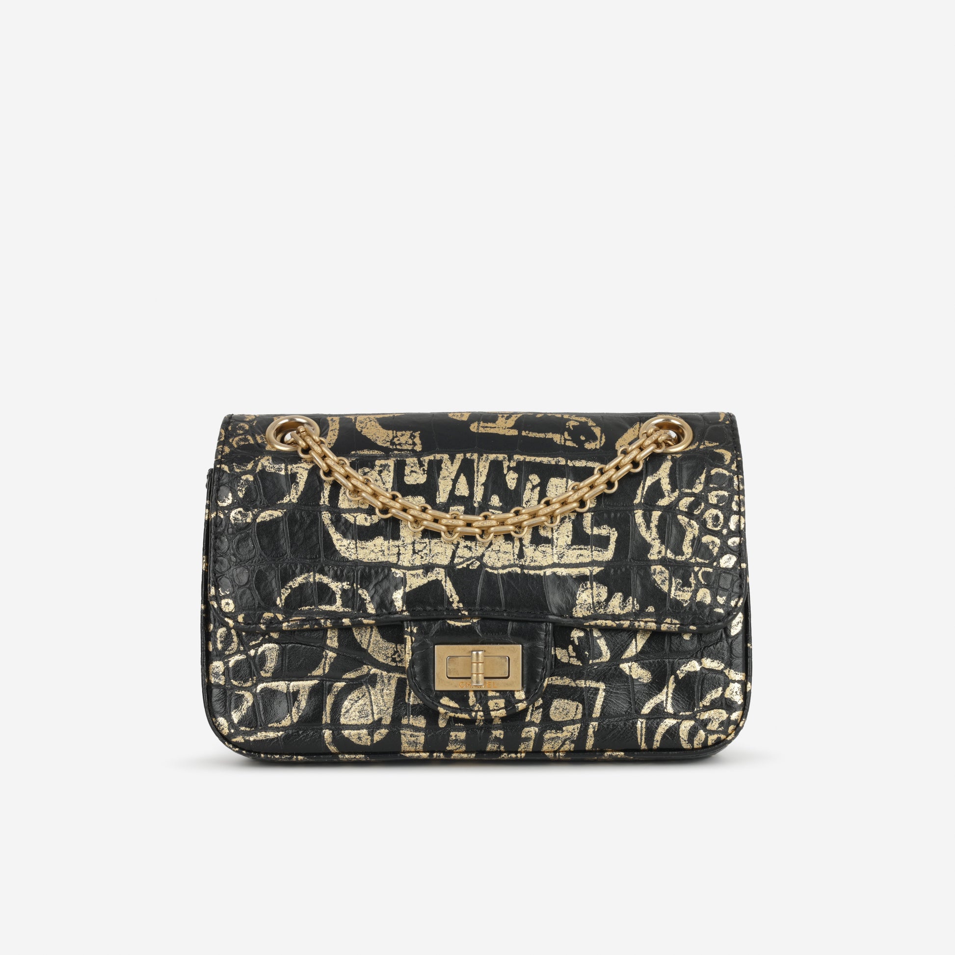 Chanel Mini 2.55 Reissue 224 - Graffiti Croc Embossed | Gold Hardware