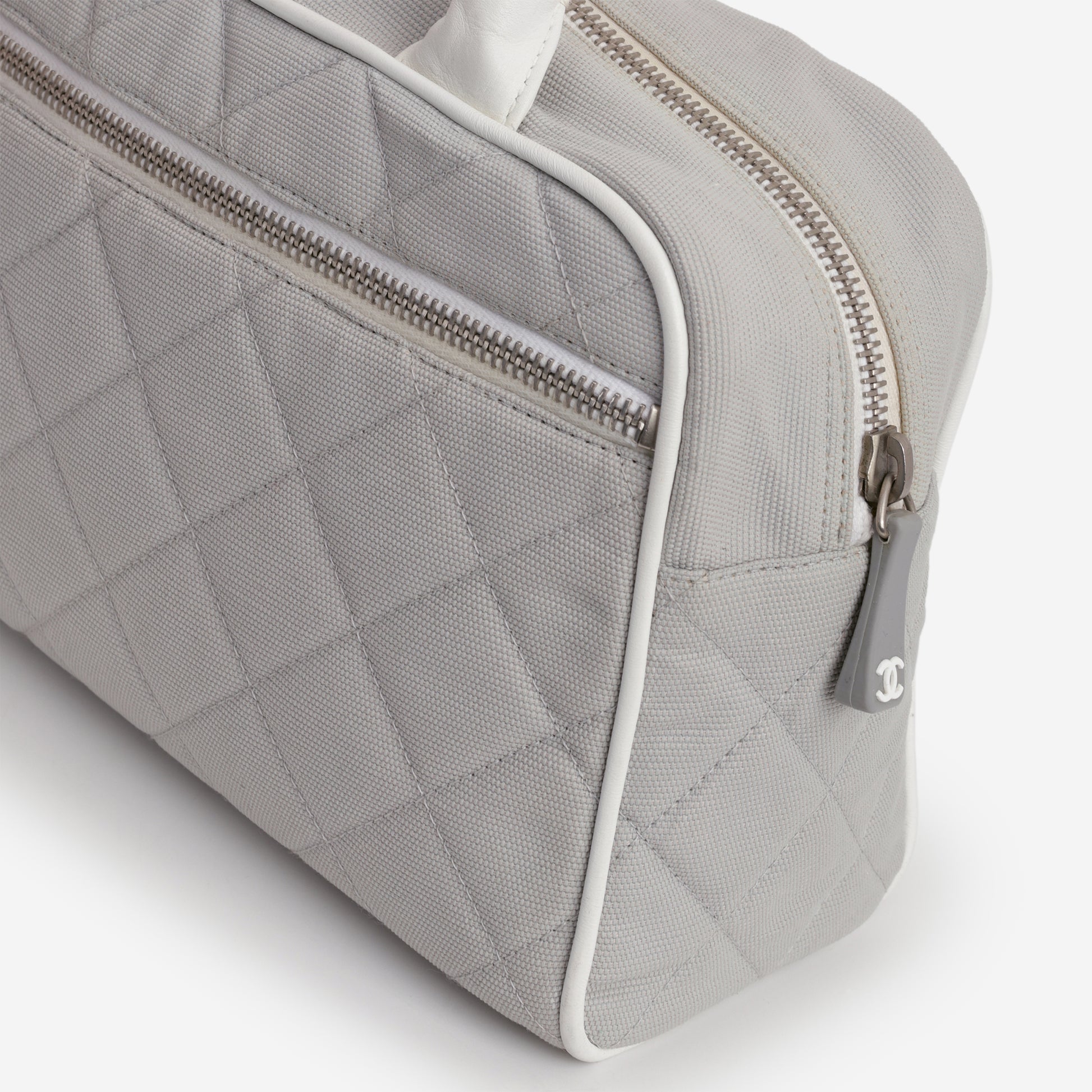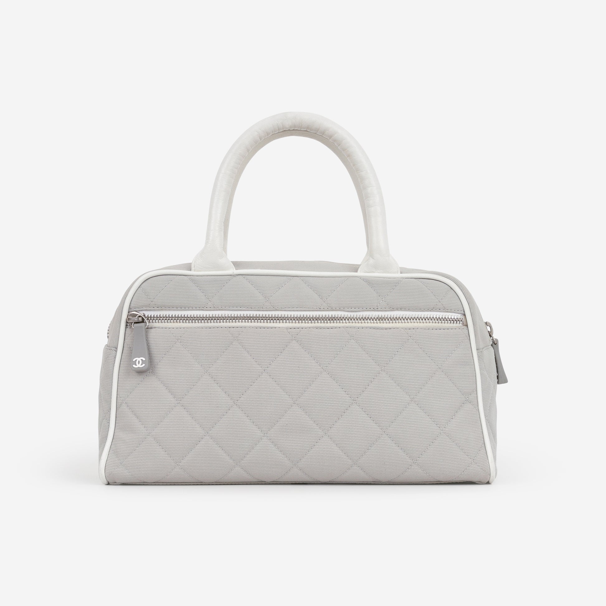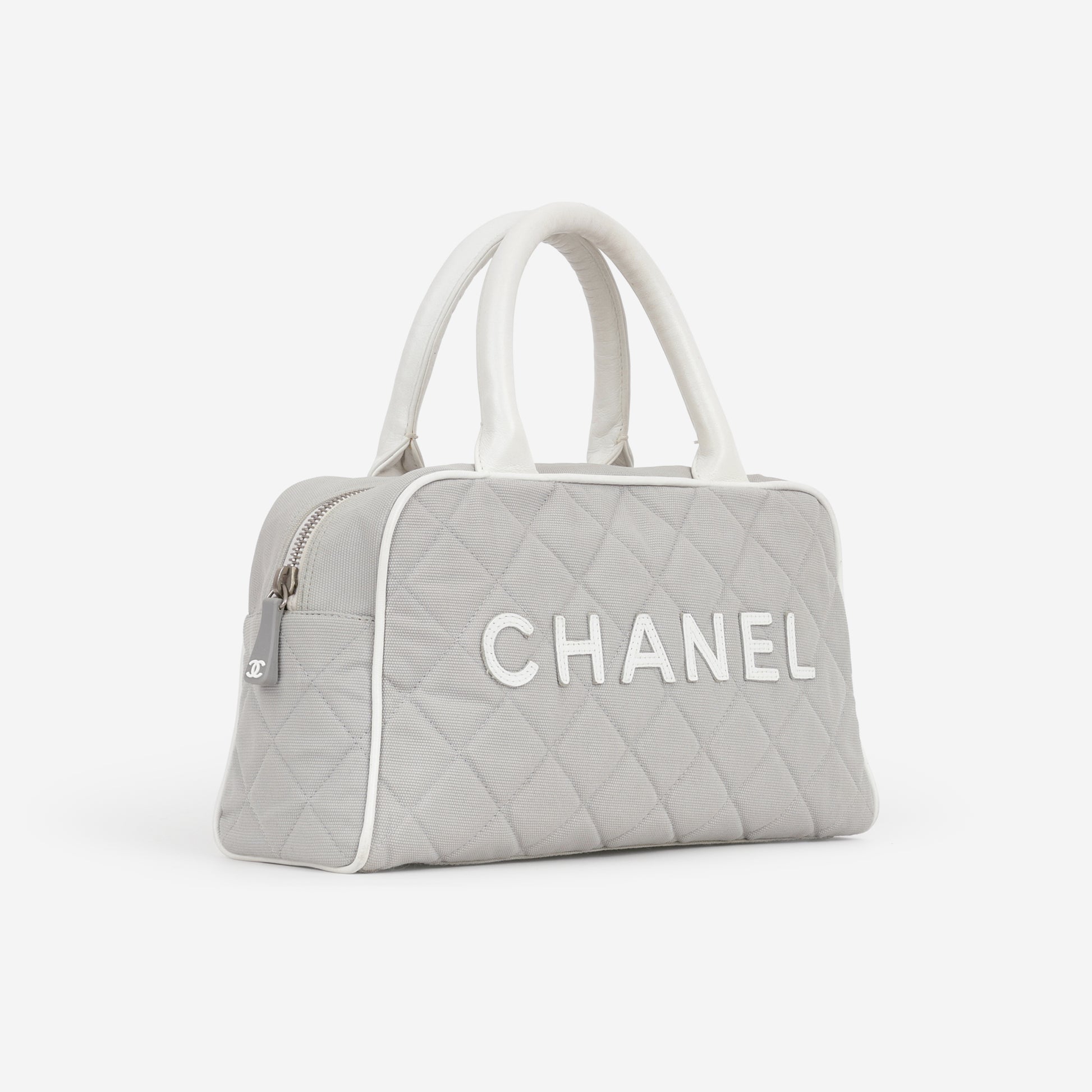 Chanel Vintage Mini Boston Bowling Bag - Grey Canvas | Silver Hardware
