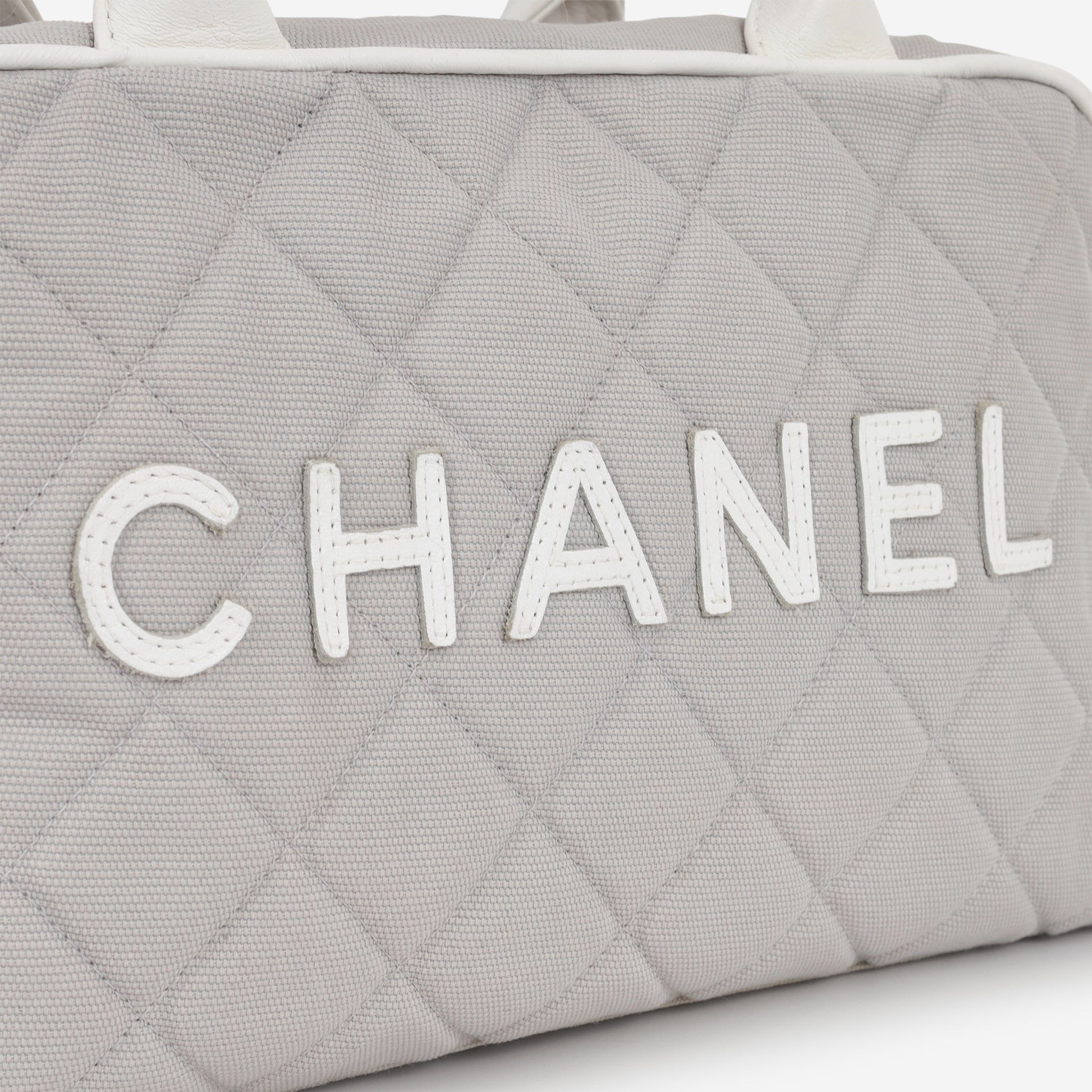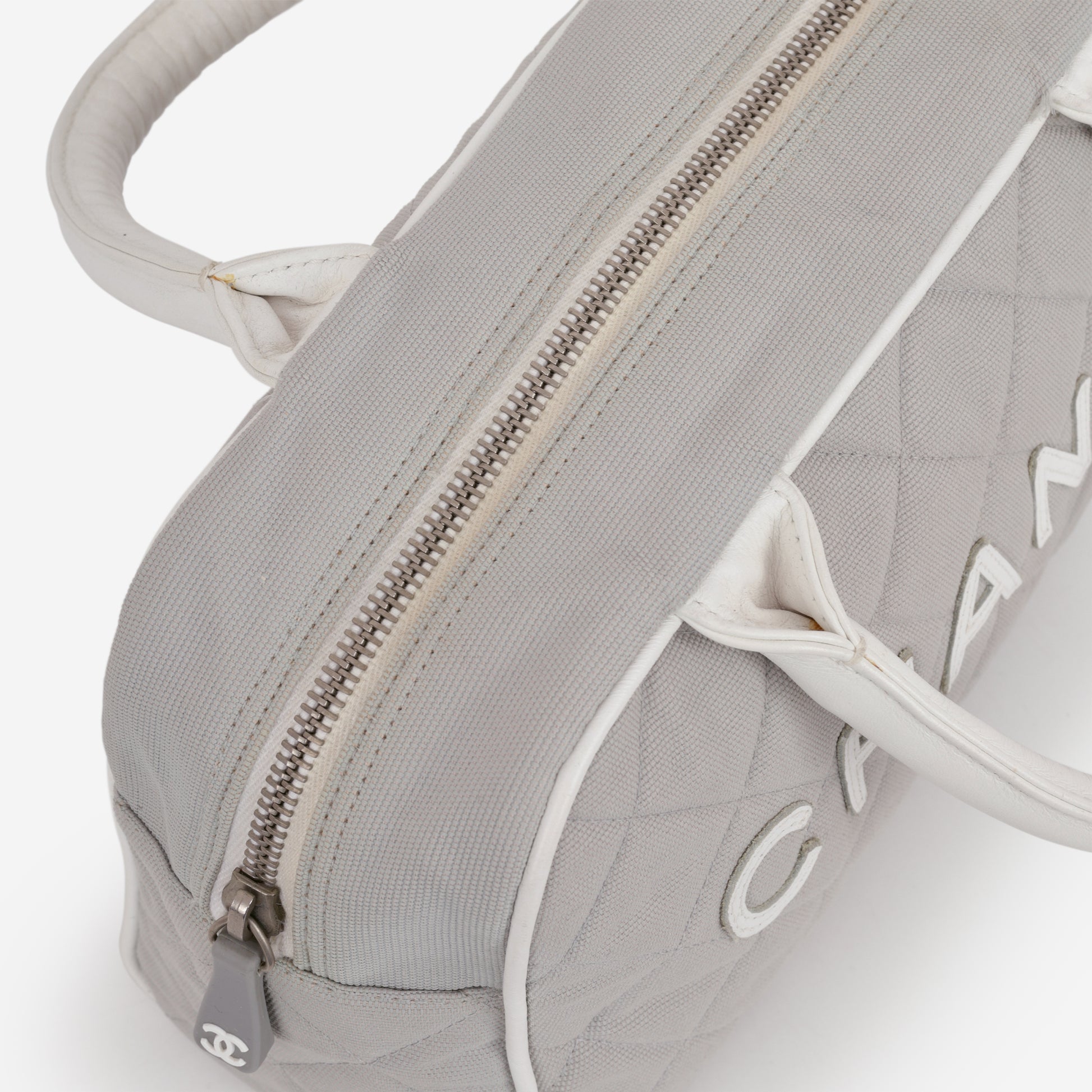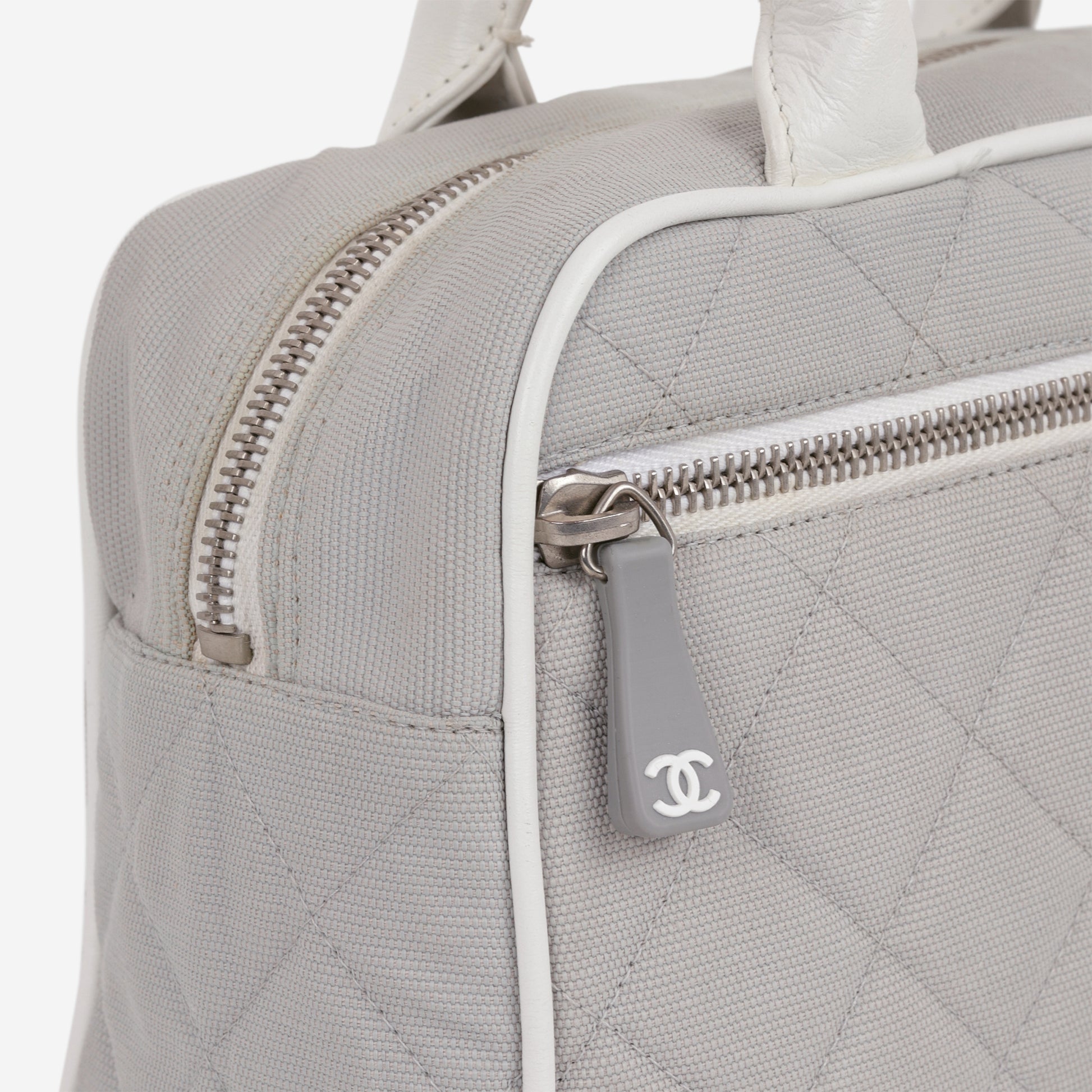 Chanel Vintage Mini Boston Bowling Bag - Grey Canvas | Silver Hardware