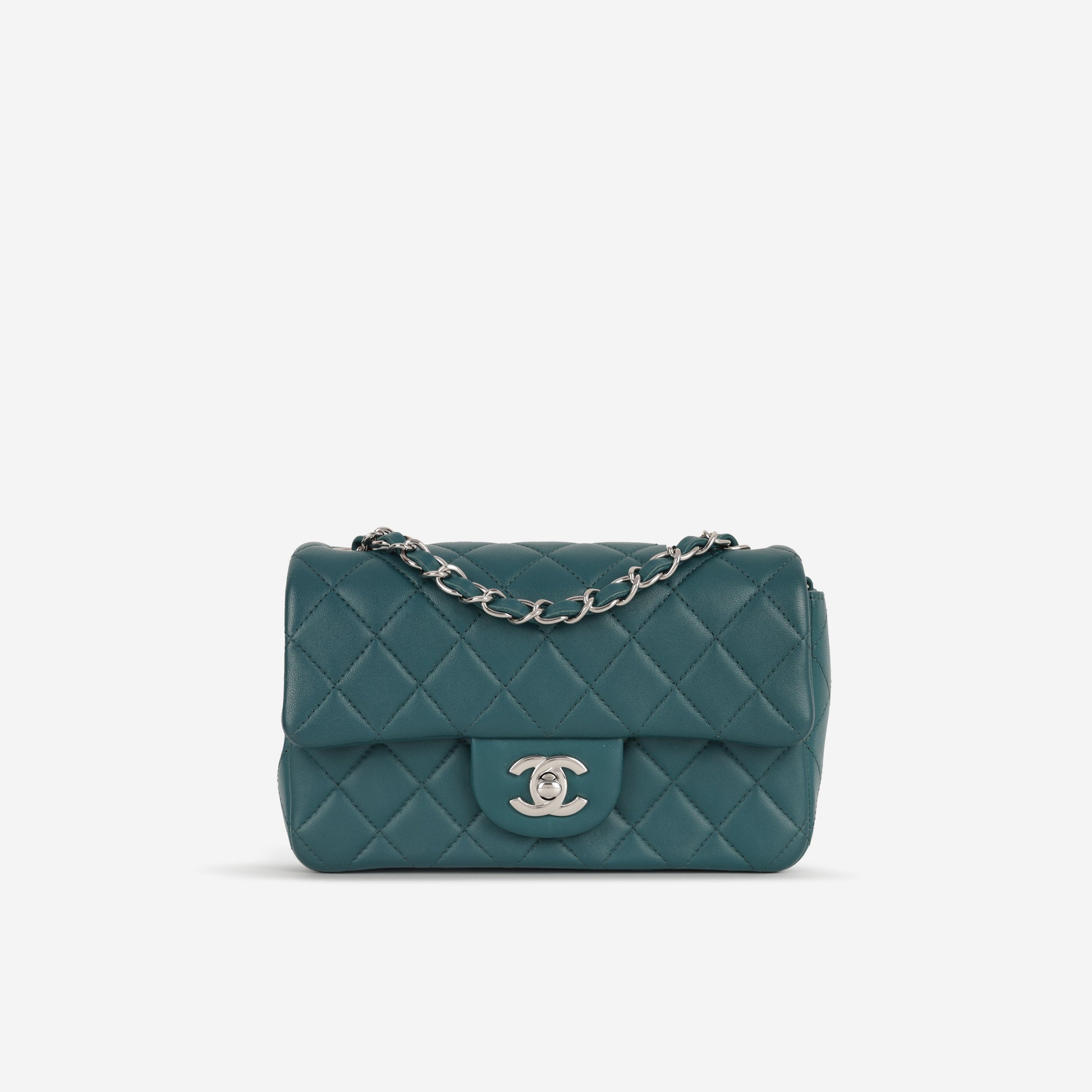 Chanel Mini Rectangular - Teal Lambskin | Silver Hardware