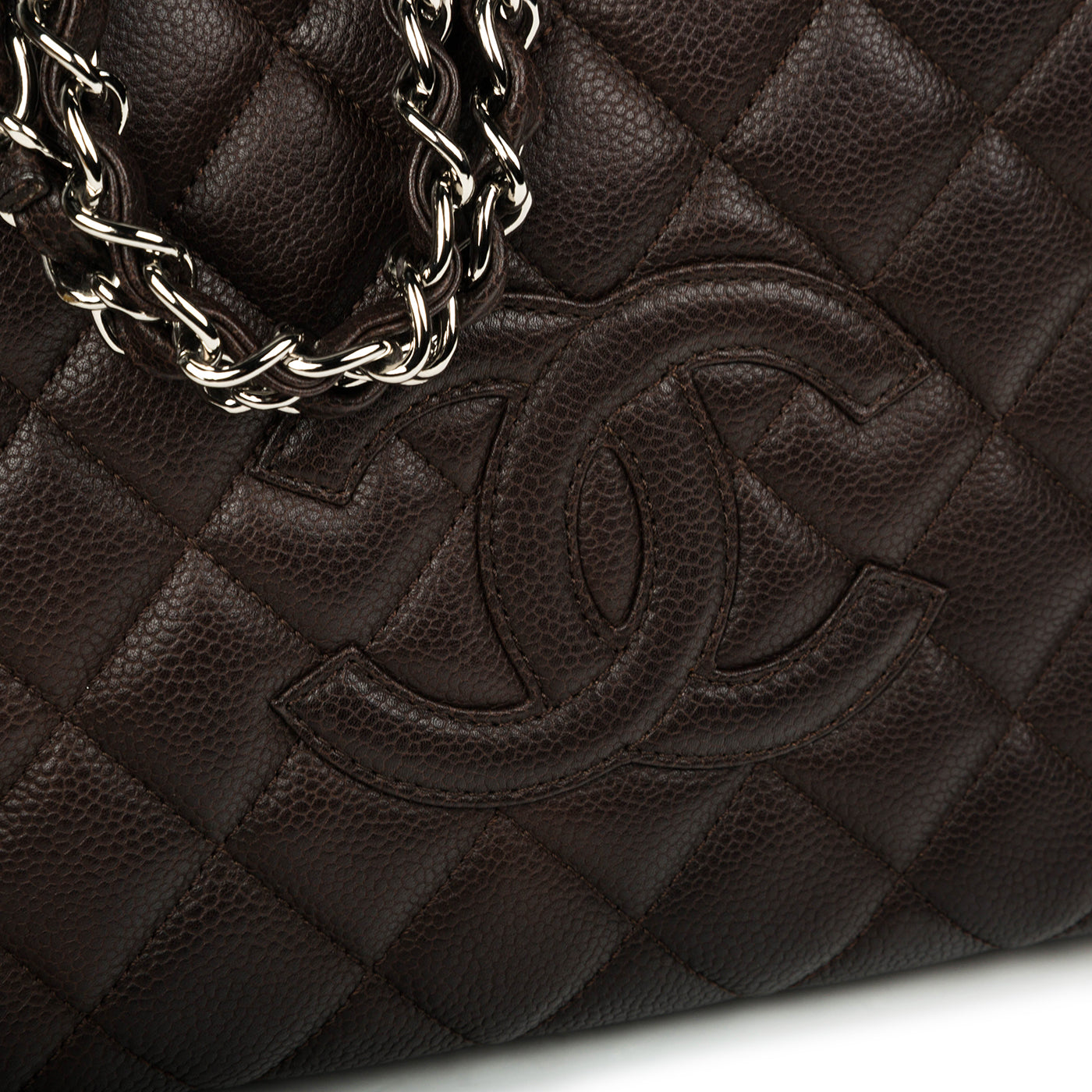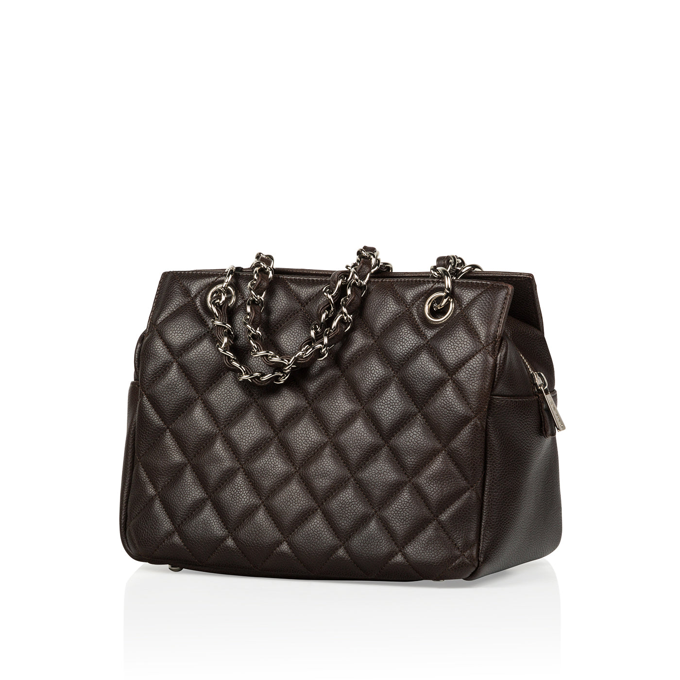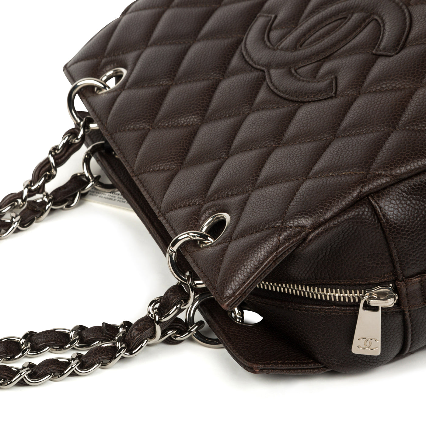 The Petite Shopping tote is an absolute Chanel classic. Carefully crafted from brown caviar leather with silver-tone hardware, this bag is deal for every day use, but also the perfect option to take you through to the evening. Carry all your essentials comfortably inside while remaining stylish and sophisticated. The PTT is elegant, timeless and chic - a true must have for any Chanel lover and a necessity in any luxury handbag collection.