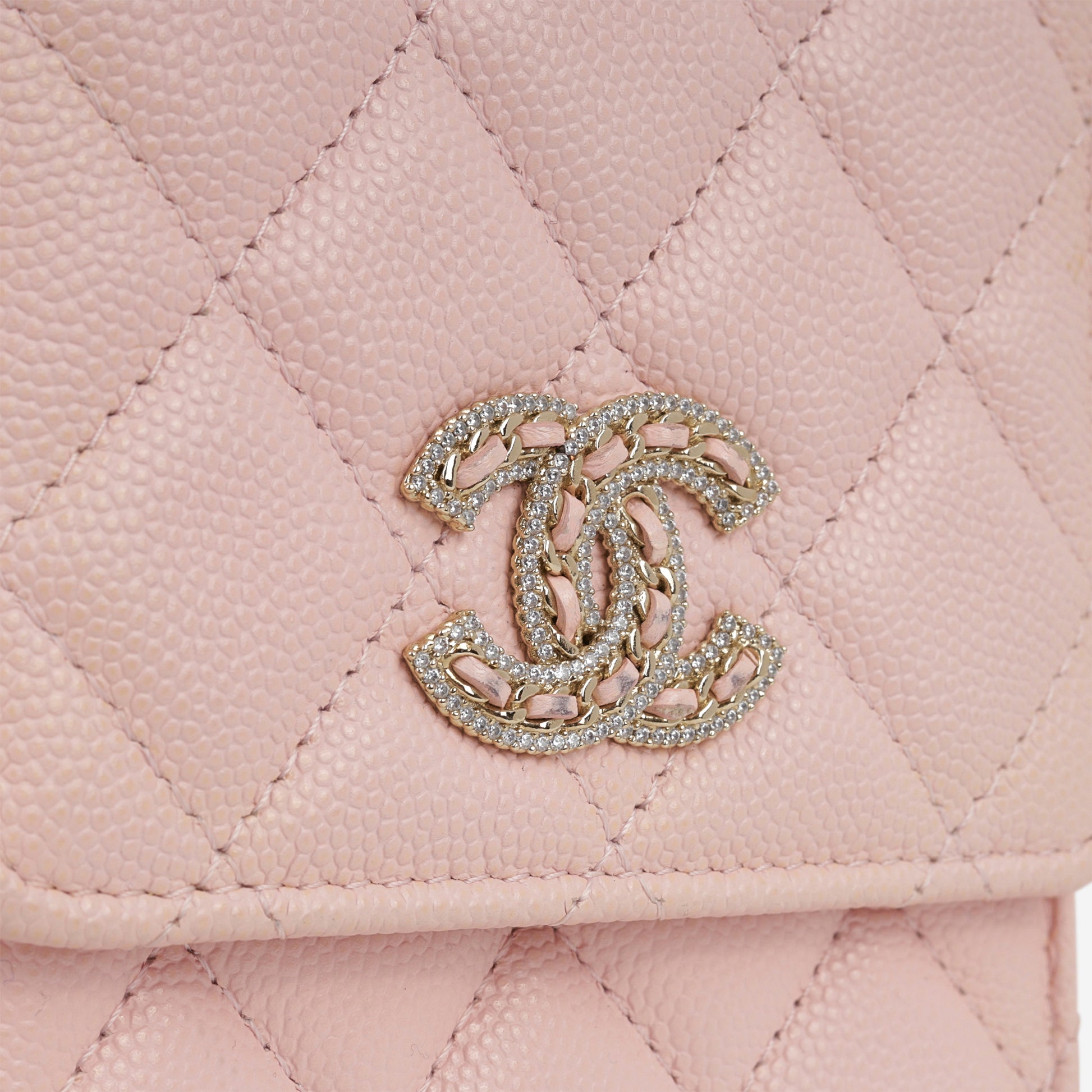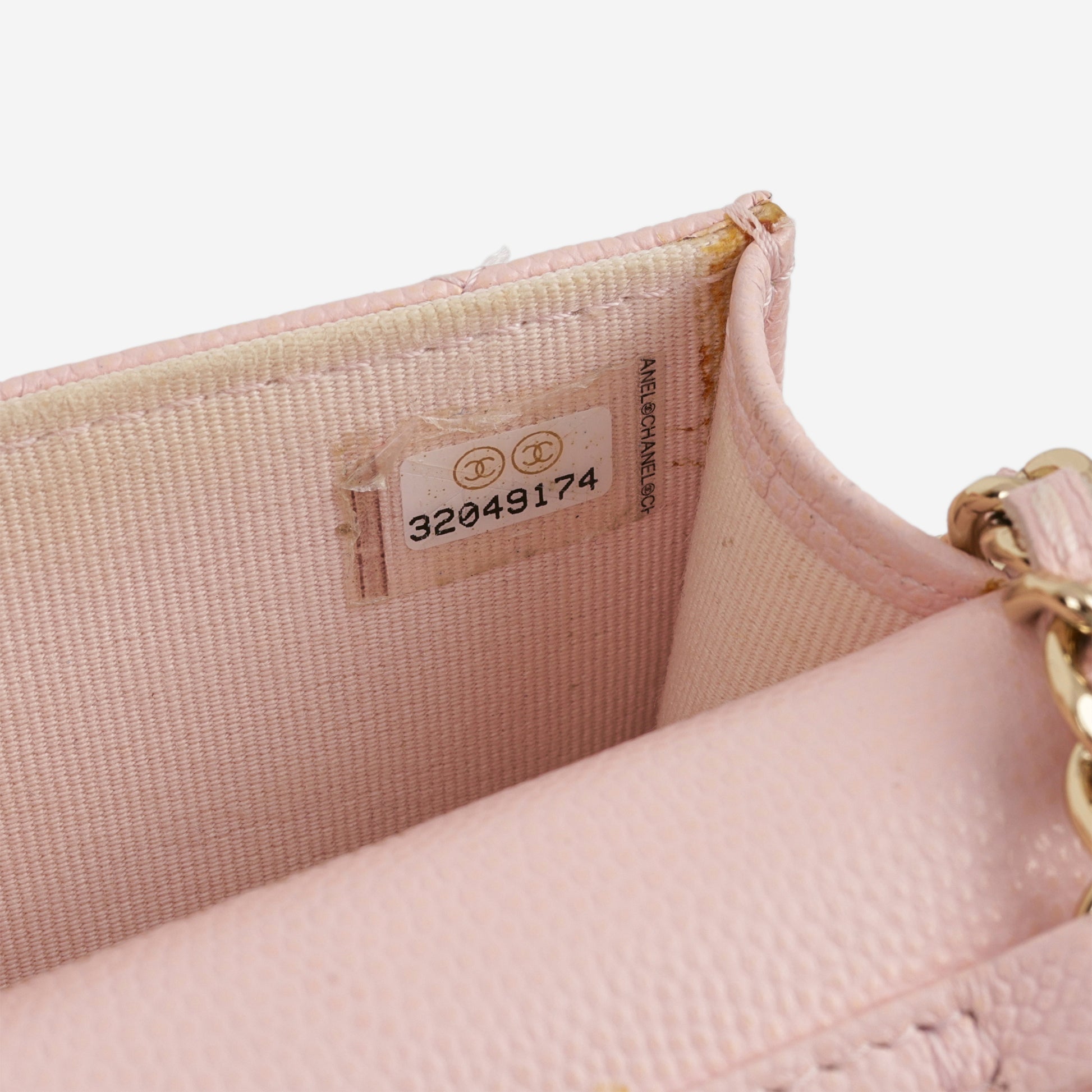 Chanel Phone Holder & Airpod Case - Pale Pink Caviar | Champagne Gold Hardware