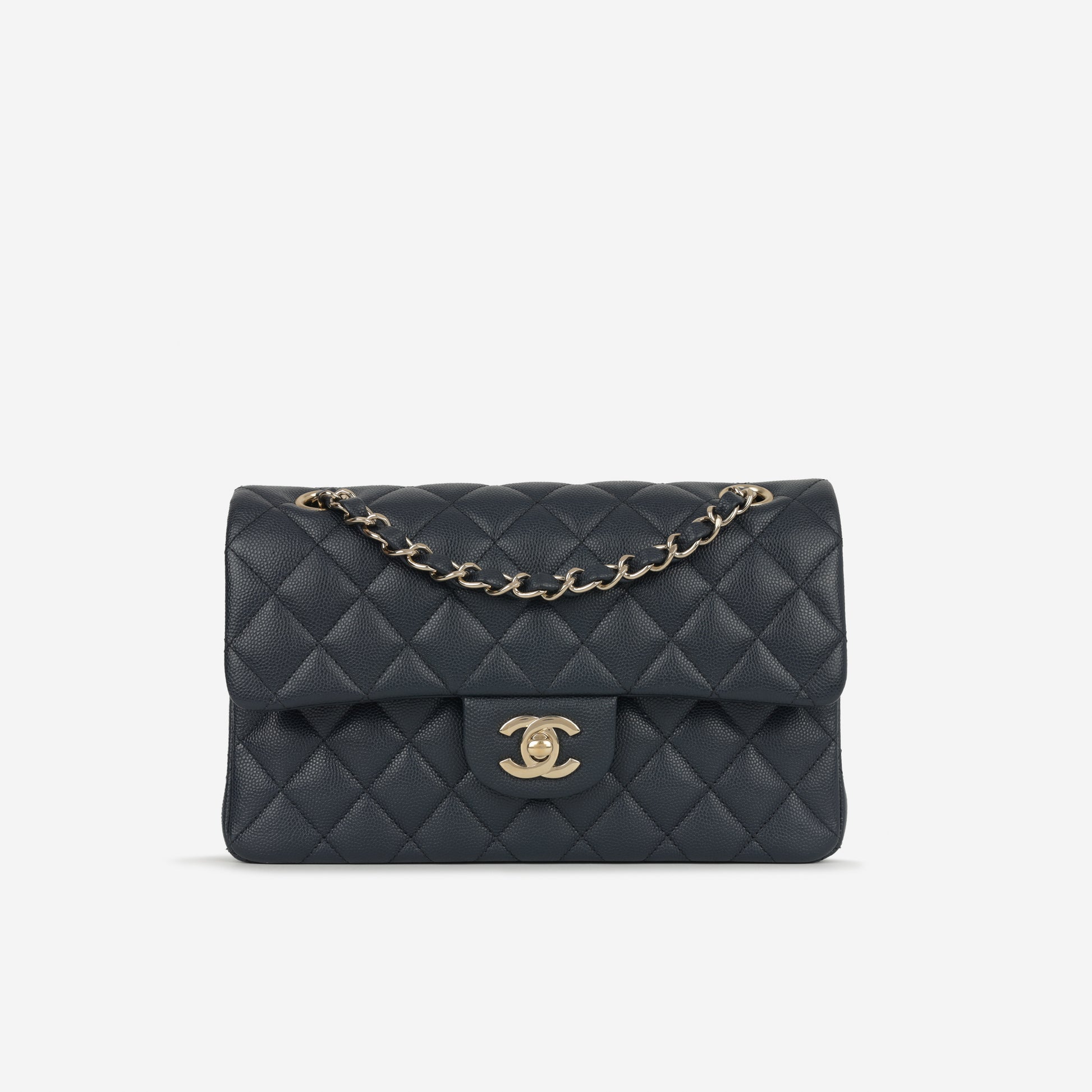 Chanel Small Classic Flap - Midnight Blue Caviar | Champagne Gold Hardware