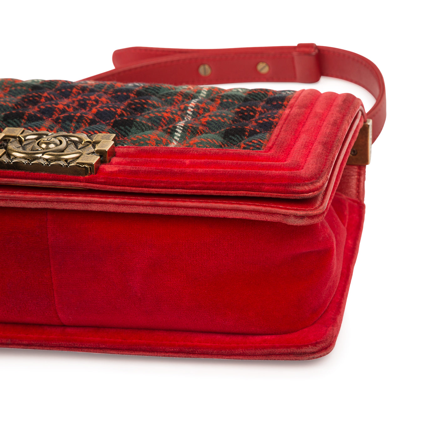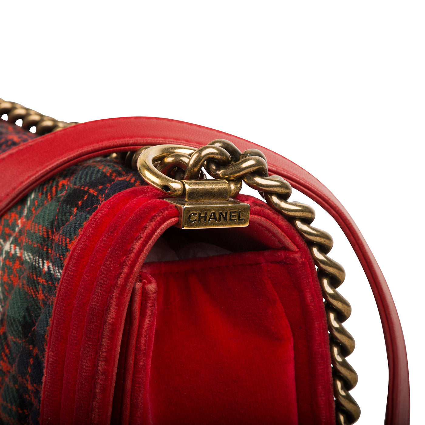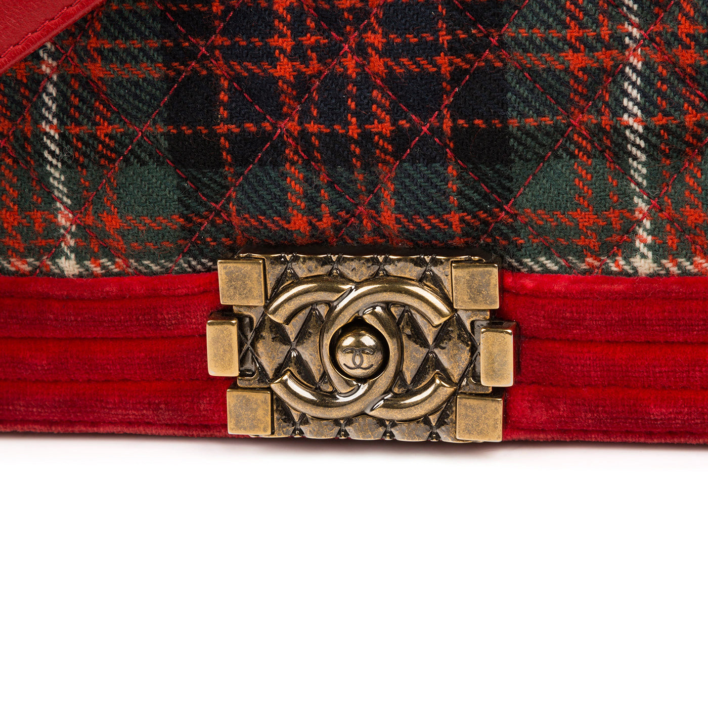 Karl Lagerfield’s vision of the renowned Boy Bag takes a beautiful turn with the Chanel Paris-Edinburgh Tartan Boy Bag. Crafted from magnificent velvet and quilted plaid tweed, the handbag is nothing short of ravishing. With its tartan pattern and antique gold hardware, the Chanel Tartan Boy Bag oozes decadence and astonishing charm. Its flap opens up to the Boy Bag’s characteristic compact interior paired with a slip pocket. Perfect for both the day and night, this Boy Bag is worn best when paired with elegant attire such as long-flowing dresses and trousers.